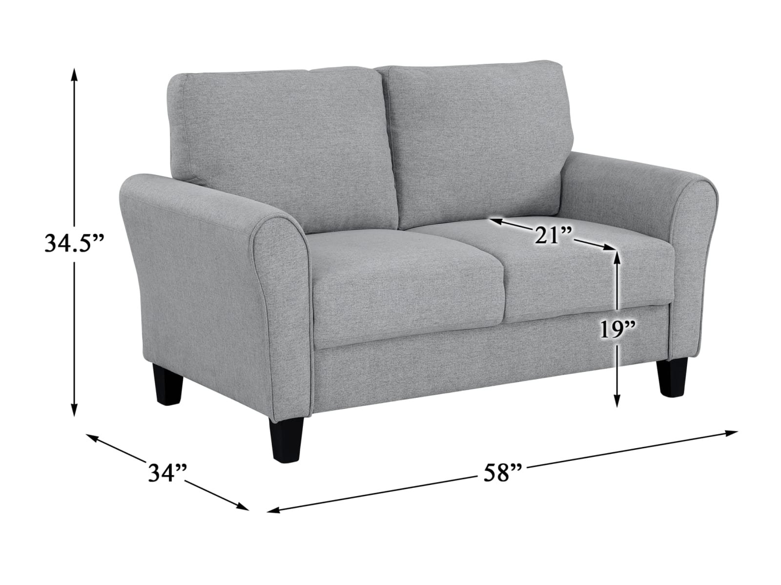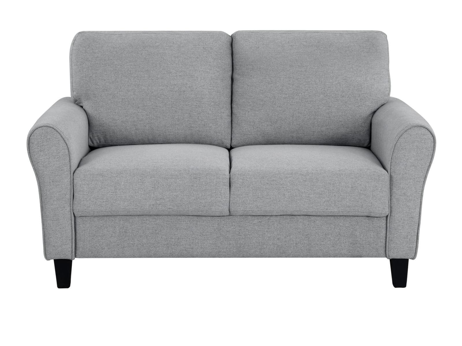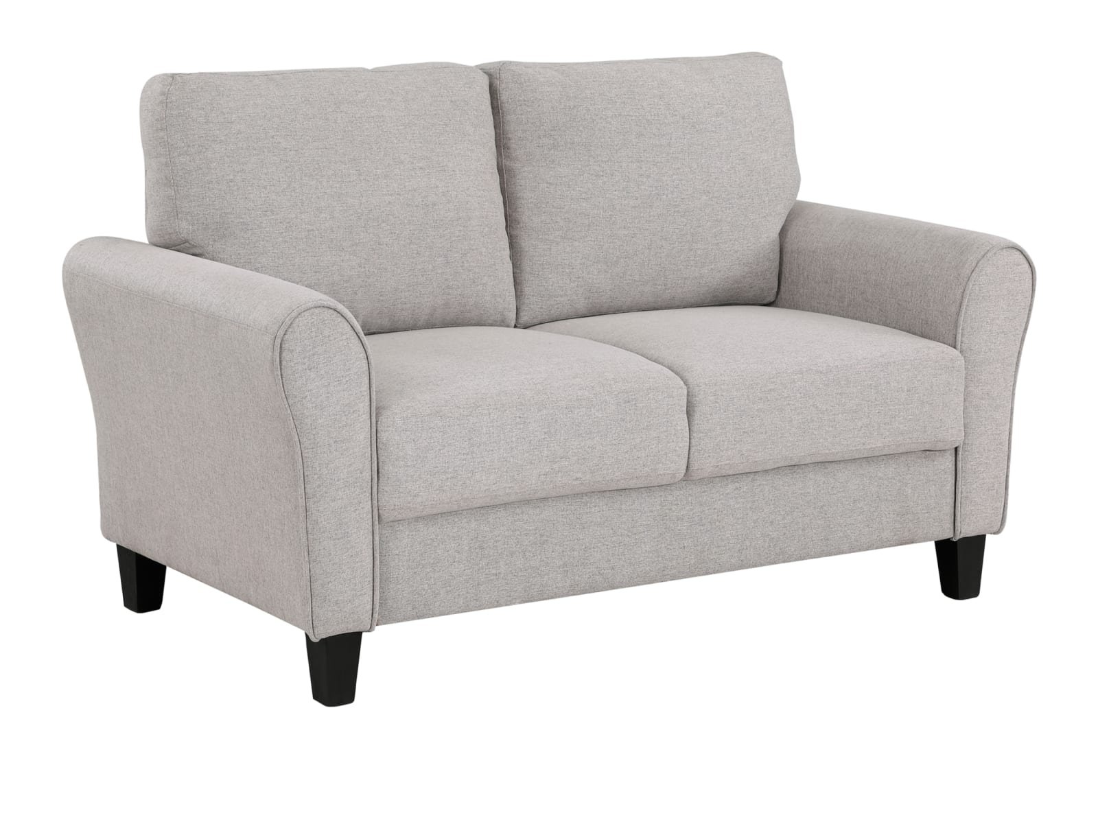 Its style crossing over many categories, from transitional to modern, farmhouse to traditional, the classic profile of the Malcolm Collection presents a versatile seating option for your home. Welt trim defines the front profile of the love seat’s rounded arms, their subtle flare giving way to the seating they flank. Gray or sand textured upholstery covers the collection for neutral complement to your home’s décor.