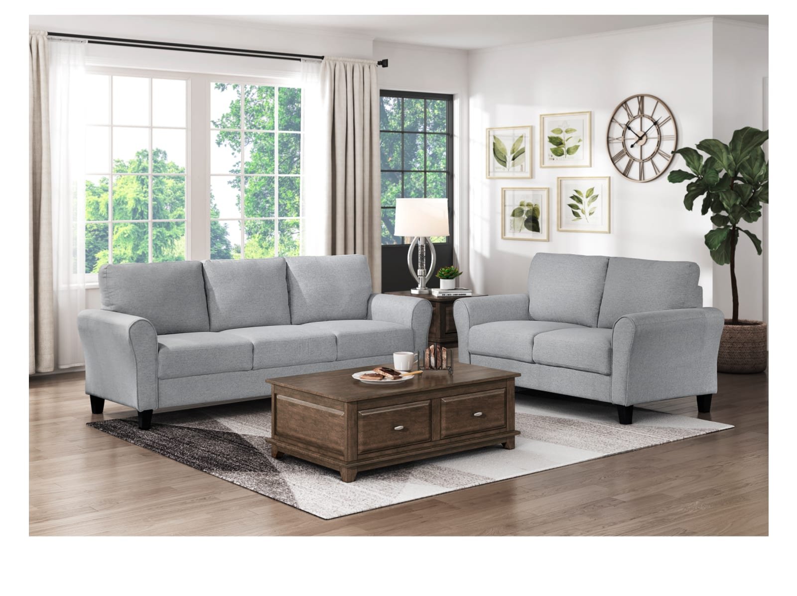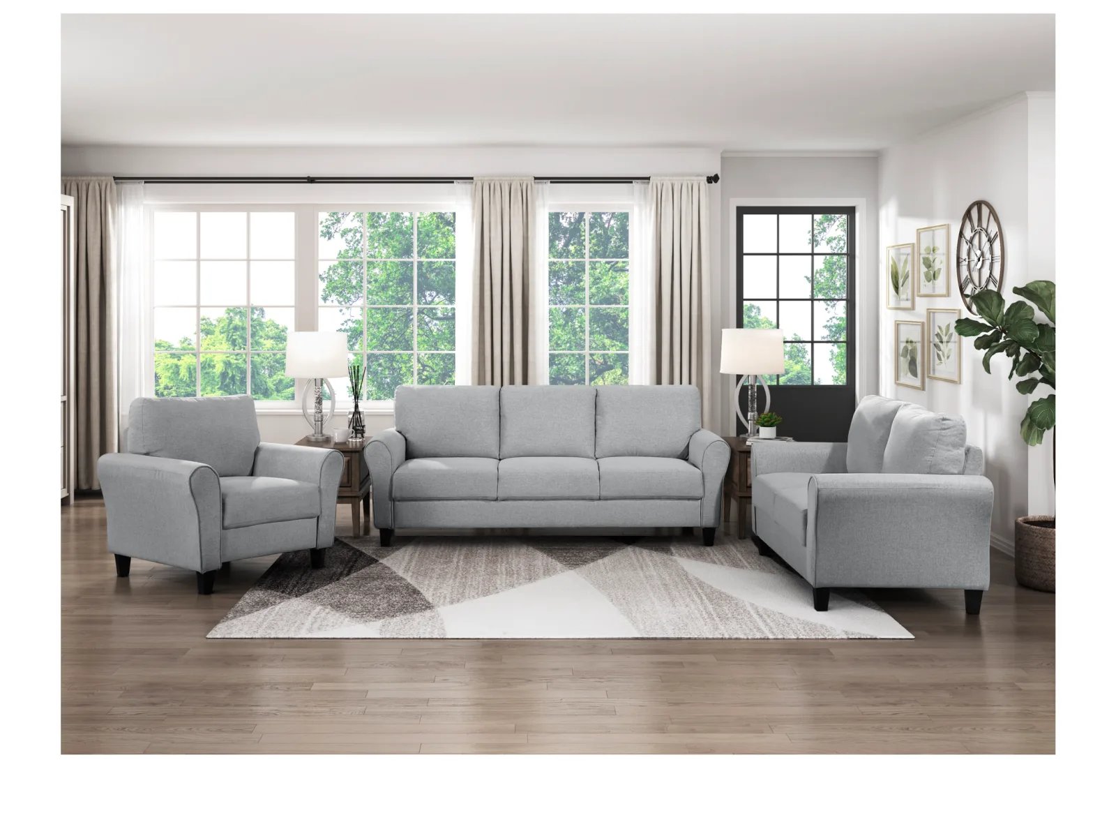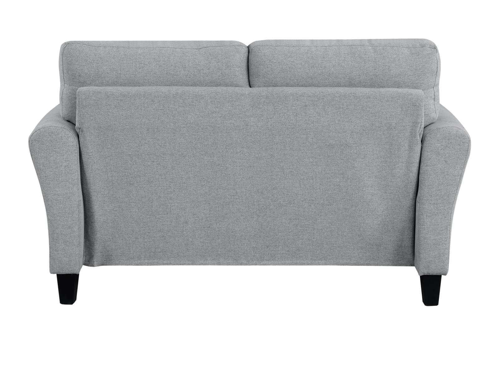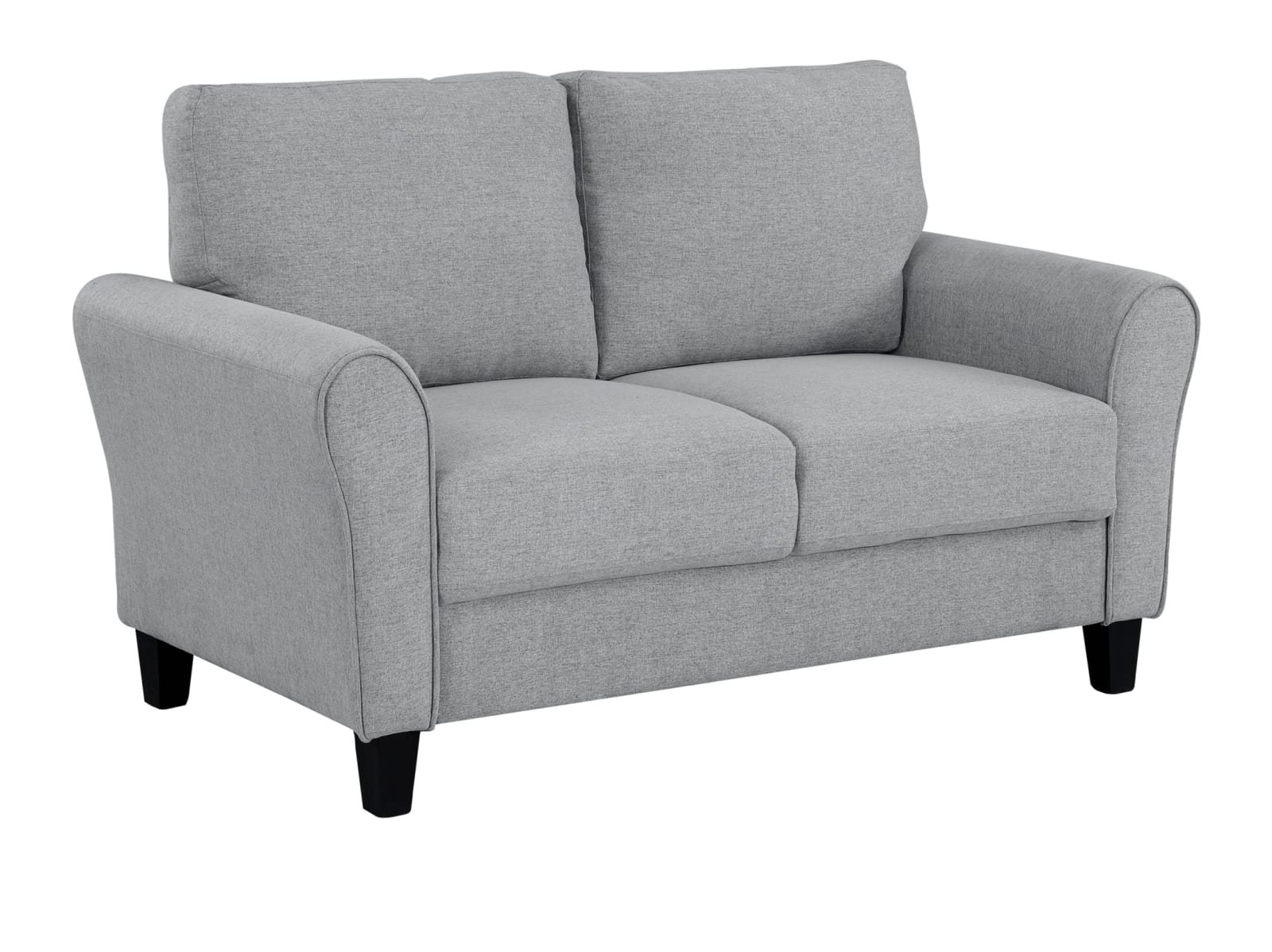 Its style crossing over many categories, from transitional to modern, farmhouse to traditional, the classic profile of the Malcolm Collection presents a versatile seating option for your home. Welt trim defines the front profile of the love seat’s rounded arms, their subtle flare giving way to the seating they flank. Gray or sand textured upholstery covers the collection for neutral complement to your home’s décor.