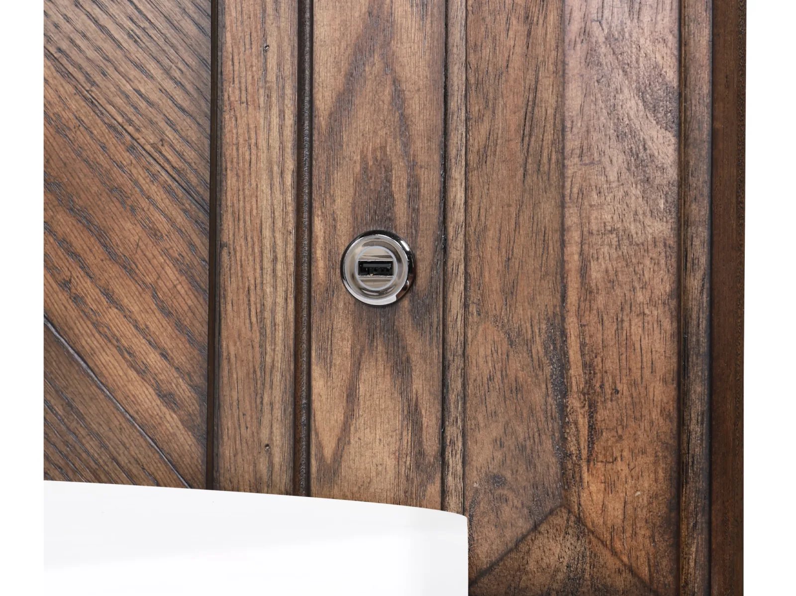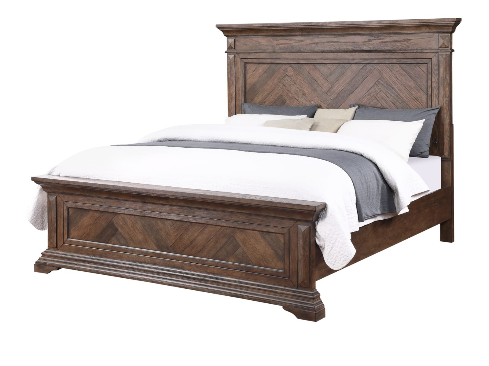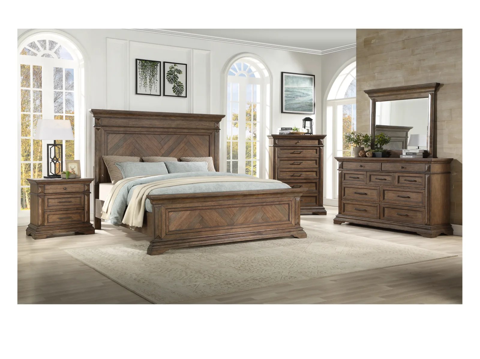 & Free ShippingThe Malvern bedroom has beautiful plank inlays and large crown moldings on top and bottom of all pieces in a brushed Walnut finish. The bed has USB ports on each side and the bottom drawers of the chest and dresser are Cedar lined. The large dresser has a jewelry tray included and a large matching beveled, landscape mirror is available. The matching door chest has doors and storage and reversible door panels. The matching swivel chest has a mirror, drawers, shelves and space to hang jewelry or belts.