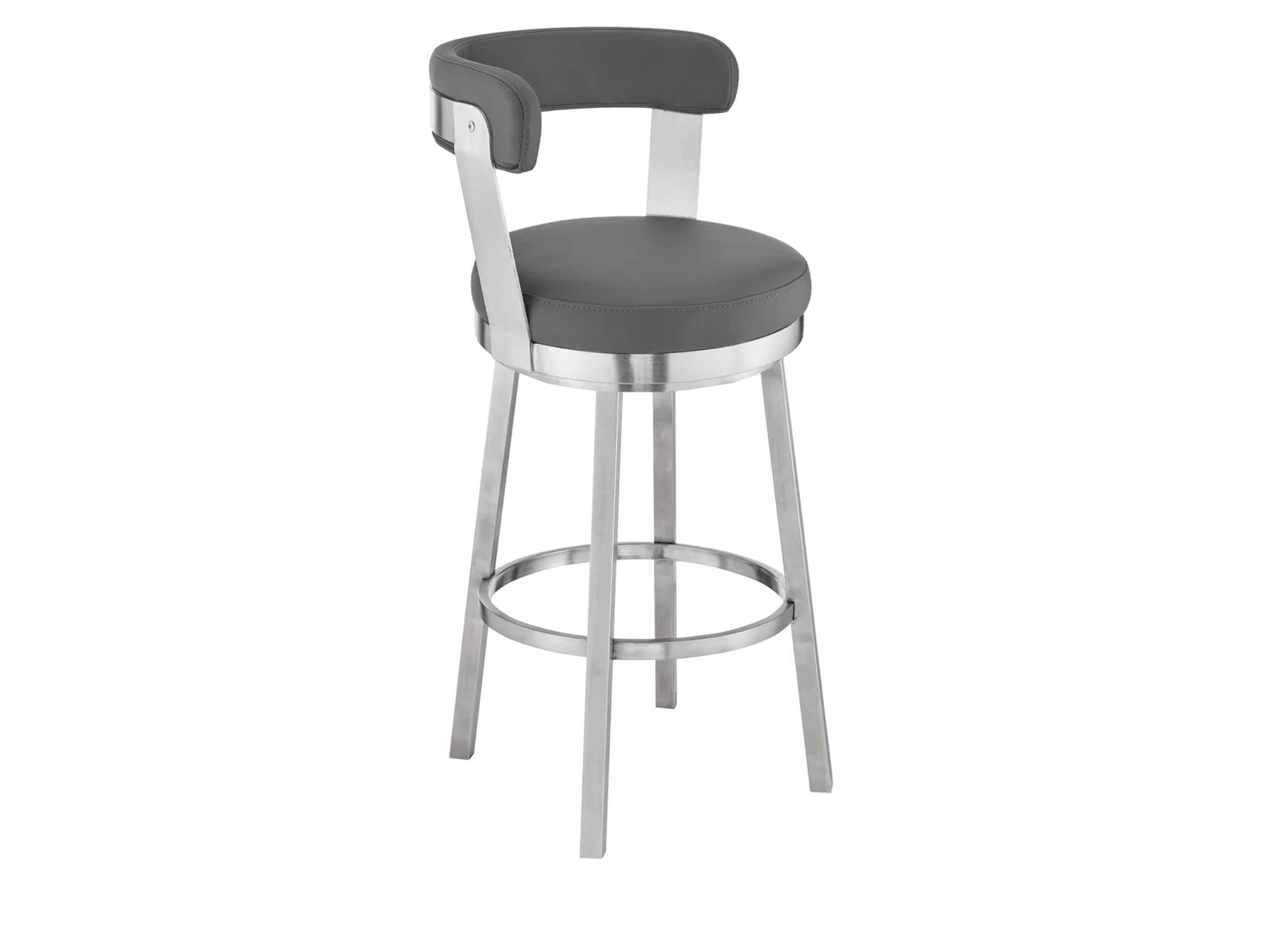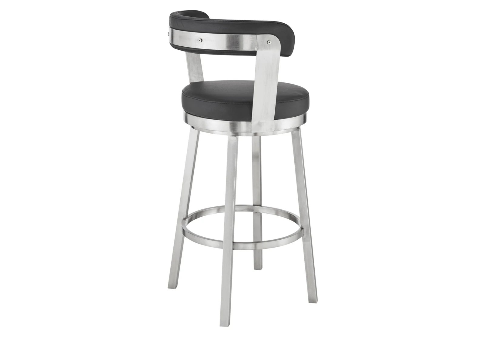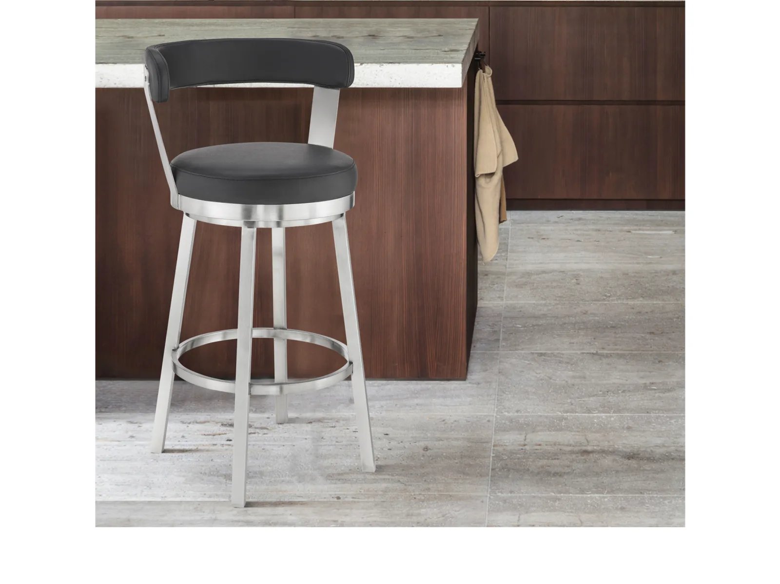 & Free ShippingLook no further than the Mamba Swivel Bar Stool from Armen Living for your modern and contemporary stool needs! This innovative metal stool features sleek faux leather upholstery and strong metal accents. The plush and thick foam-padded cushion will allow you and your guests to relax in comfort for extended periods of time without issue. The Mamba was crafted with high-quality steel, able to withstand everyday wear and tear, giving you years of enjoyment. This versatile stool can easily blend into any modern kitchen or contemporary household. The Mamba bar stool comes in several colors and finishes color choice of black and gray faux leather with black finish, or black, gray, and white faux leather with brushed stainless-steel finish. All choices are also available in your choice of 26″ counter height and 30″ bar height.