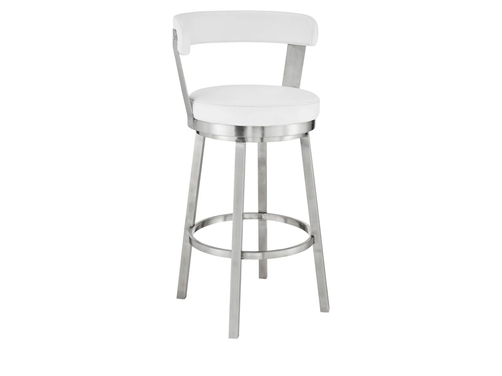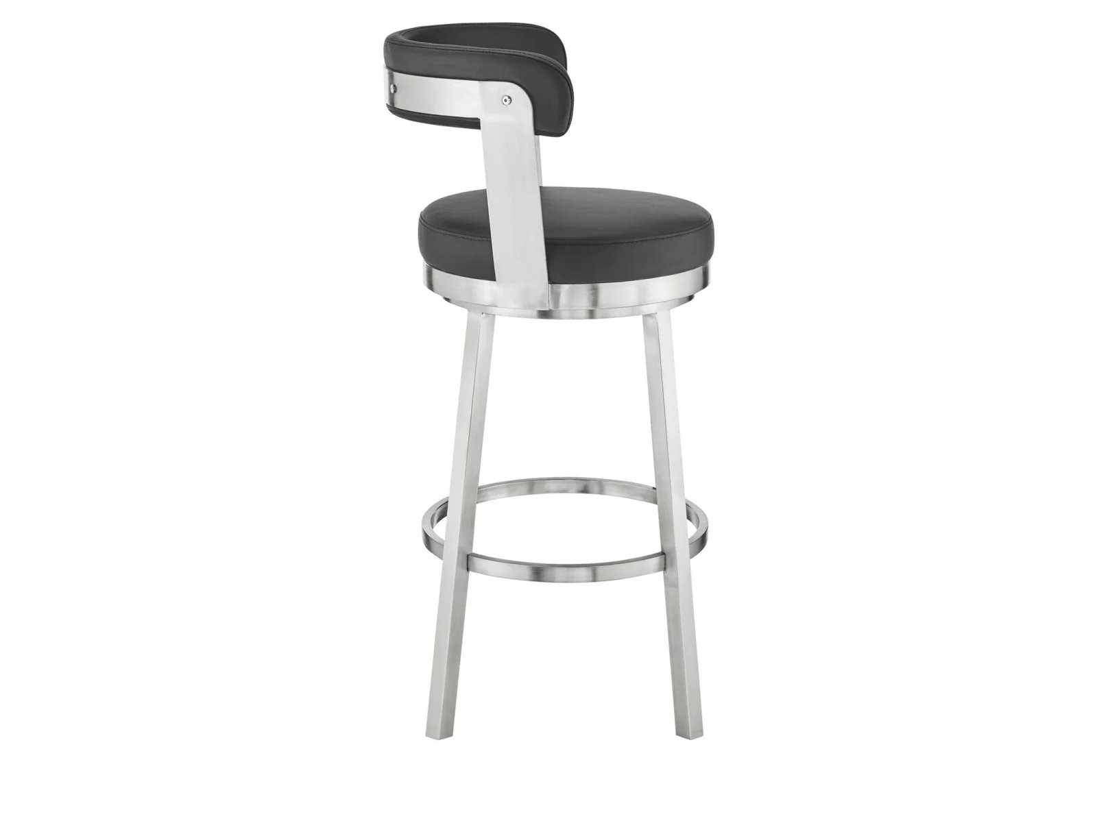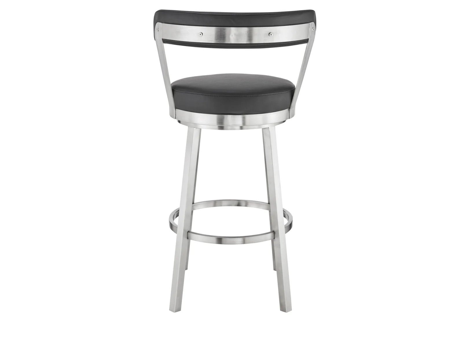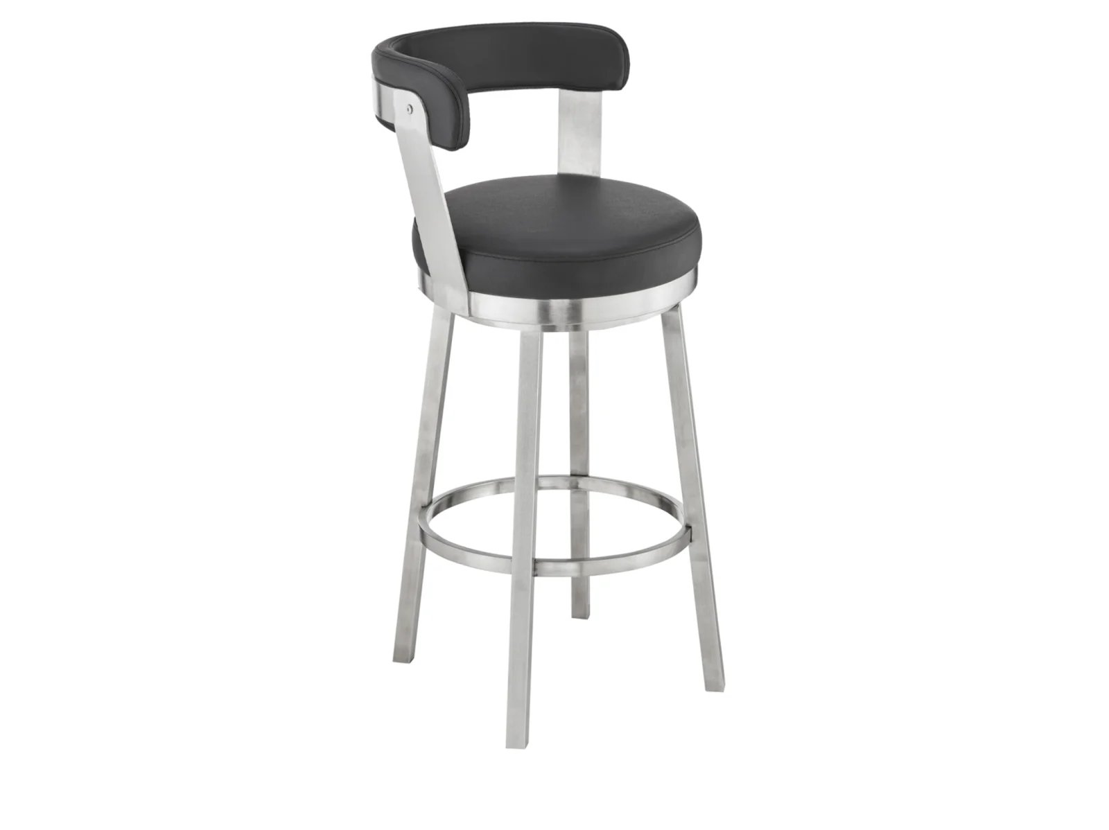 & Free ShippingLook no further than the Mamba Swivel Bar Stool from Armen Living for your modern and contemporary stool needs! This innovative metal stool features sleek faux leather upholstery and strong metal accents. The plush and thick foam-padded cushion will allow you and your guests to relax in comfort for extended periods of time without issue. The Mamba was crafted with high-quality steel, able to withstand everyday wear and tear, giving you years of enjoyment. This versatile stool can easily blend into any modern kitchen or contemporary household. The Mamba bar stool comes in several colors and finishes color choice of black and gray faux leather with black finish, or black, gray, and white faux leather with brushed stainless-steel finish. All choices are also available in your choice of 26″ counter height and 30″ bar height.