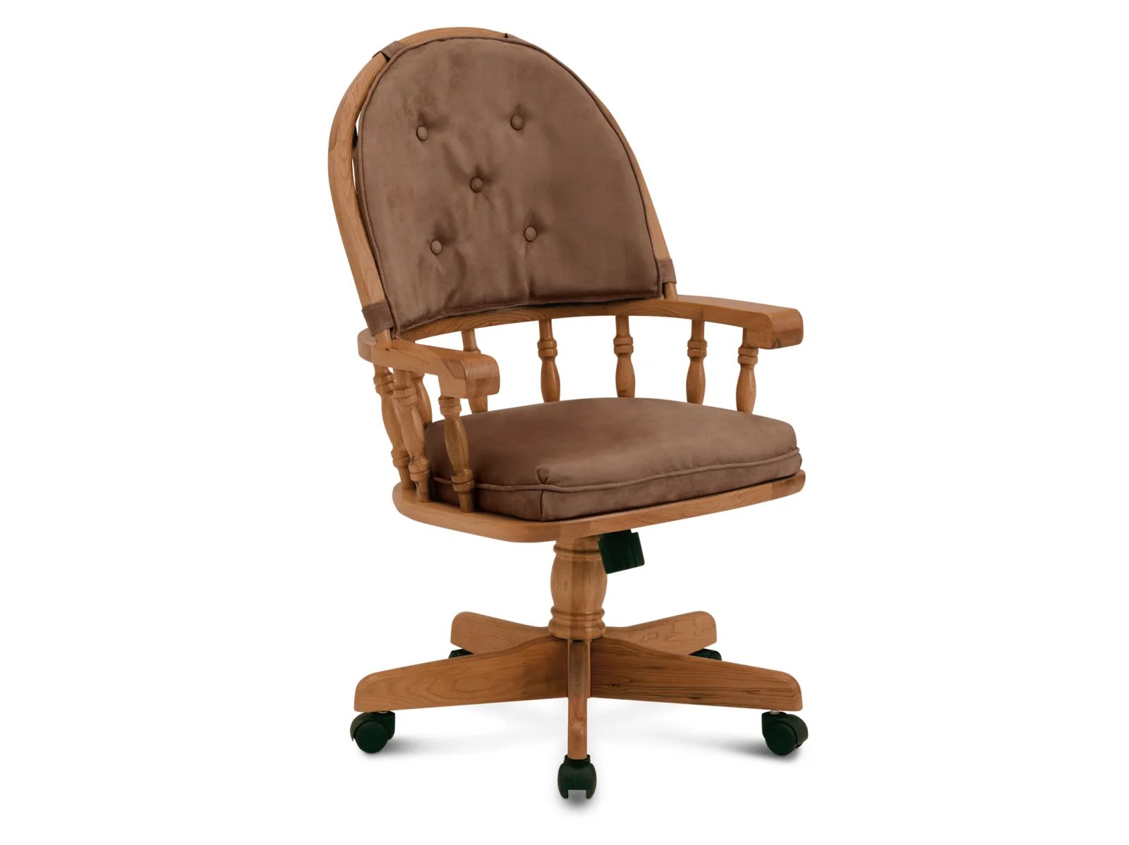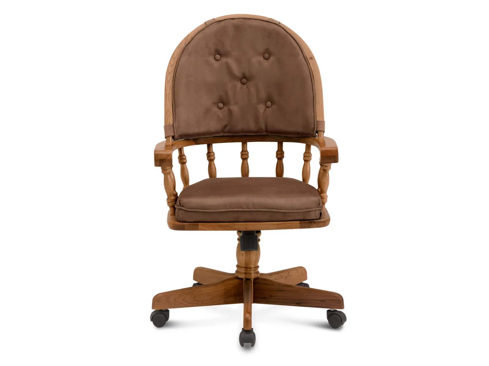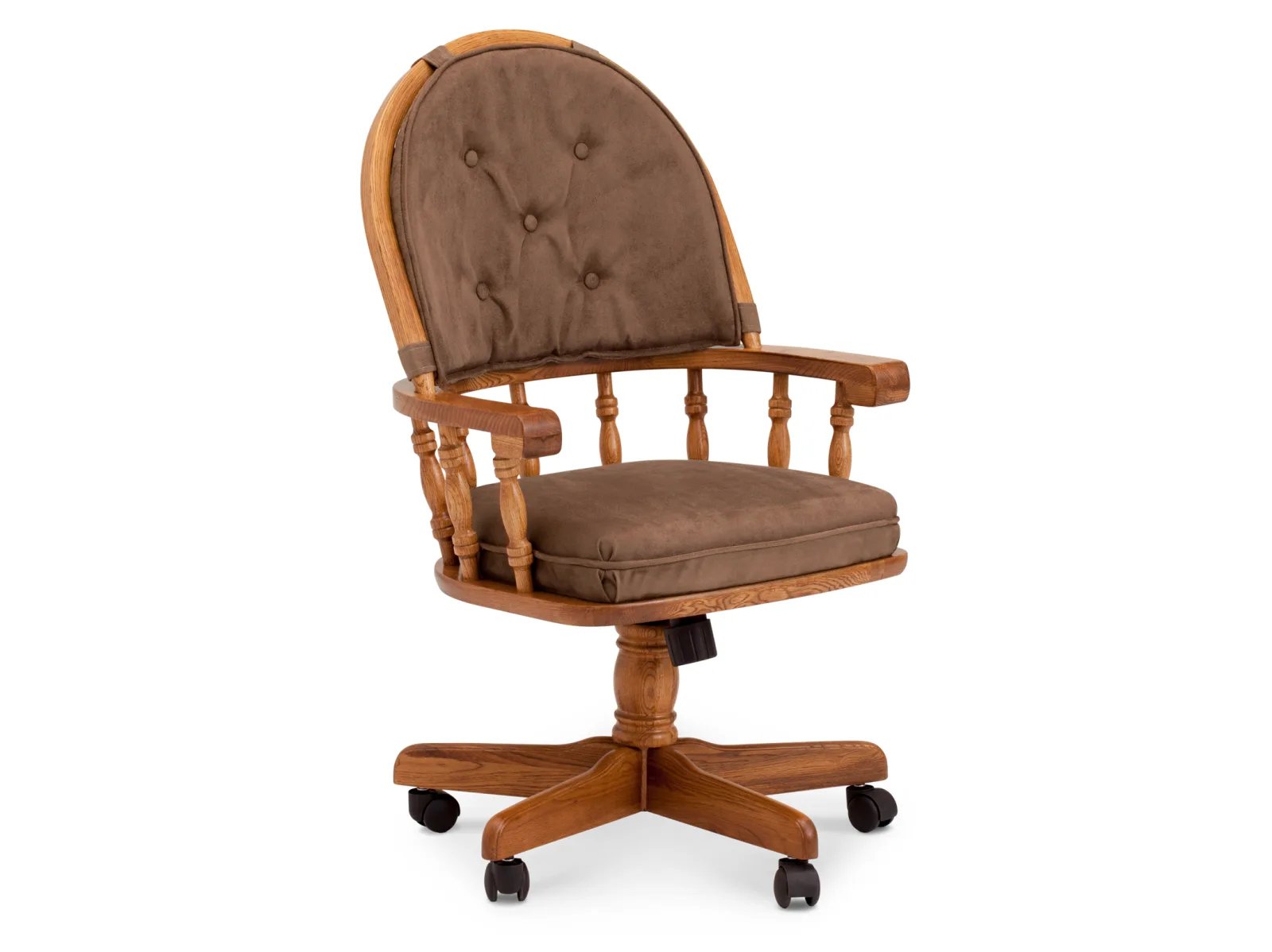 If you are looking for a dining chair with heirloom quality in a traditional style, bring home the Manchester Caster Arm Chair! This rolling armchair is ready to maneuver around during mealtime with its easily gliding casters and tilt mechanism. The Manchester features a heavily padded seat and back upholstered with soft taupe Enduro-Suede®. Made of solid oak, this chair boasts a pedestal and star base, spindle arm supports, and a finish that is resistant to stains. The Manchester definitely has memories in the making! This enjoyable chair is available in a light or dark finish.