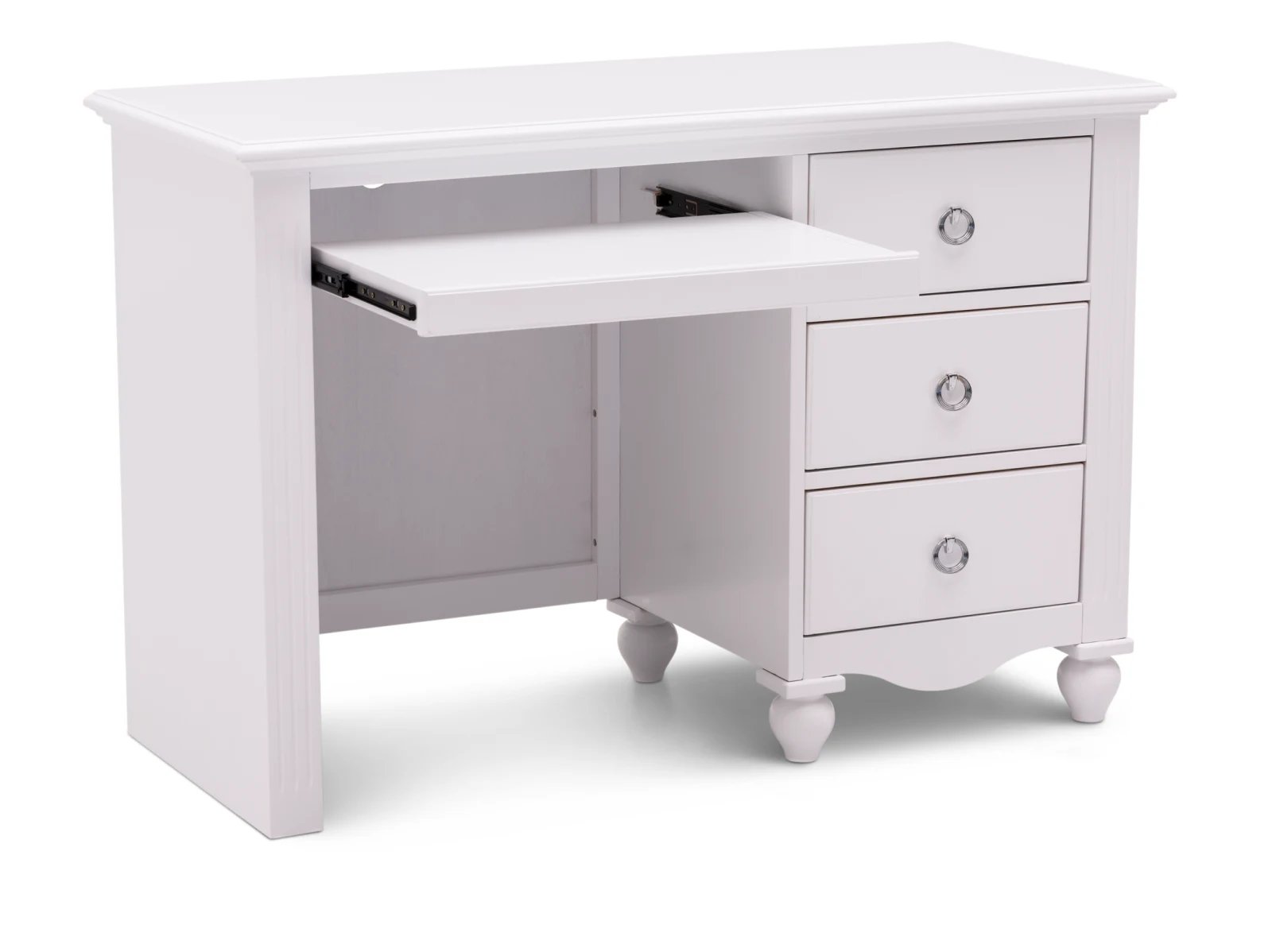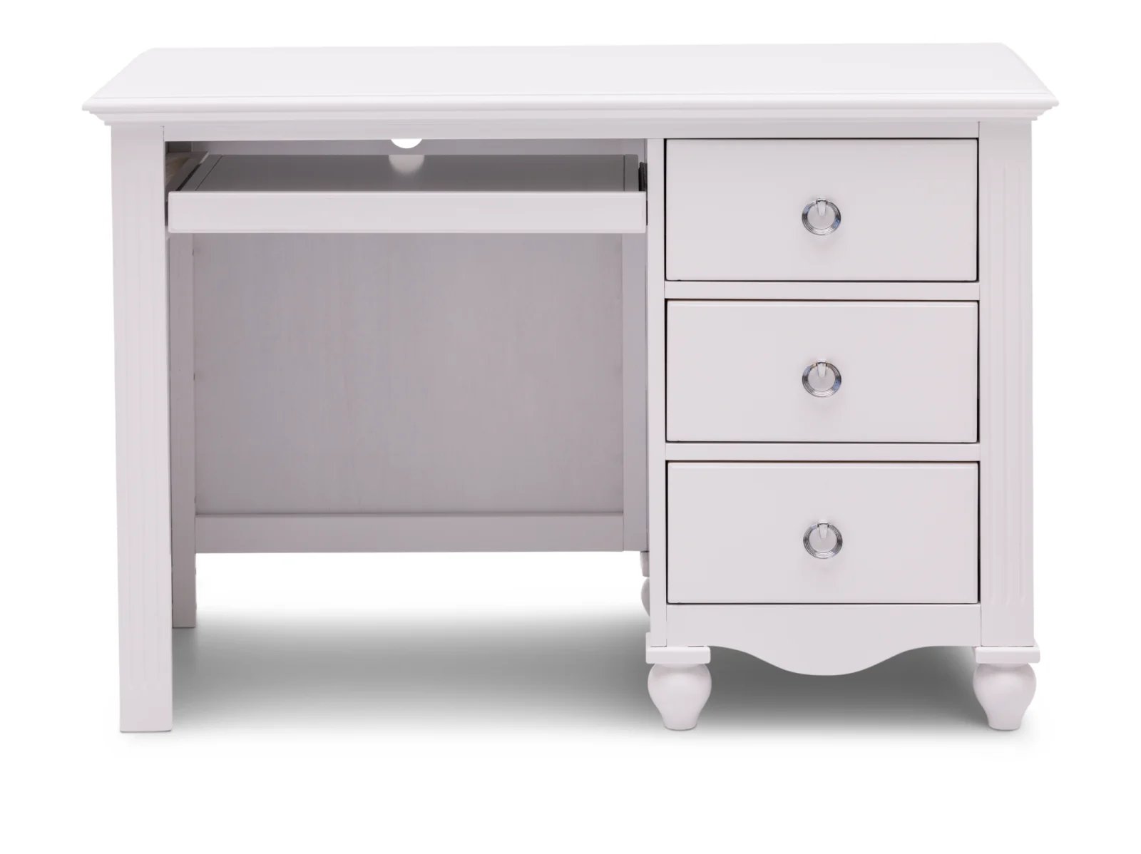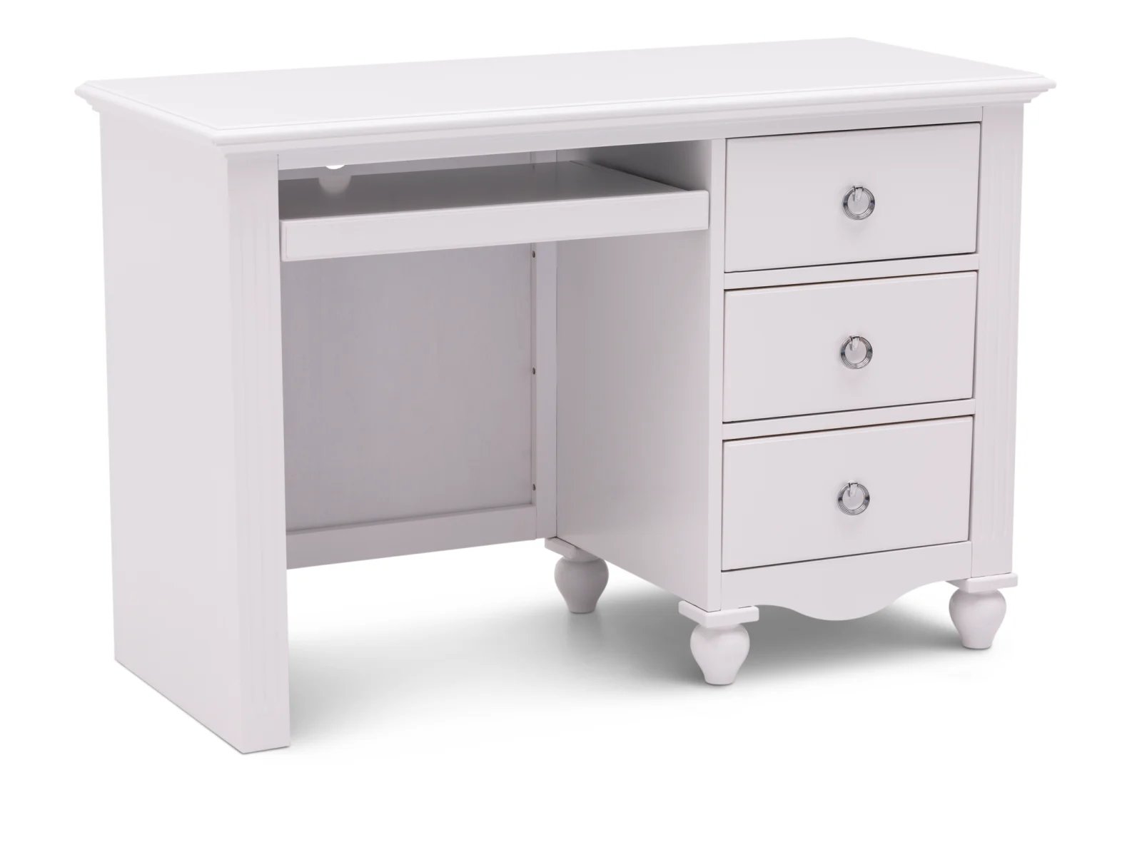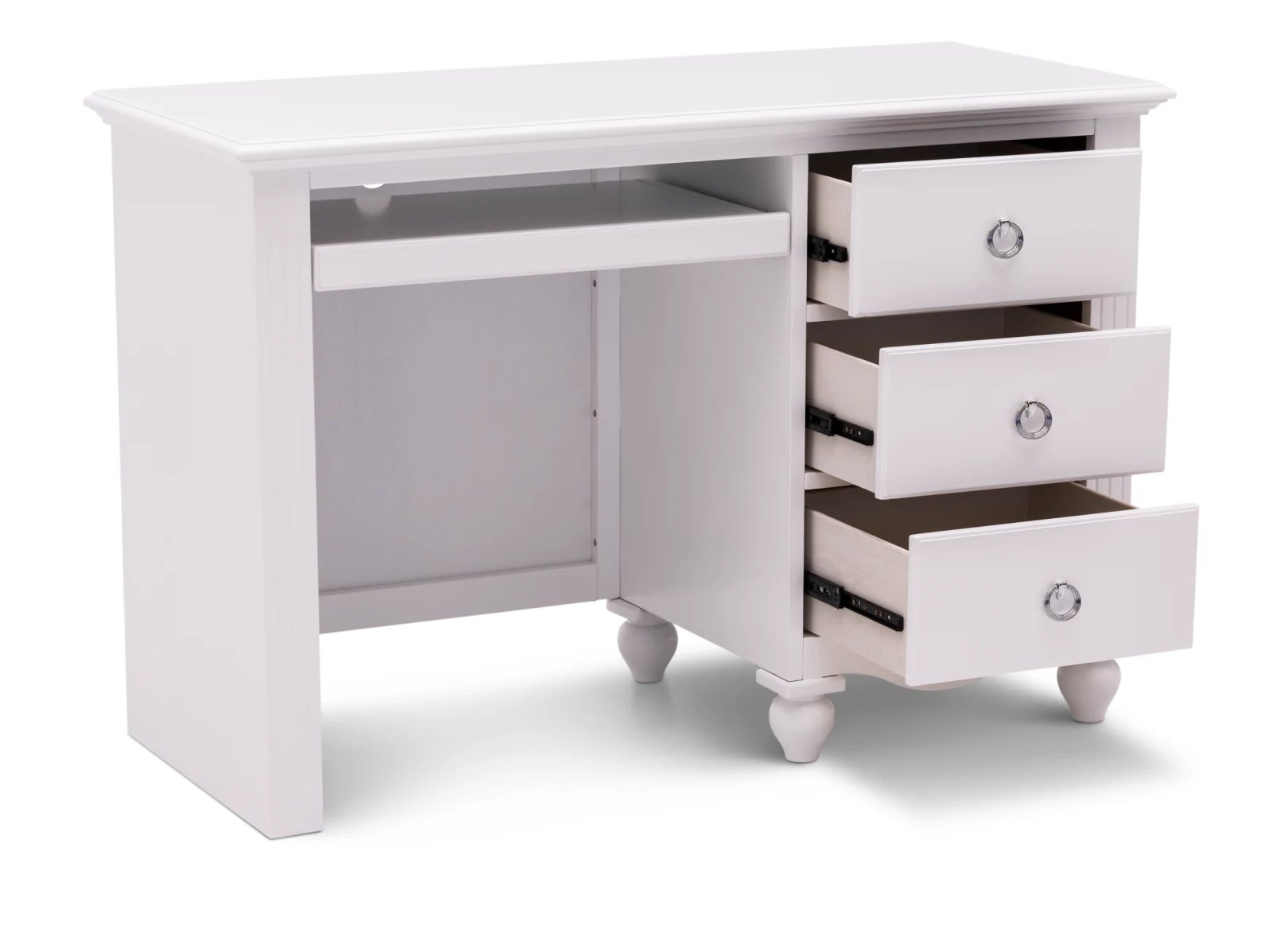 & Free ShippingThe elegant, yet whimsical, styling of the Meghan Writing Desk features traditional design elements that include a white finish, clipped corner case good tops, high polish round pull hardware, and turned feet. This writing desk provides ample storage space for homework and personal items. Complete your child's room with the Meghan Lounge Storage Bed or the Meghan Panel Bed, available in twin and full sizes.