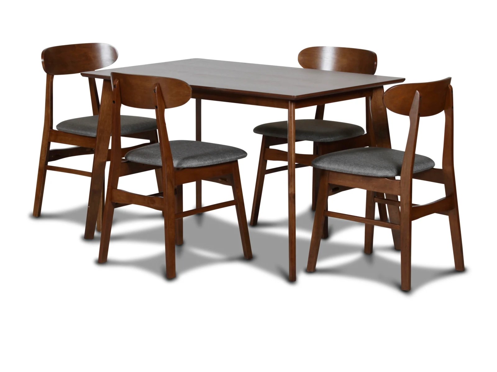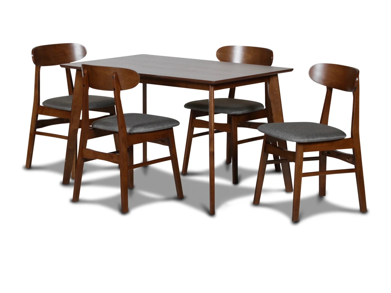 The Milaca Dining Set is a stylish and inviting choice for any dining space. The collection includes a choice of a 47″ rectangle dining table and four dining chairs. Made from durable rubberwood solids and okume veneers, the Milaca Dining collection is built to last. The cushions on the dining chairs are upholstered in 100% polyester and are available in four colors: dark gray, green, light gray, and orange. Whether you’re hosting a formal dinner party or a casual family meal, the Milaca Dining collection is perfect for any occasion. Its durable materials and stylish design make it a great choice for any dining space.