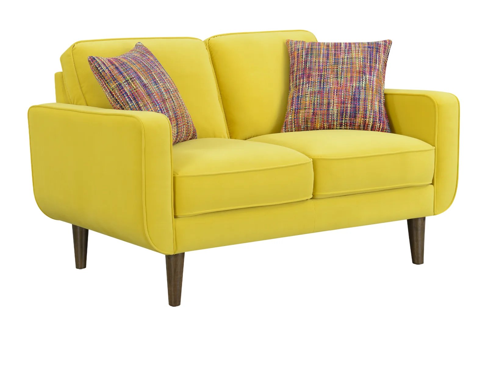 & Free ShippingThe Millbrae Loveseat from Emerald Home makes a bold statement. With bright colors and a mid-century modern style, this is a welcome addition to liven up your space.
