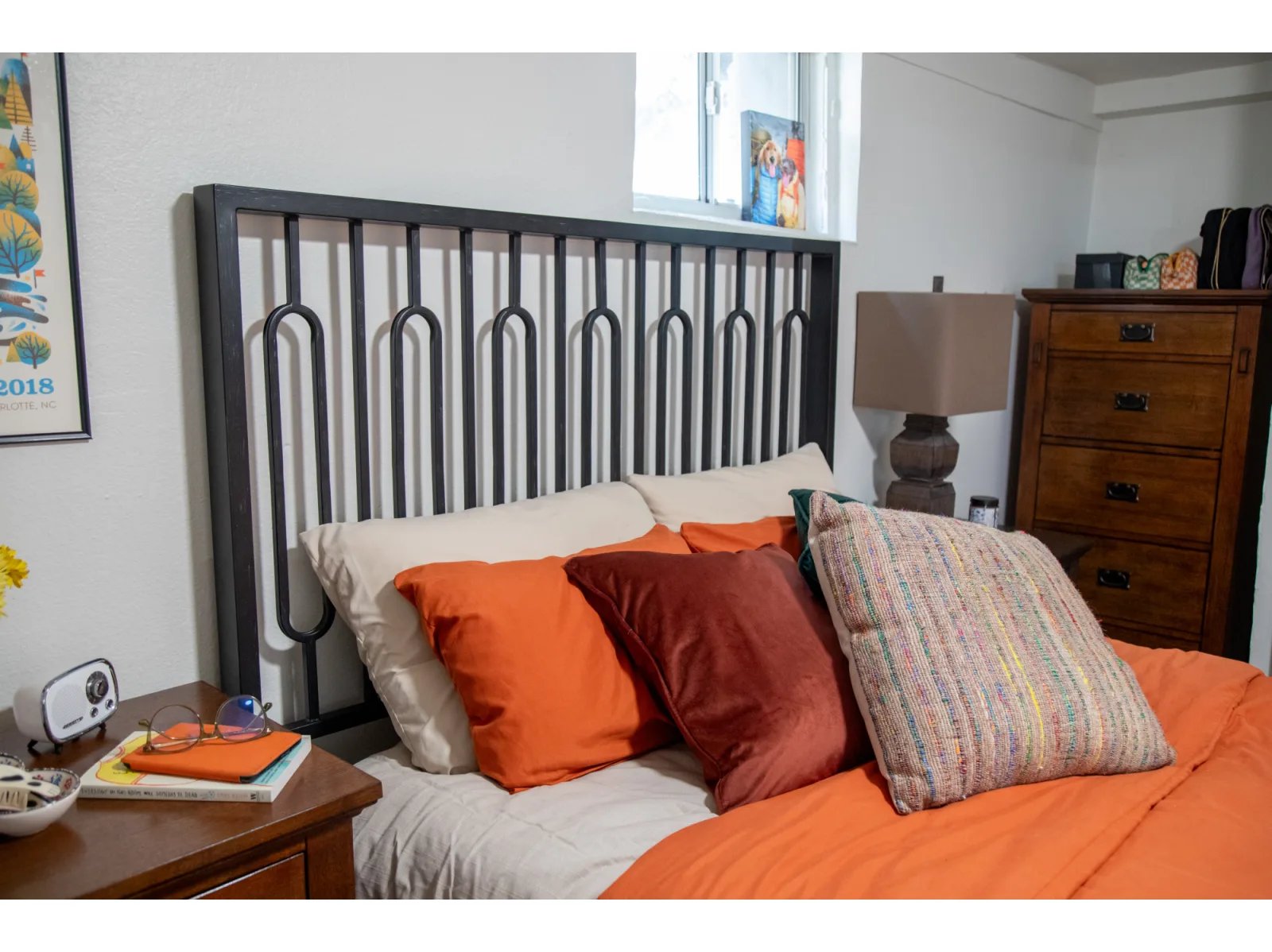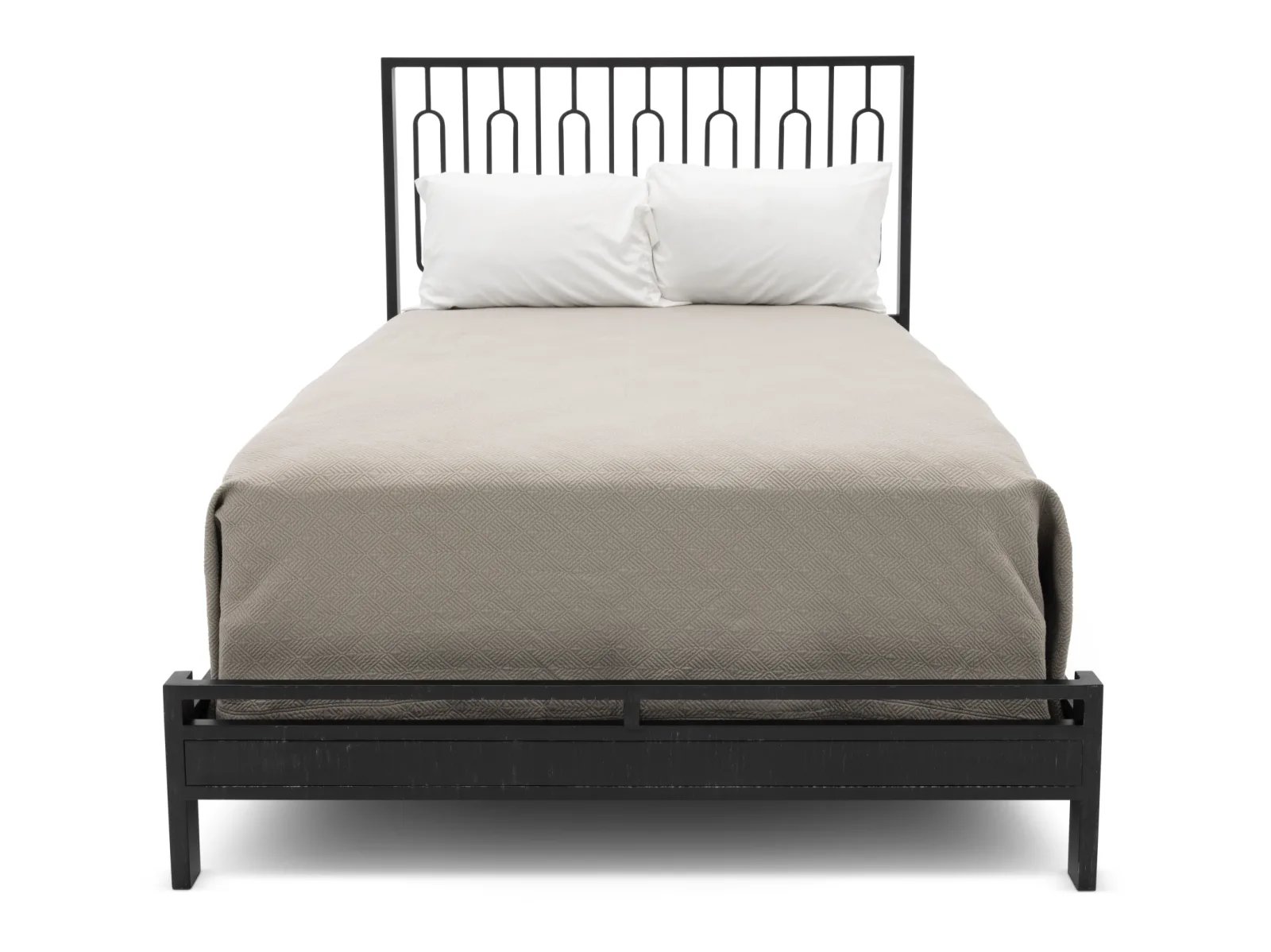 The Miura Metal Bed’s bold, contemporary style enhances any bedroom with class and character. Built for durability, its powder-coated steel frame and boxed tubular construction deliver lasting strength and stability. The bolt-through headboard ensures a secure fit, while felt-lined center slats help reduce noise for a quieter night’s sleep. It comes together in a striking brushed silver black striated finish, bringing depth and allure to its eye-catching abstract headboard design. Modern style meets practical engineering in the Miura Metal Bed, making it a perfect centerpiece for any modern or urban-inspired space!