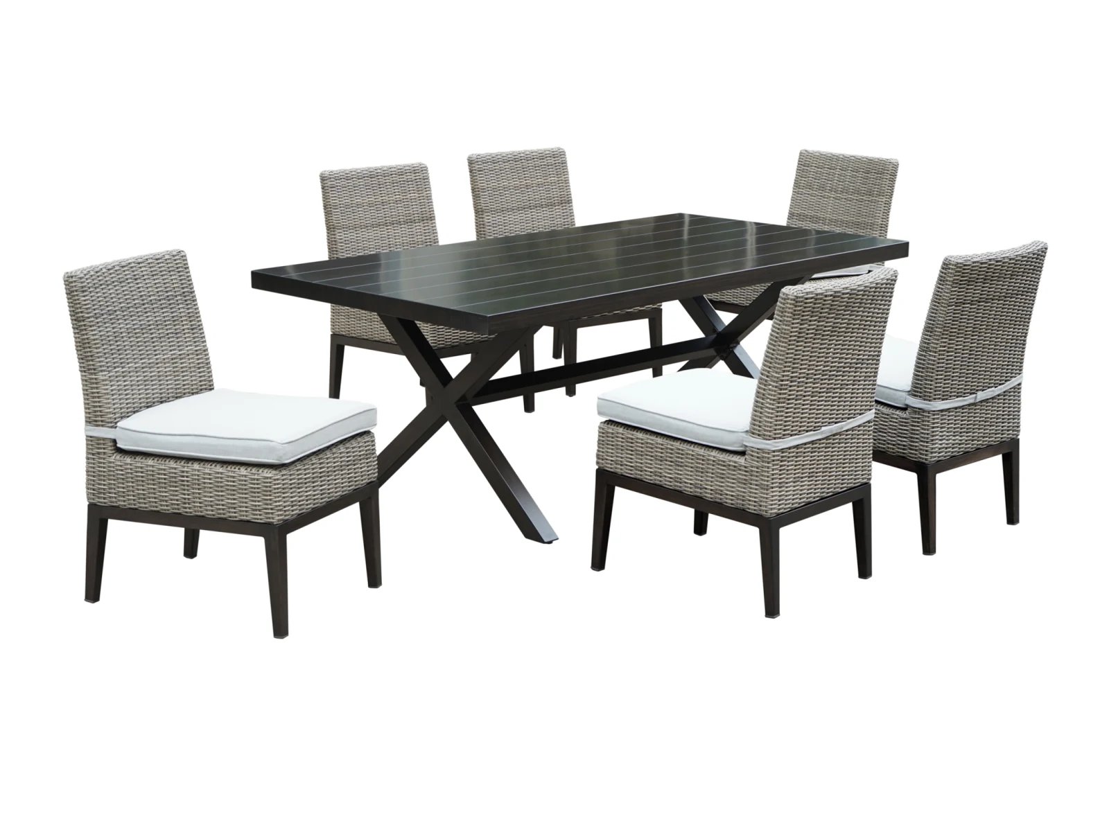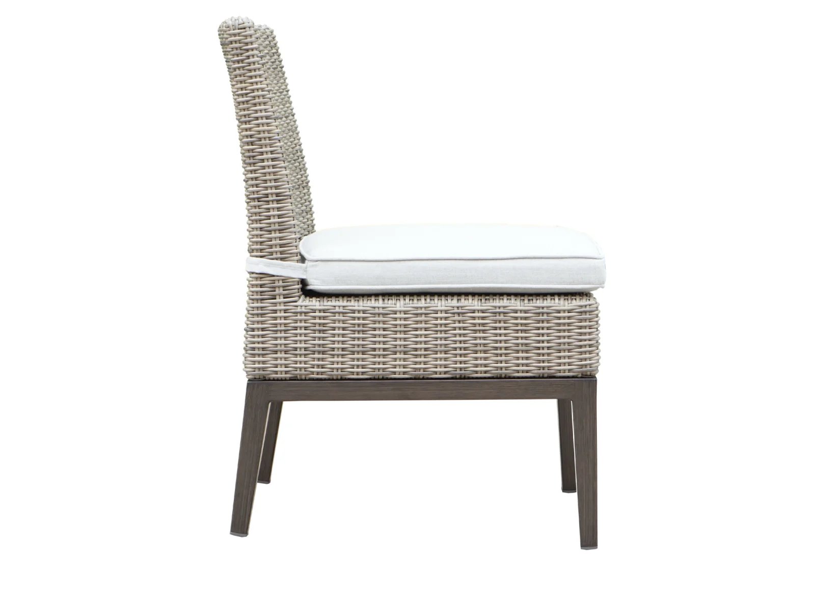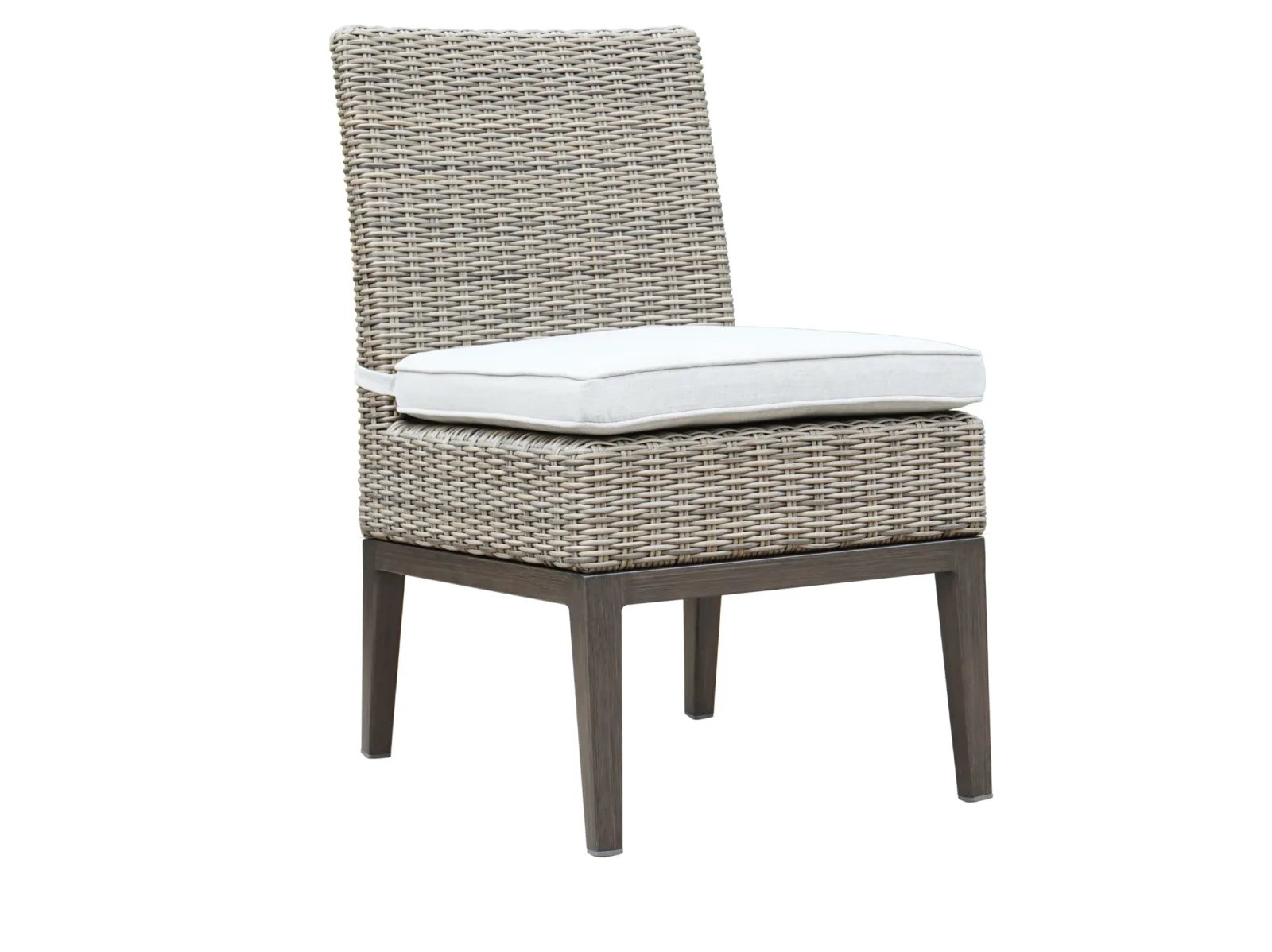 & Free ShippingEnjoy the the great outdoors with the Moclips hand-woven Dining Chair. All-weather resin and solution-dyed acrylic cover make this chair weather and fade-resistant to withstand whatever the elements dish out. The powder-coated aluminum base are naturally rust-resistant so you can relax. The two-tone driftwood finish is neutral with a small punch of color and the chair is just the right scale and pitch to be perfectly comfortable. Use as a standalone chair or pair with the Moclips dining collection for a complete outdoor dining set.