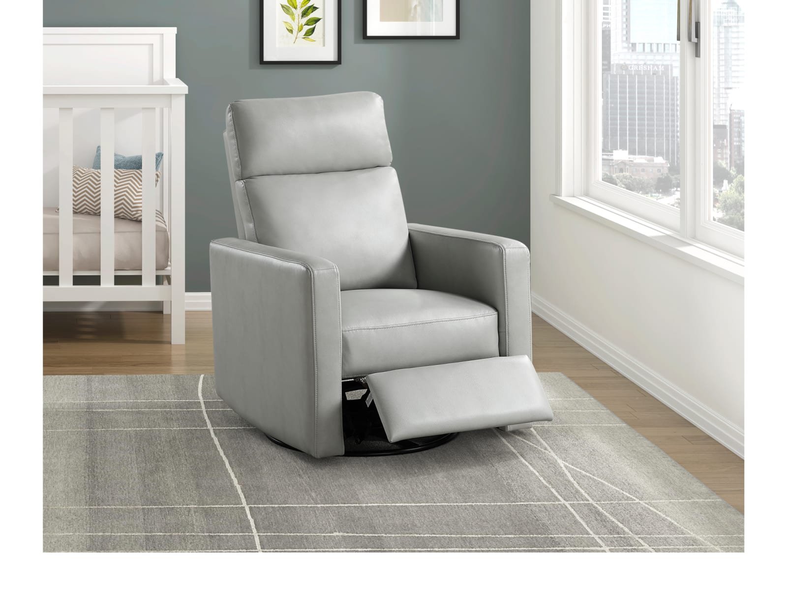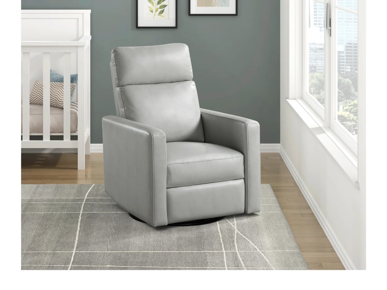 Experience ultimate relaxation with the Morro Bay II Swivel Gliding Recliner Chair upholstered in smoke grey breathable faux leather. Designed for comfort and convenience, this chair features a smooth gentle gliding motion and full 360-degree swivel that adds a soothing element to any living space. The breathable faux leather provides a sleek, modern look while ensuring durability and easy maintenance. Whether in your living room, home office, or guest room, this recliner brings style, functionality, and long-lasting comfort.