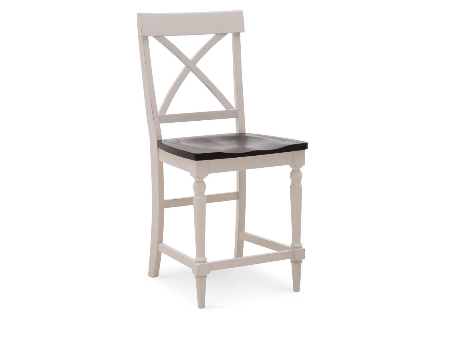 Bring farmhouse charm to your kitchen or bar area with the Mountain Home 24″ Backed Bar Stool. This backed bar stool combines comfort and style, featuring a sturdy solid pine construction with a two-tone finish that perfectly complements the Mountain Home collection. The rustic cherry seat adds a touch of warmth, beautifully contrasting with the crisp white frame and back. The Mountain Home’s elegant backed design not only enhances comfort but also adds a touch of sophistication to your space – take yours home today!