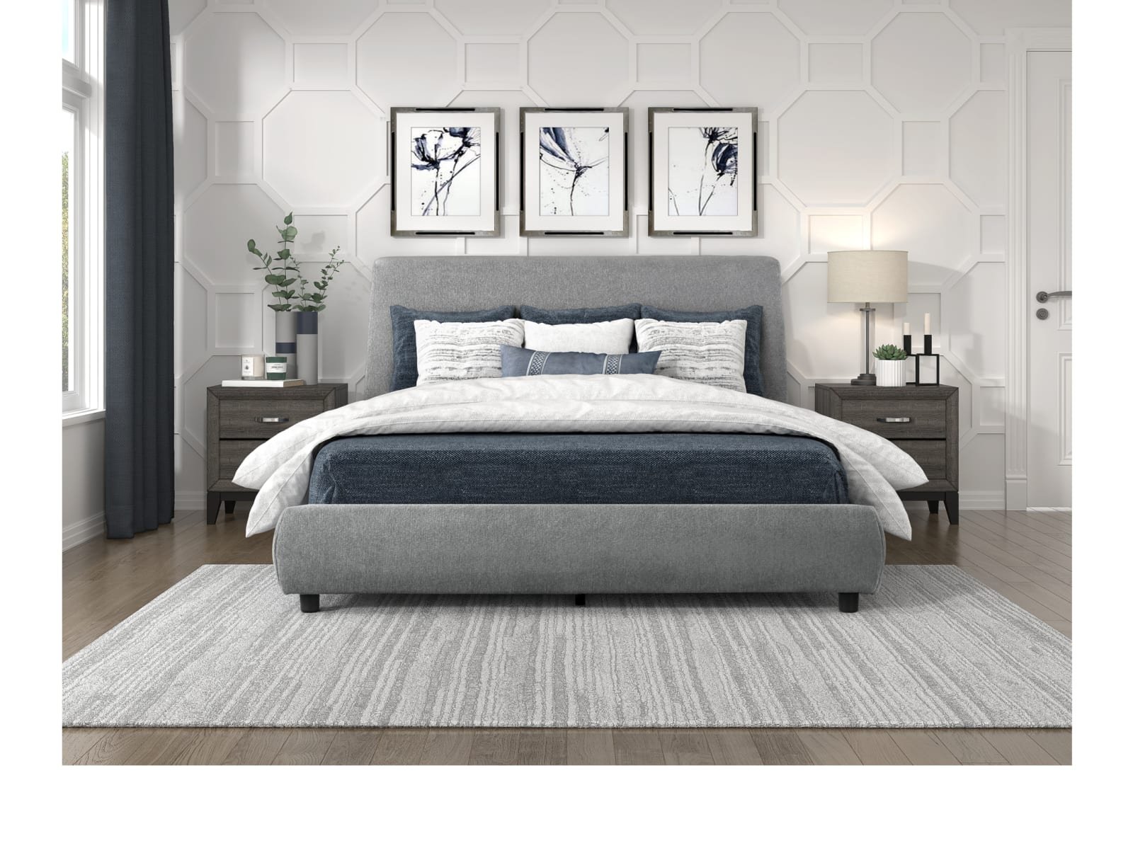 & Free ShippingThe Nadine Collection’s design is comprised of unfettered lines and soft touch, creating an elegant addition for any modern bedroom. The unfettered profile of the headboard’s profile solidifies the collection’s modern aesthetic. Chenille fabric upholstery covers the ultra-low platform bed’s headboard, footboard, and rails.