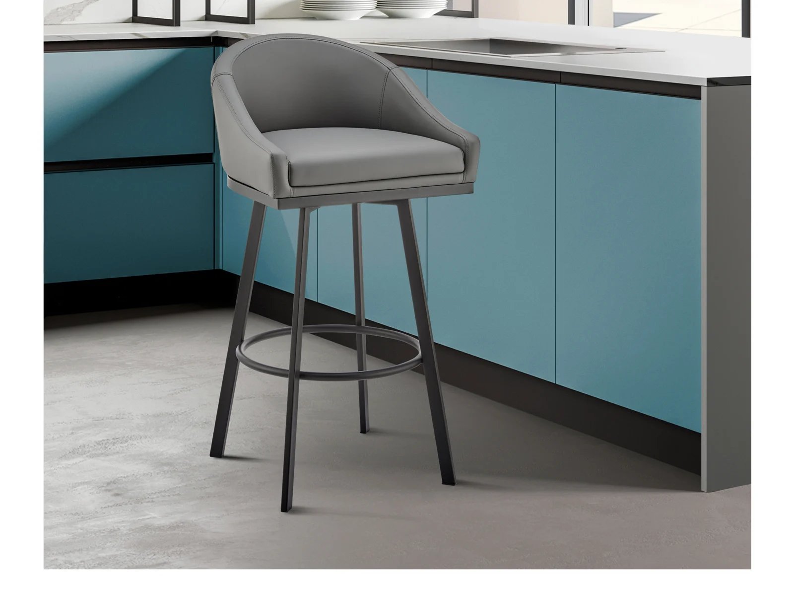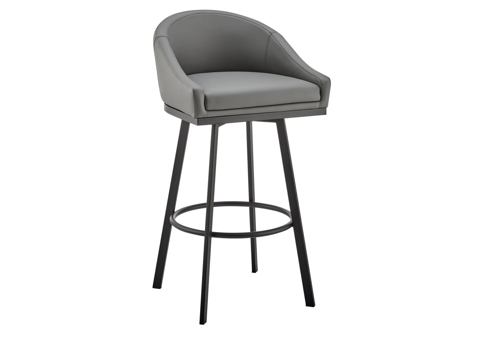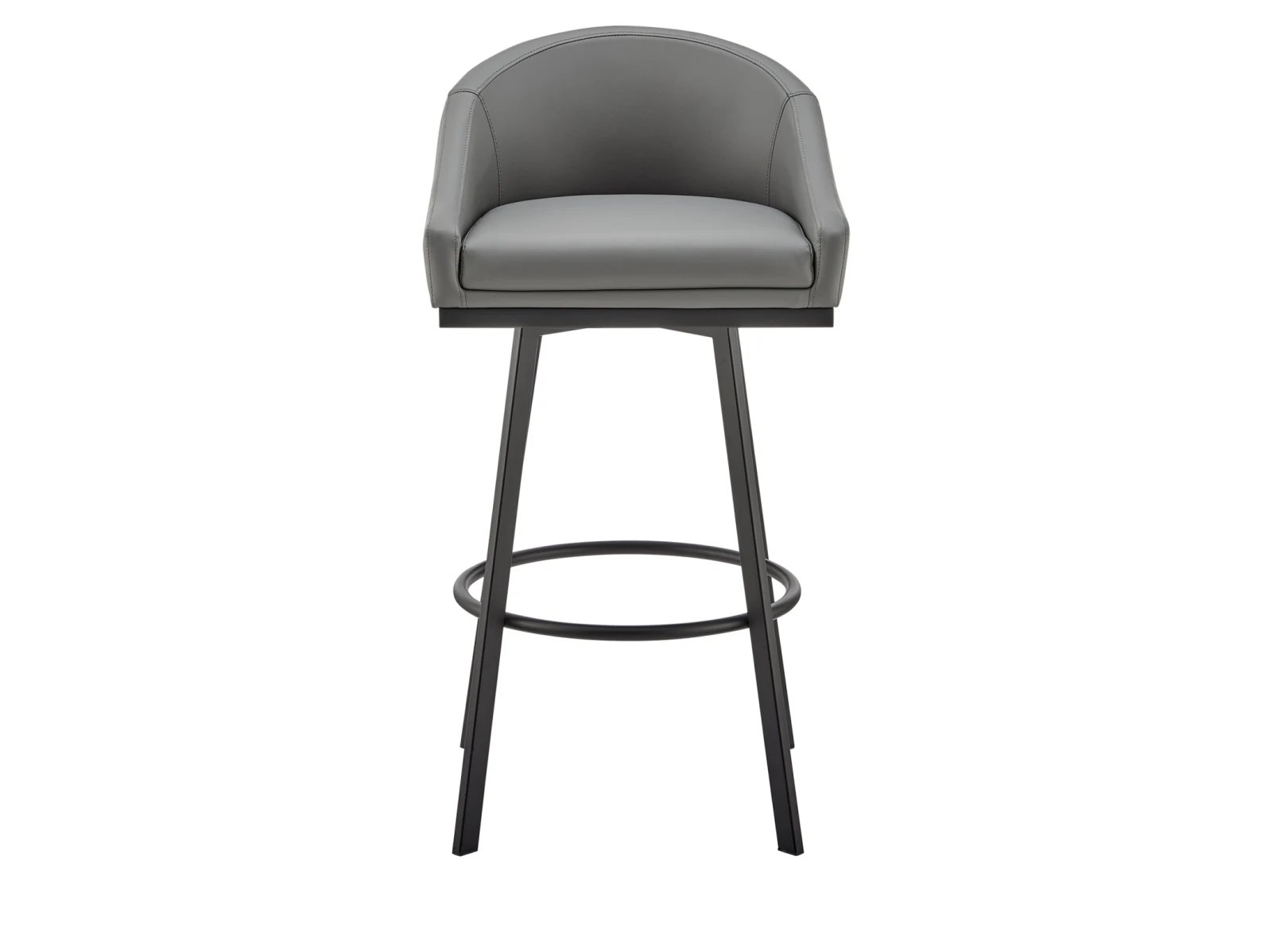 Add modern sophistication to your space with the Neko II Swivel Bar Stool. Featuring a sleek barrel-style seat upholstered in durable, stain-resistant faux leather, this stool combines style and practicality. Its sturdy four-leg metal base ensures long-lasting support, while the 360-degree swivel function offers effortless mobility. Perfect for kitchen islands, pub tables, or home bars, this versatile stool is a must-have for any contemporary home.