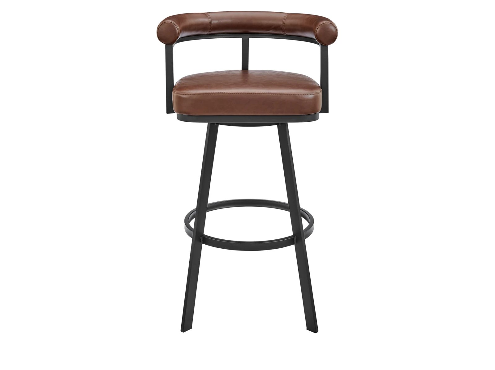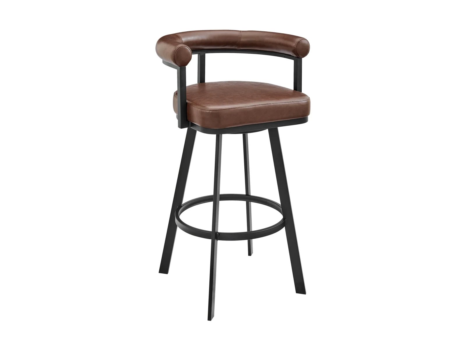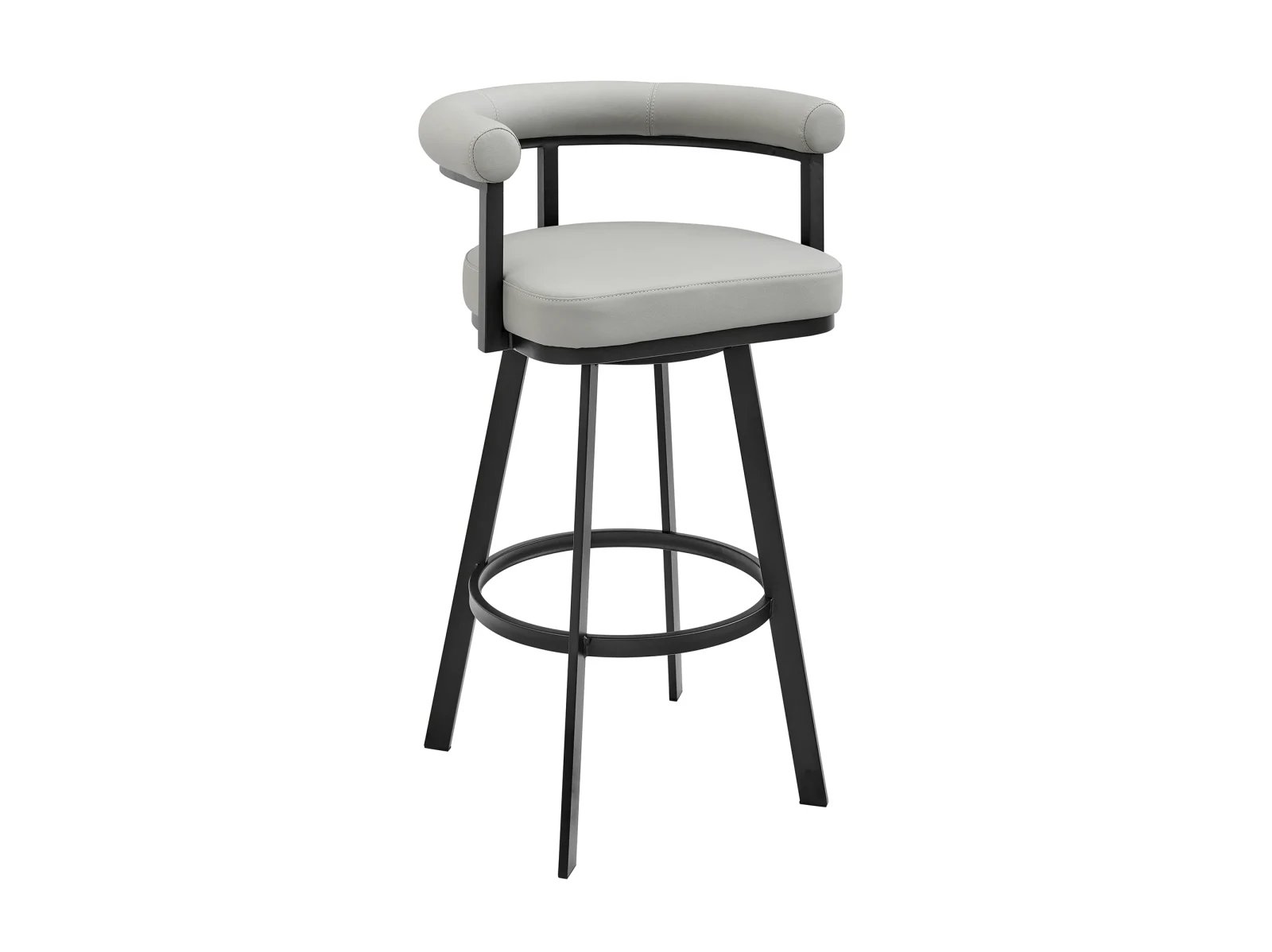 & Free ShippingGlam up your space with the flair of our Newman swivel bar or counter stool in faux leather and metal from Armen Living. Featuring a minimal and streamlined barrel back, our mid-century modern counter stool vouches for a sleek and inviting look. The plush cushioning at the back and the padded seat offers a comfortable seat while the open back allows for breathability. Uplifted with a chic metal frame, our stylish counter or bar stool makes a powerful design statement. Upholstered in faux leather, it provides a comfortable stay at a high dining area, kitchen counter, or worktable. The wonderful full 360-degree swivel function allows for maximum mobility while the smooth glide swivel function allows you to change directions with ease. The Newman bar stool is available in your choice of a black finish with brown or grey faux leather, a brushed stainless-steel finish with your choice of black, light grey, or white faux leather, or a java brown finish with chocolate faux leather upholstery. It’s also available in 26-inch or 30-inch seat heights!