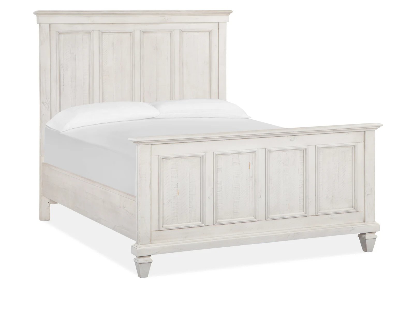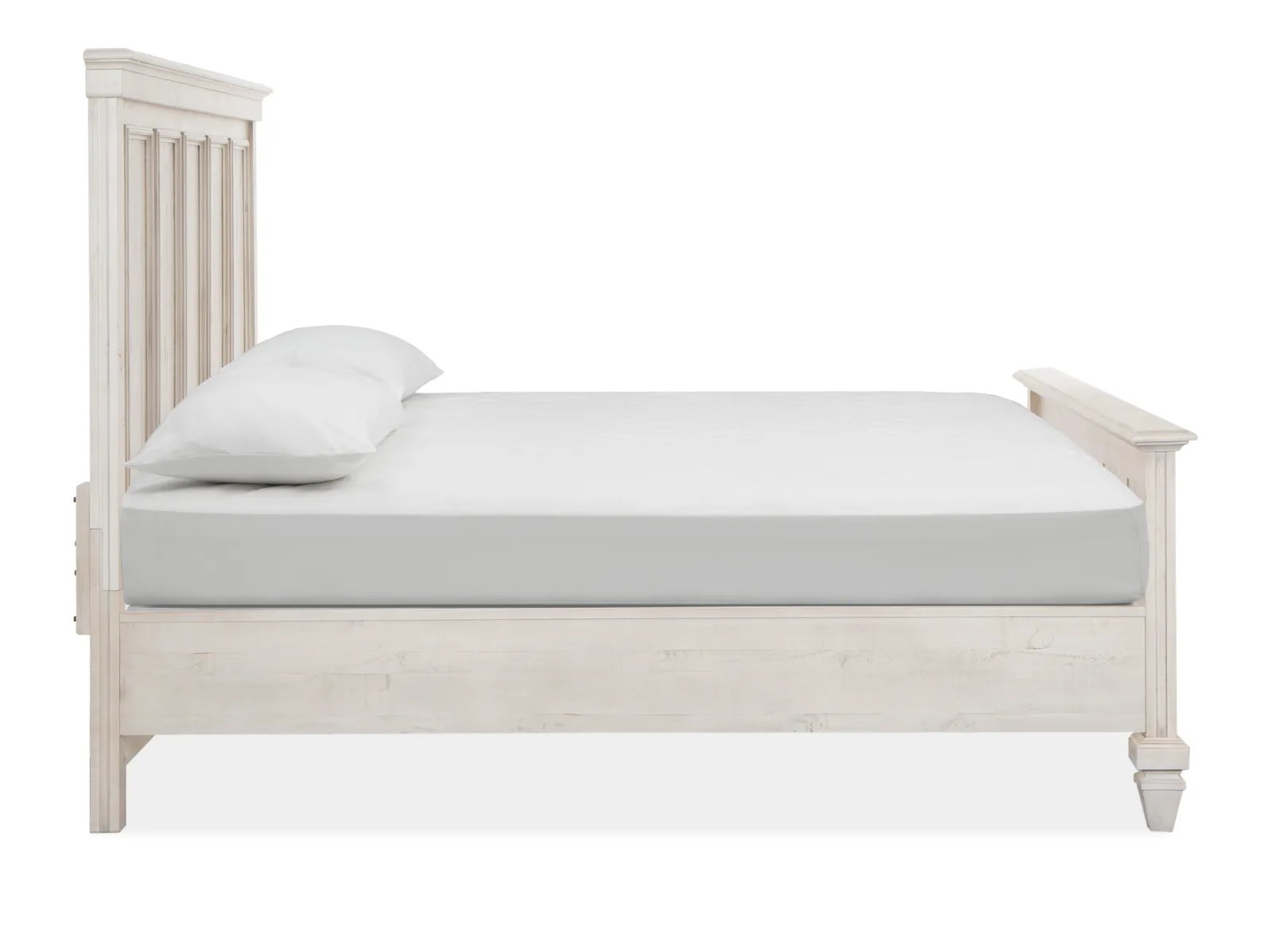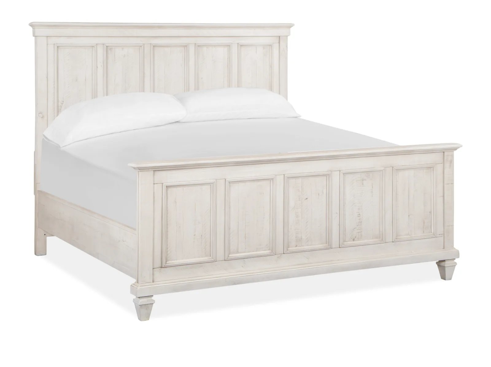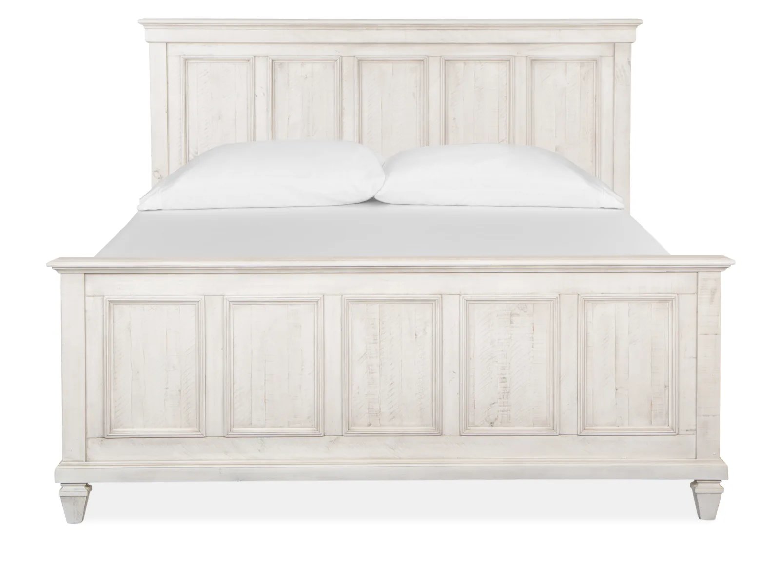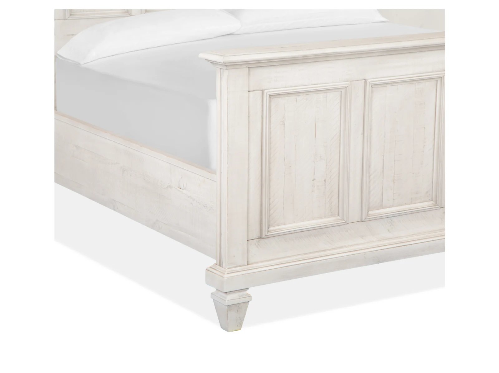 Offering a modern take on coastal cottage style, the Newsome Panel Bed instills a refreshing sense of comfort into any space. This attractive bed is crafted from pine solids and veneers in a calming alabaster finish, and it showcases subtle planked detailing along with a variety of finely carved elements. To perfect its inviting aesthetic, both the Newsome’s head and footboard are expertly paneled with elegant molded detailing and sophisticated overhanging top rails. To complete the look, the Newsome rests on elegantly tapered, expertly carved square feet. Elevate your bedroom with the Newsome Panel Bed.