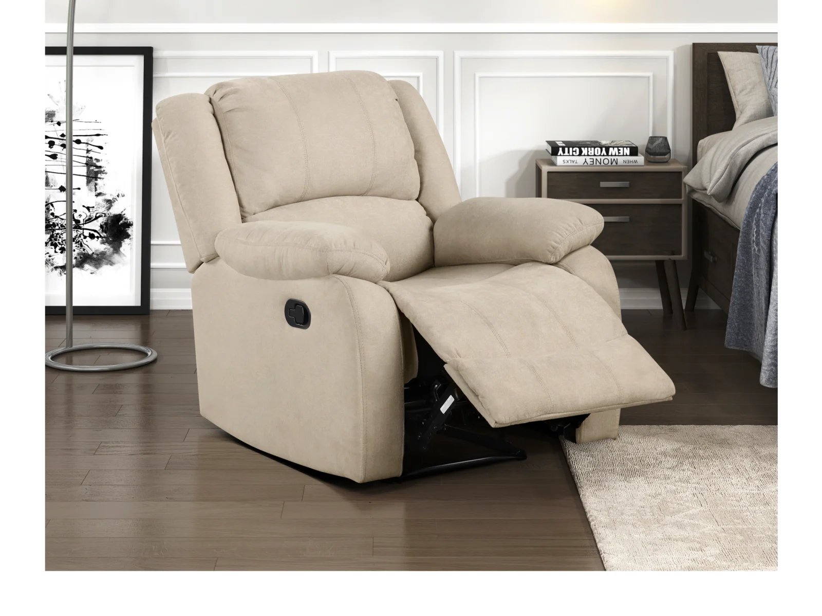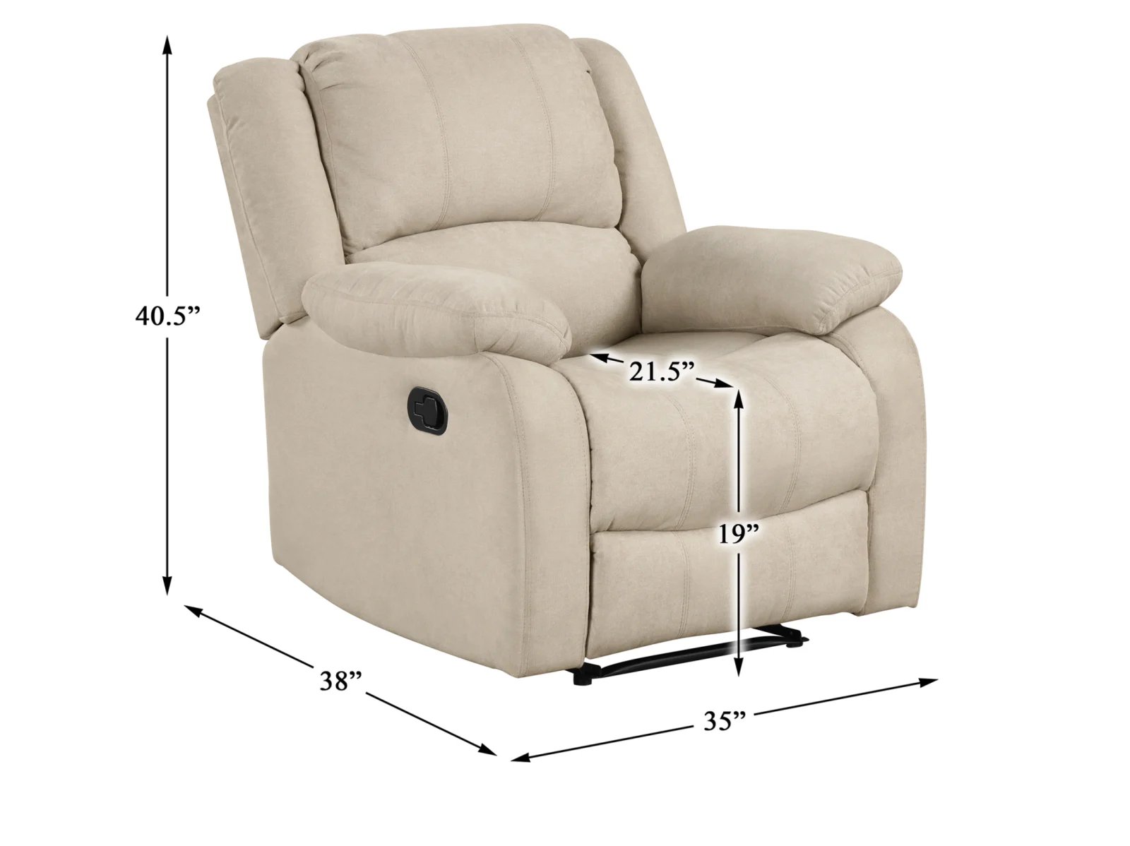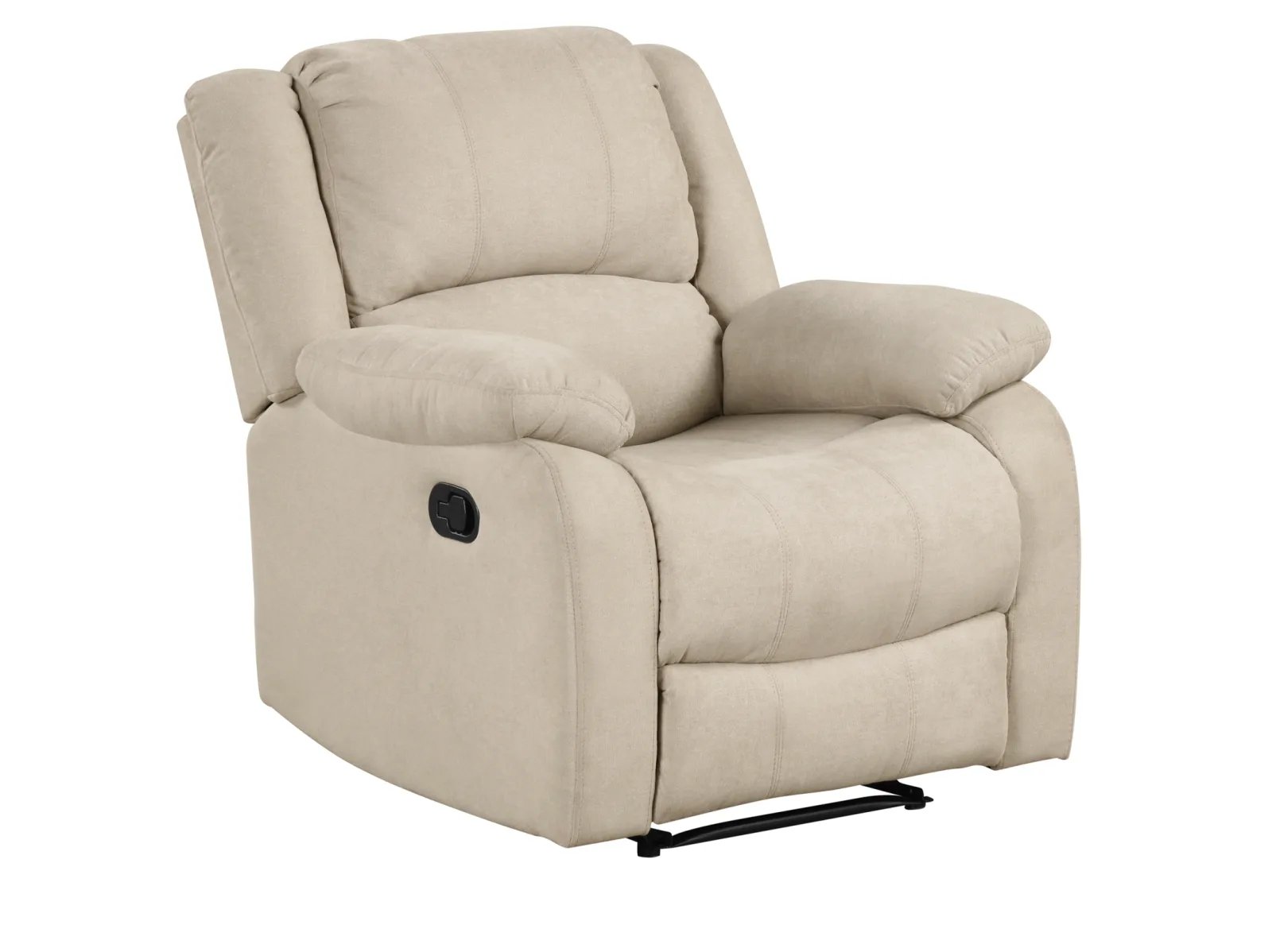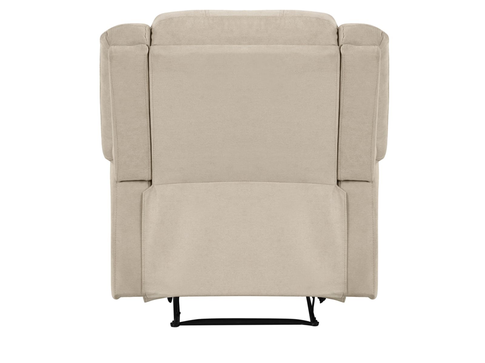 A solid pairing to your transitional living room, the Nixa IV Chair’s decorative versatility, and plush seating creates a reclining chair that is a complement to any lifestyle. Oatmeal textured fabric covers the chair, the neutral hue lending unobtrusive style to your space. The manual motion mechanism of the piece is engaged with a pull of the side-mounted tab, transitioning you from seated to reclined with ease, and the contoured seat structure is amply paired with pillow-top arms to maximize your comfort.