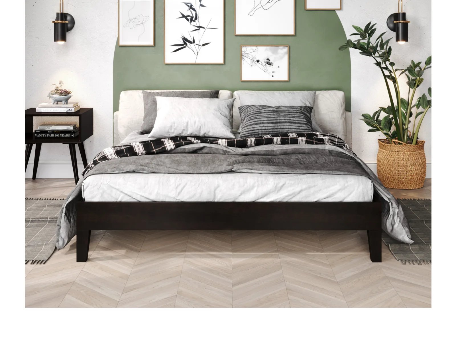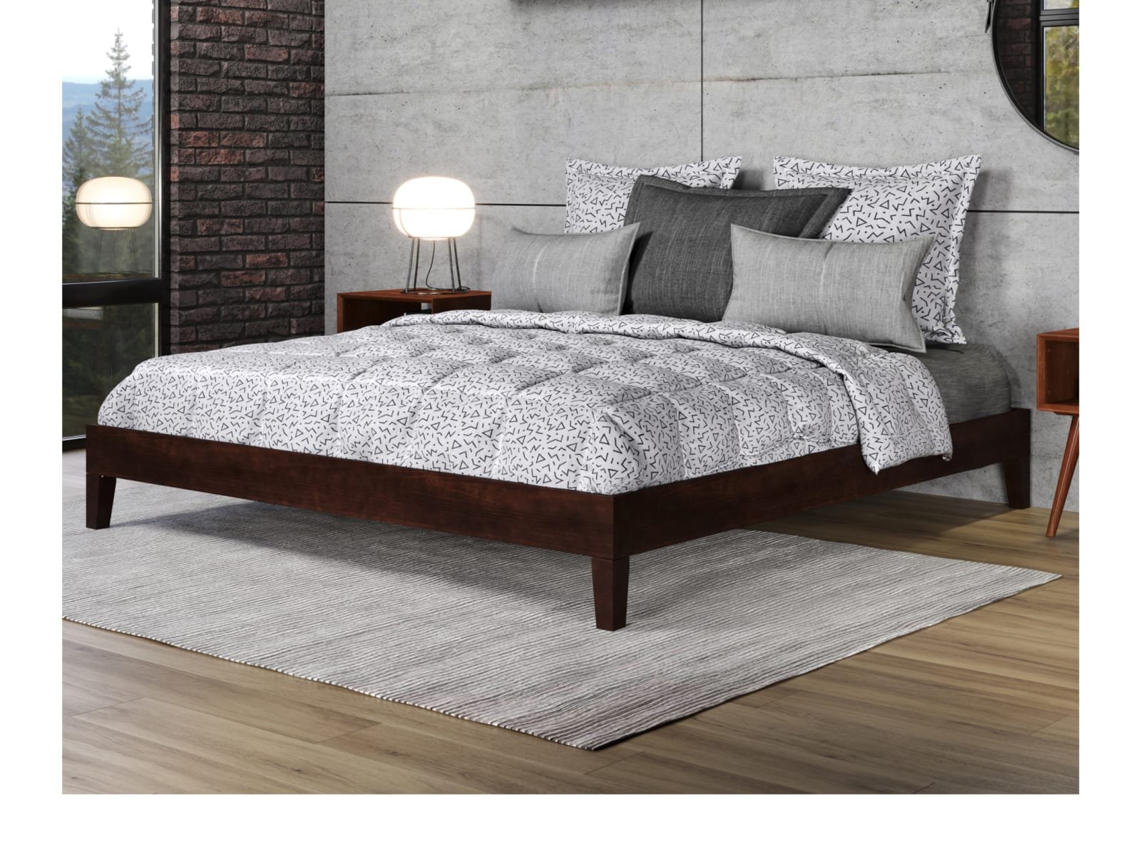 & Free ShippingClean lines and solid wood construction mark the simple sophistication of the Nokomis Platform Bed. Tapered legs add a touch of style to the straight lines while a 28-slat dual zone support base eliminates the need for a foundation for a neat modern look. Available in three finishes and four sizes, the Nokomis is built to withstand but dress up everyday life.