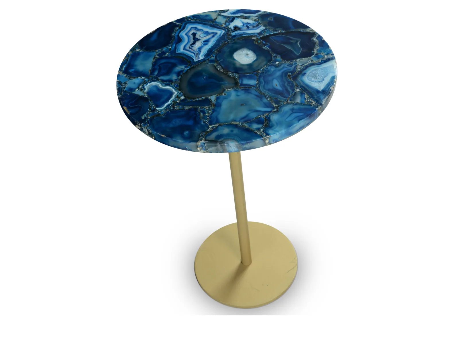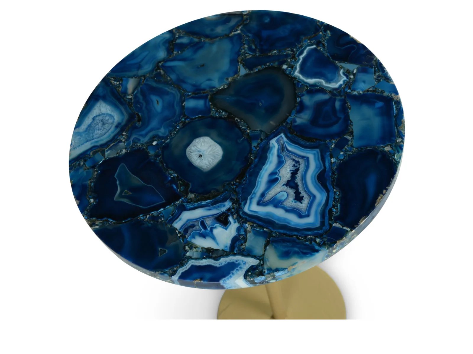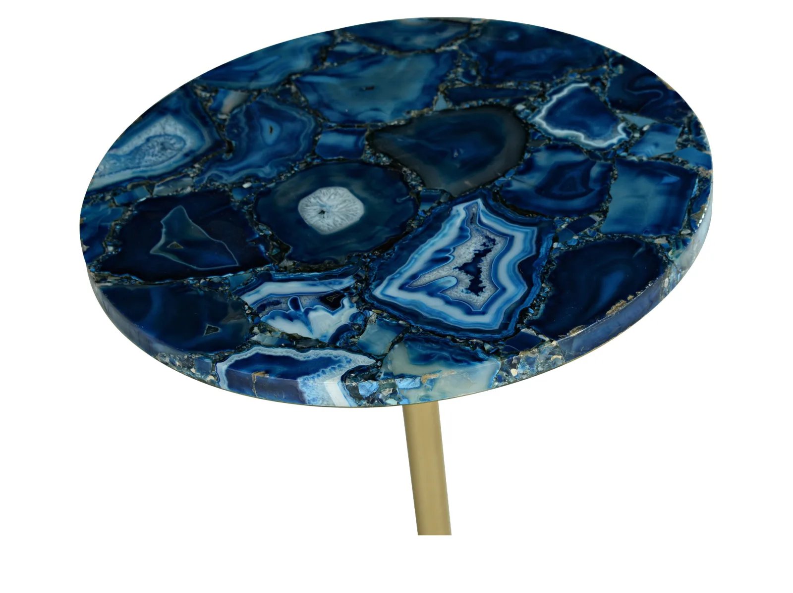 & Free ShippingA Side Table as blue as the Mediterranean Sea, the Oceanic Side Table features a beautiful blue agate stone top that works great as an Accent or End Table. This mixed media table has a gold-colored iron base that warms the presentation and accents the intricate detail on the top of the table. Agate is a popular gemstone and now you can add it as jewelry for your living room with the Oceanic Side Table.