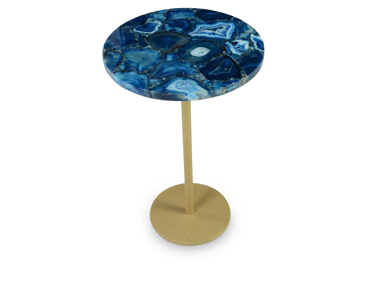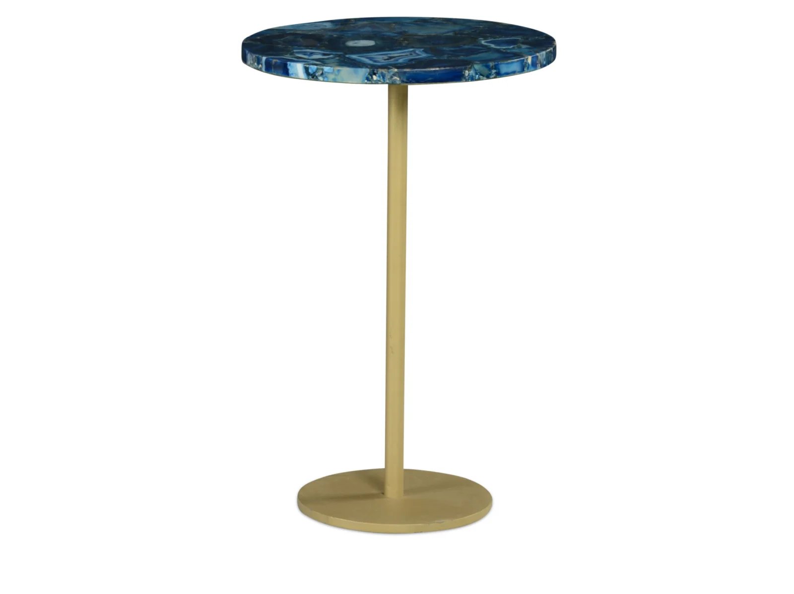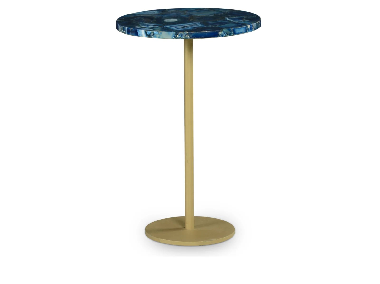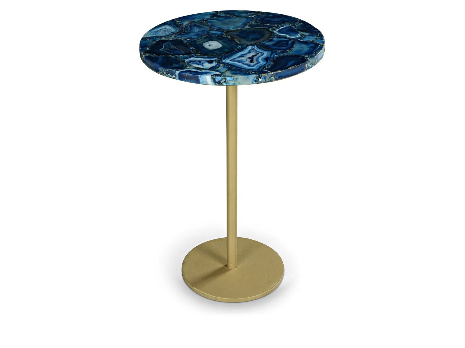 & Free ShippingA Side Table as blue as the Mediterranean Sea, the Oceanic Side Table features a beautiful blue agate stone top that works great as an Accent or End Table. This mixed media table has a gold-colored iron base that warms the presentation and accents the intricate detail on the top of the table. Agate is a popular gemstone and now you can add it as jewelry for your living room with the Oceanic Side Table.