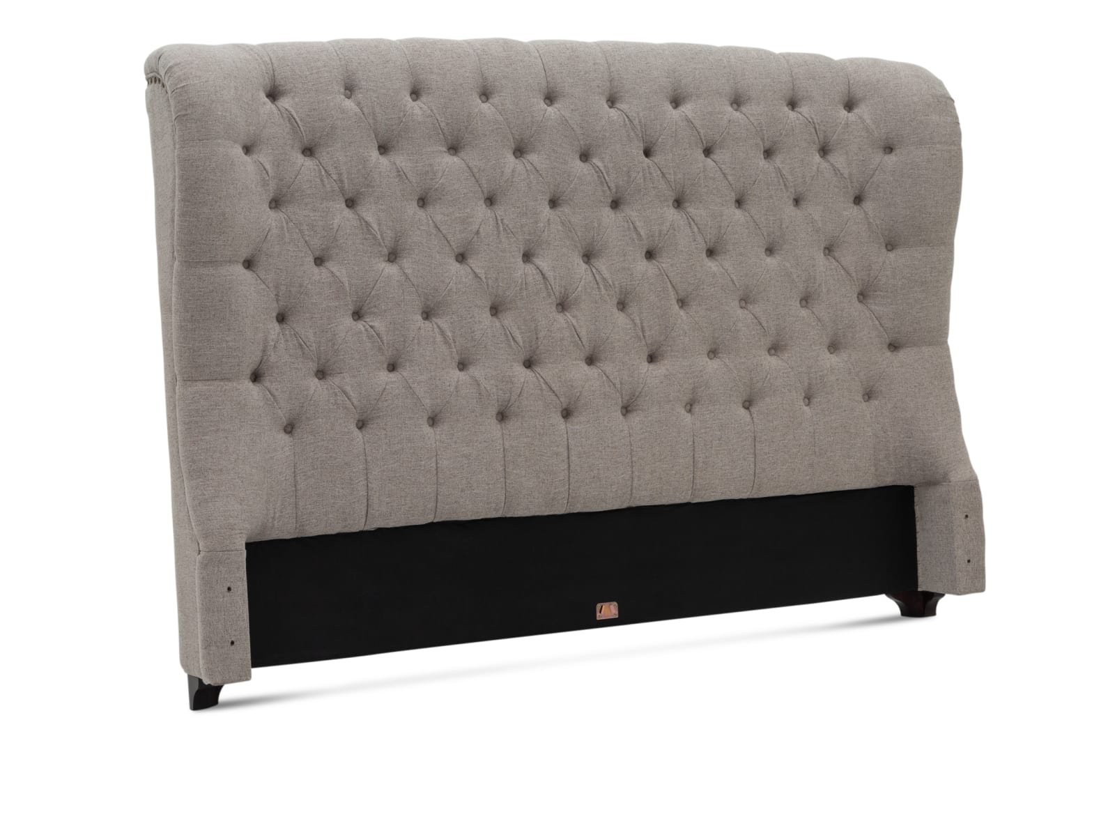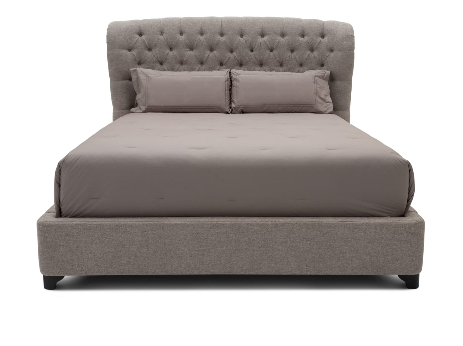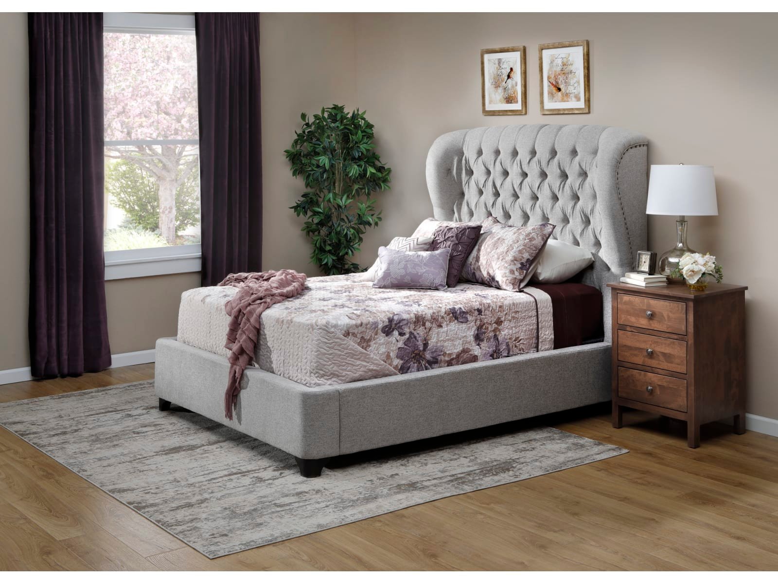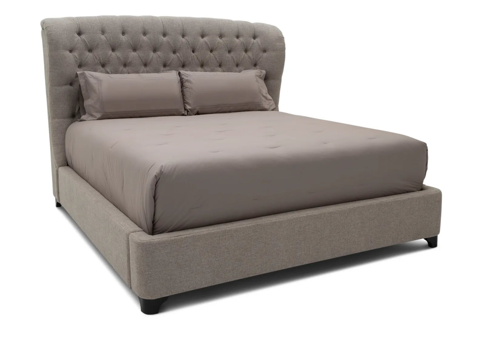 & Free ShippingThe Olympus Upholstered Bed is a beautiful blend of traditional charm and contemporary appeal. Resting atop a durable hardwood frame with stylish tapered bracket feet, this enchanting bed features an eye-catching rounded wing headboard, and it’s upholstered in a contemporary gray-colored fabric with hand-crafted button tufting for added texture and sophistication. Create the designer-approved bedroom you’ve always dreamed of with the Olympus Upholstered Bed.