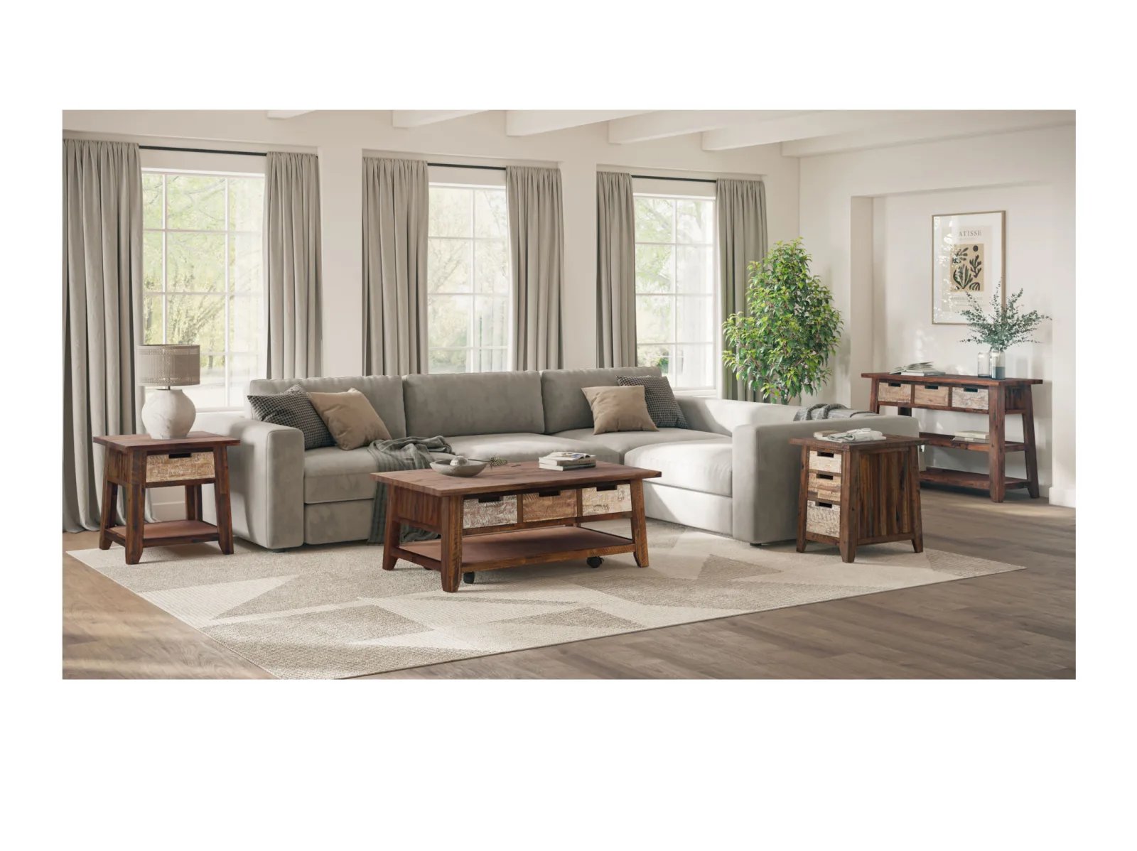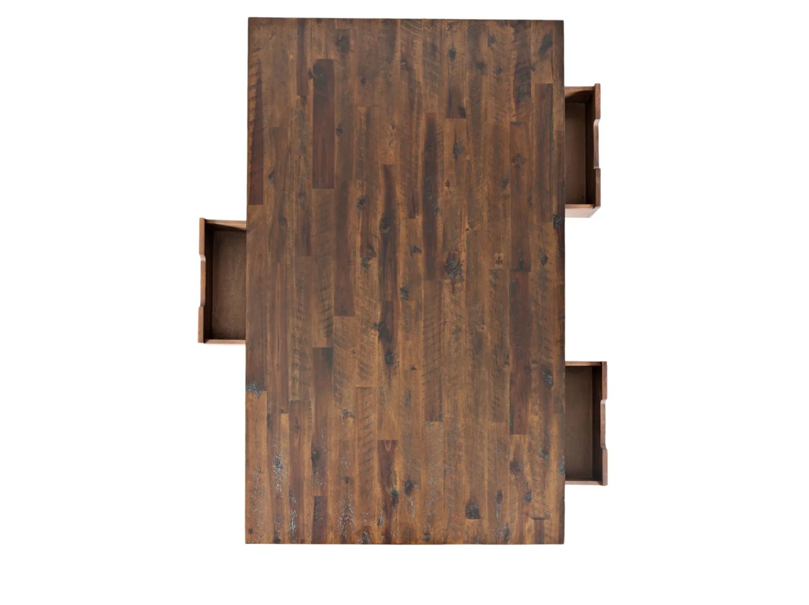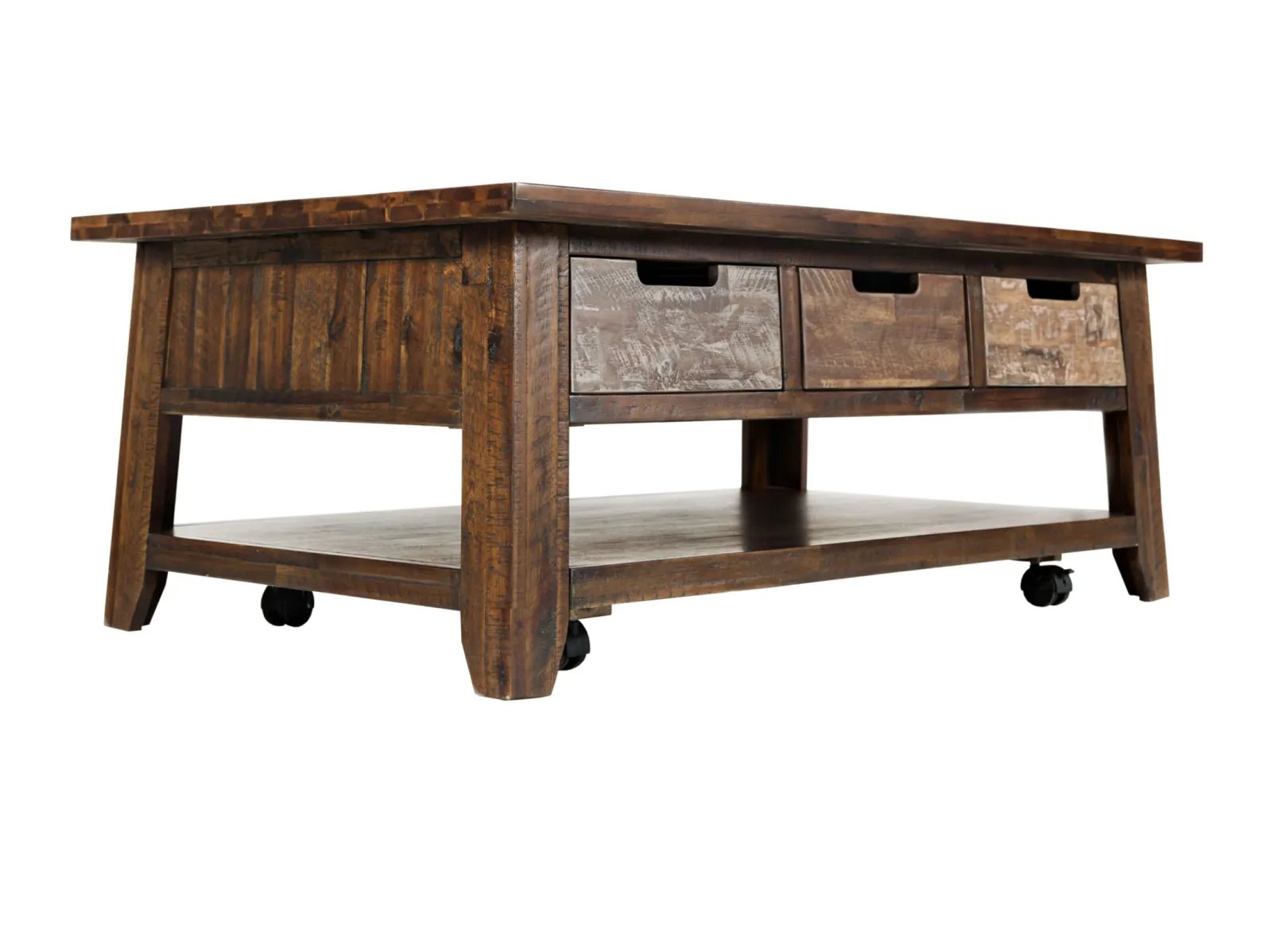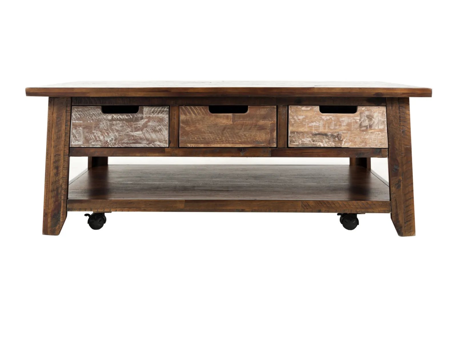 & Free ShippingVaried finish tones on the drawer fronts, overall distressing, and industrial casters pair with solid construction and outstanding value make Jofran’s Painted Canyon Collection an ideal add to any home. This coffee table features three drawers. Castered.