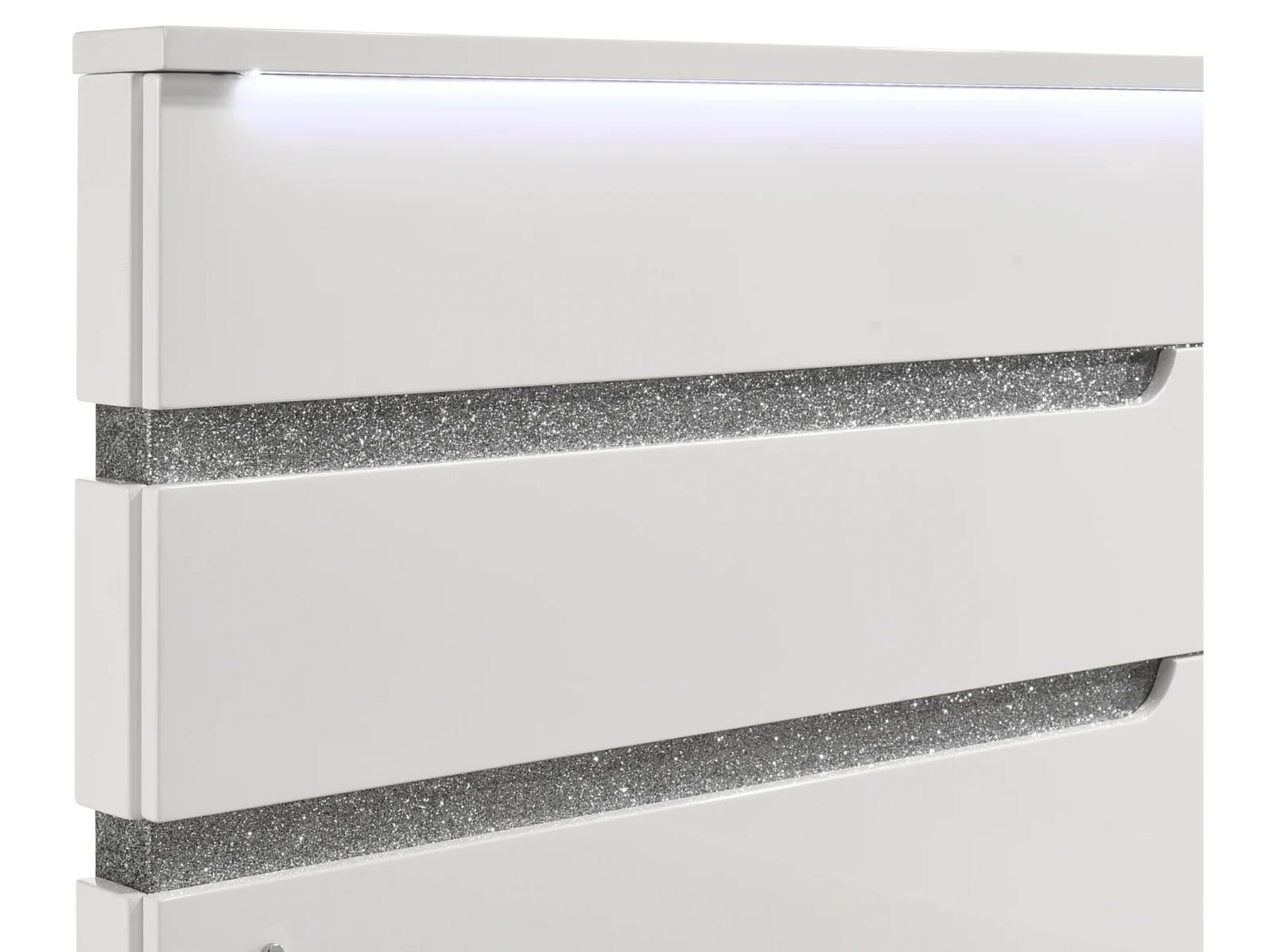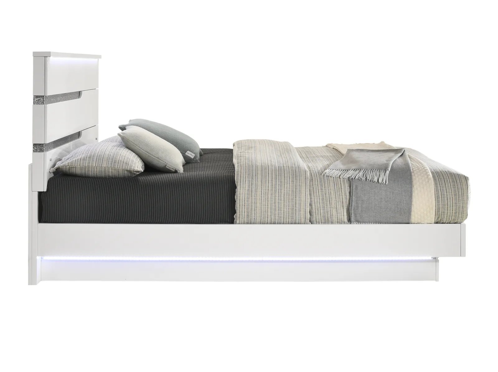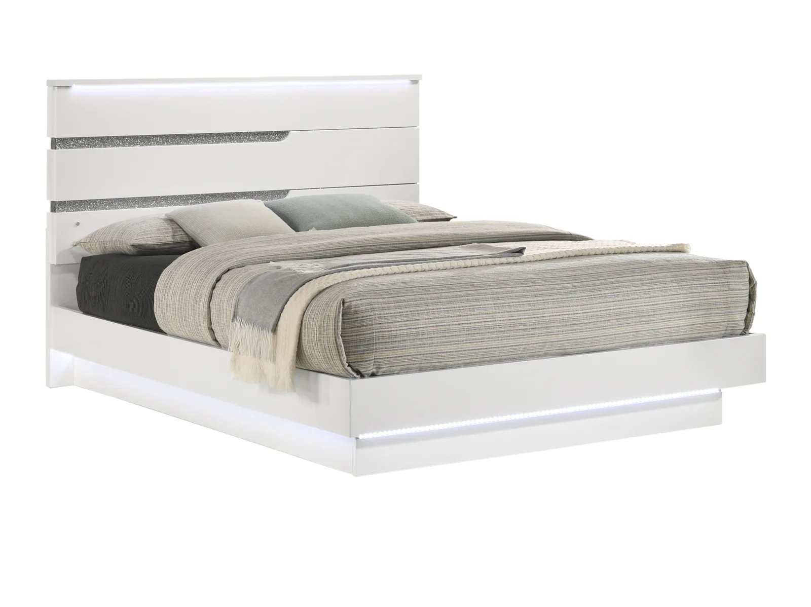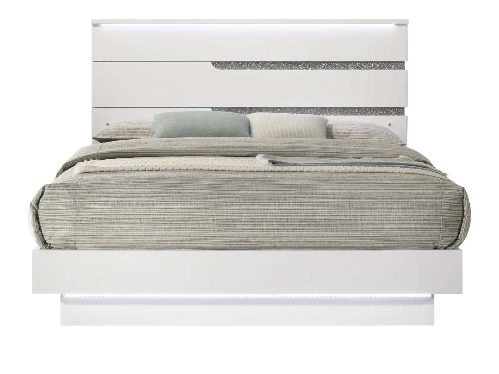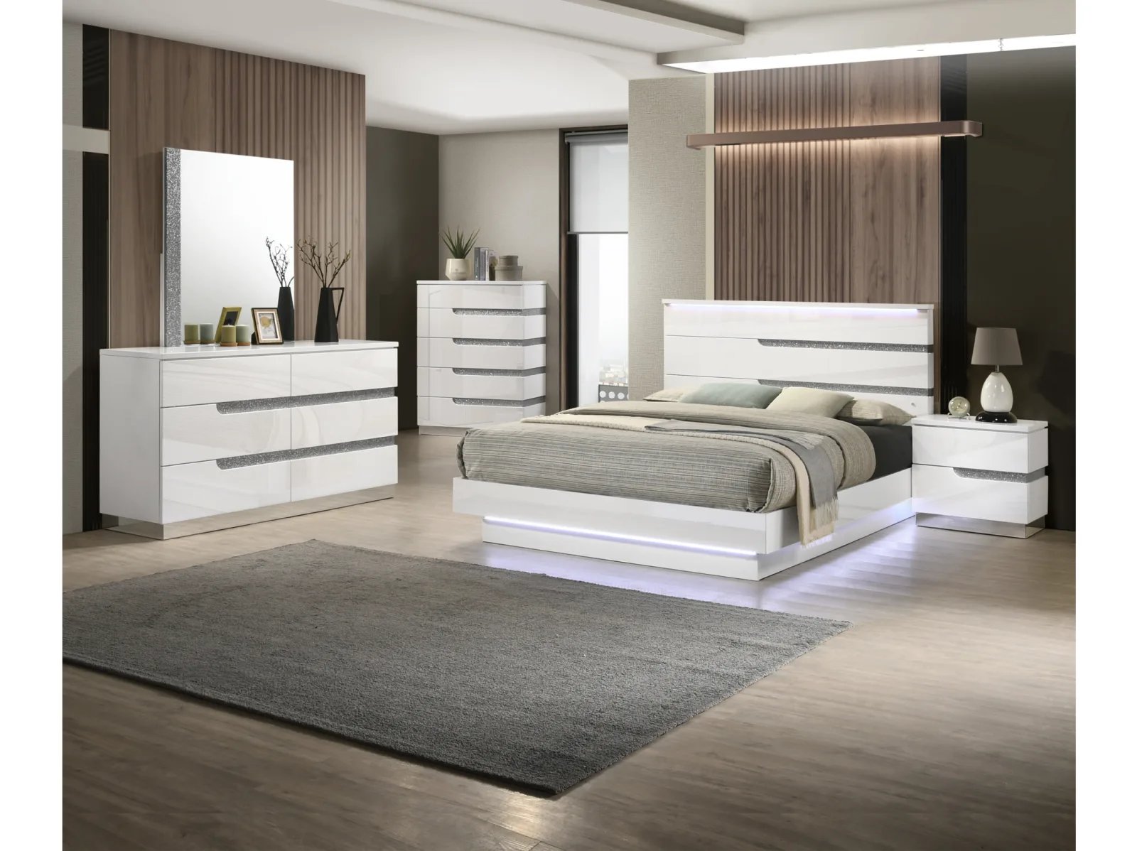 & Free ShippingThe Paparazzi Bedroom Collection is a stunning fusion of contemporary design and luxurious functionality. Its white gloss laminate water-resistant finish adds a sleek and modern touch while ensuring durability. The full extension drawer glides allow for effortless access and smooth operation, while the finished drawer interiors showcase attention to detail. The crushed crystal accents create a dazzling and glamorous effect, elevating the overall aesthetic. With LED lighted headboard, footboard, and rails with touch control, this collection creates a captivating ambiance and adds a touch of opulence to your bedroom. Experience the perfect blend of style and functionality with the Paparazzi Bedroom Collection and transform your space into a haven of modern luxury.