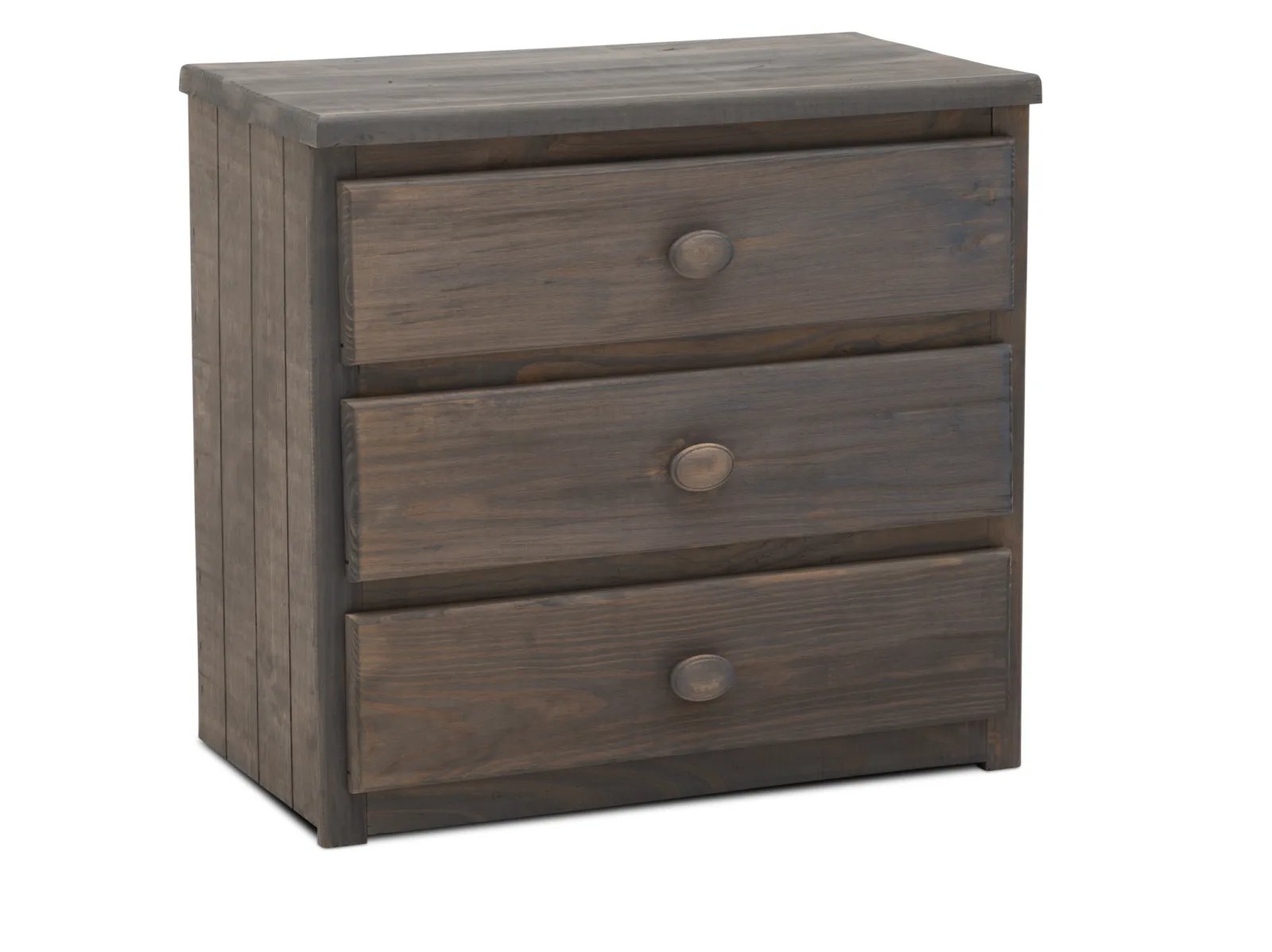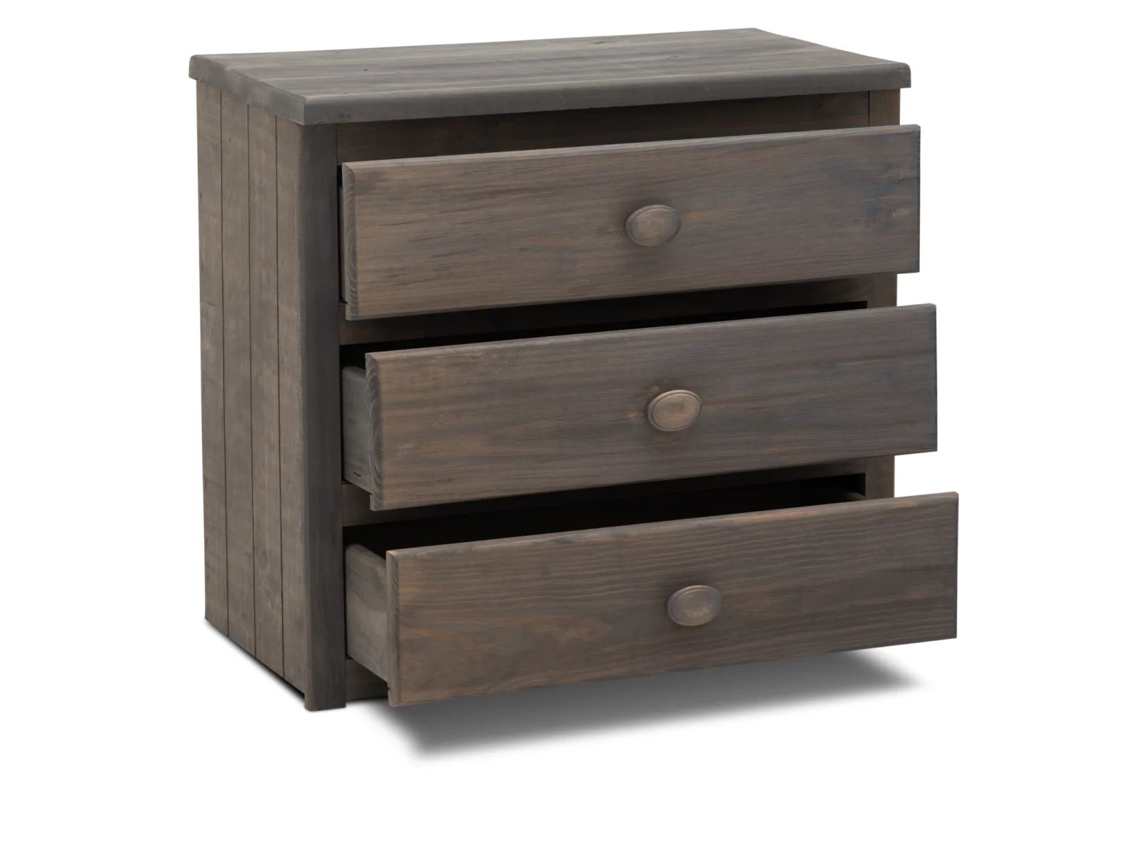 & Free ShippingYour child is going to love falling asleep beside the charming, homespun Picket Nightstand. Crafted from solid pine in a driftwood grey finish, this delightful nightstand showcases rustic planked detailing, and it features three roomy storage drawers outfitted with oversized wooden pull knobs for easy access to all of their bedside belongings. Take home the Picket Nightstand today.