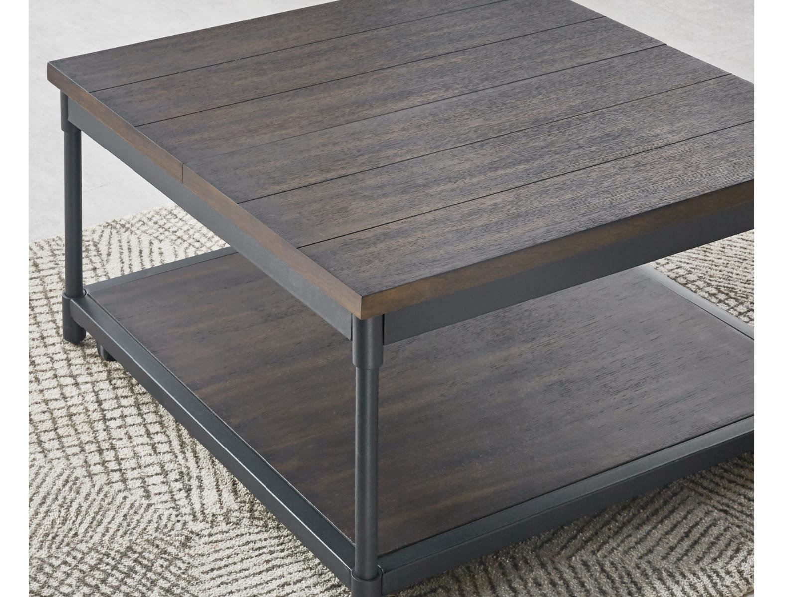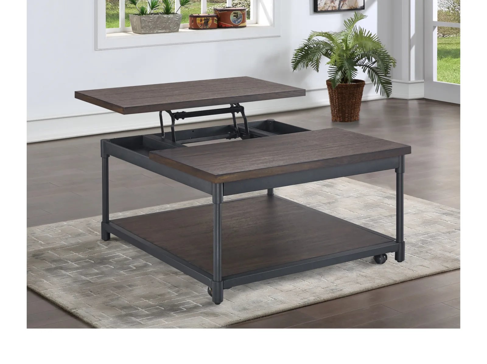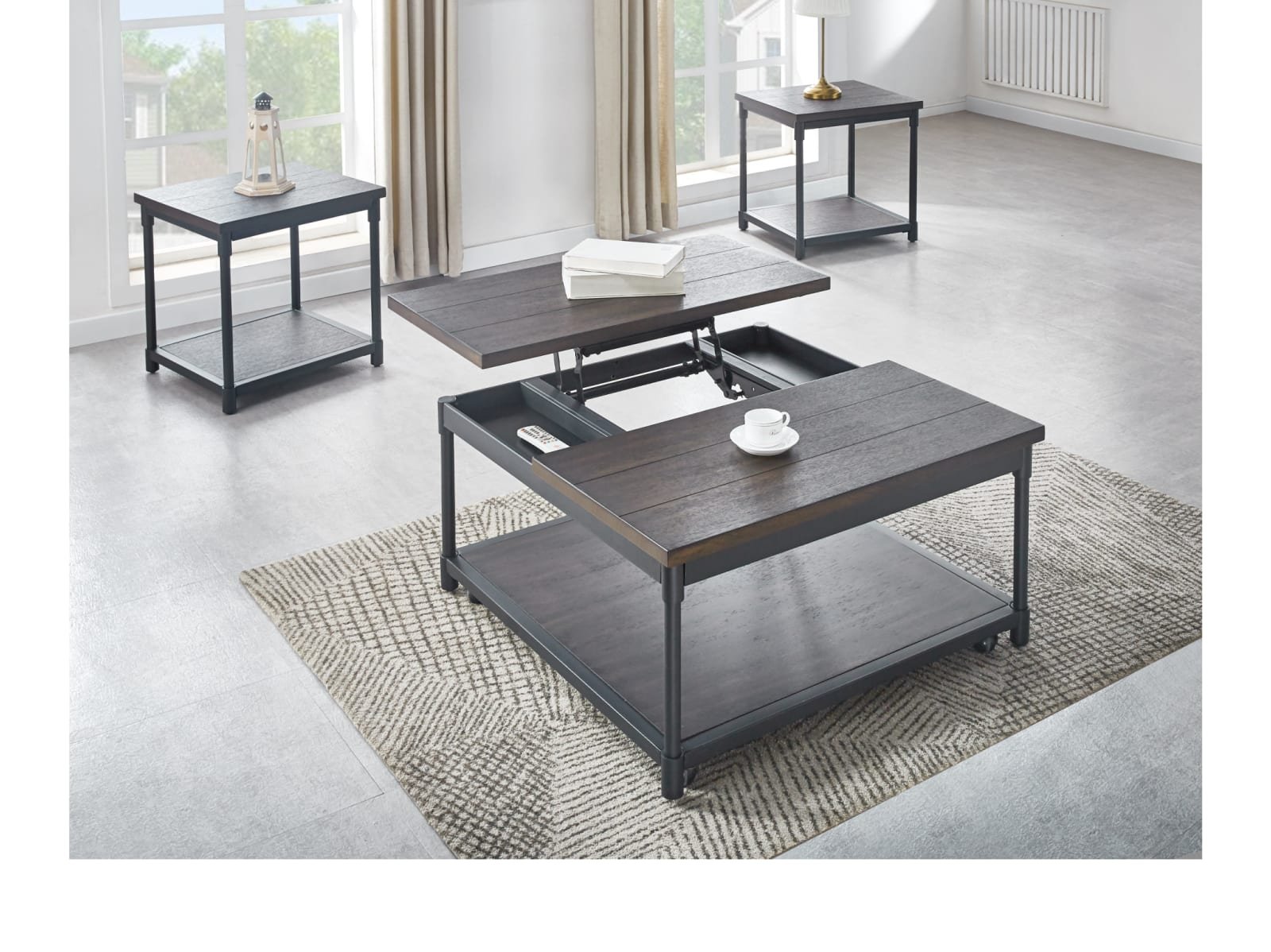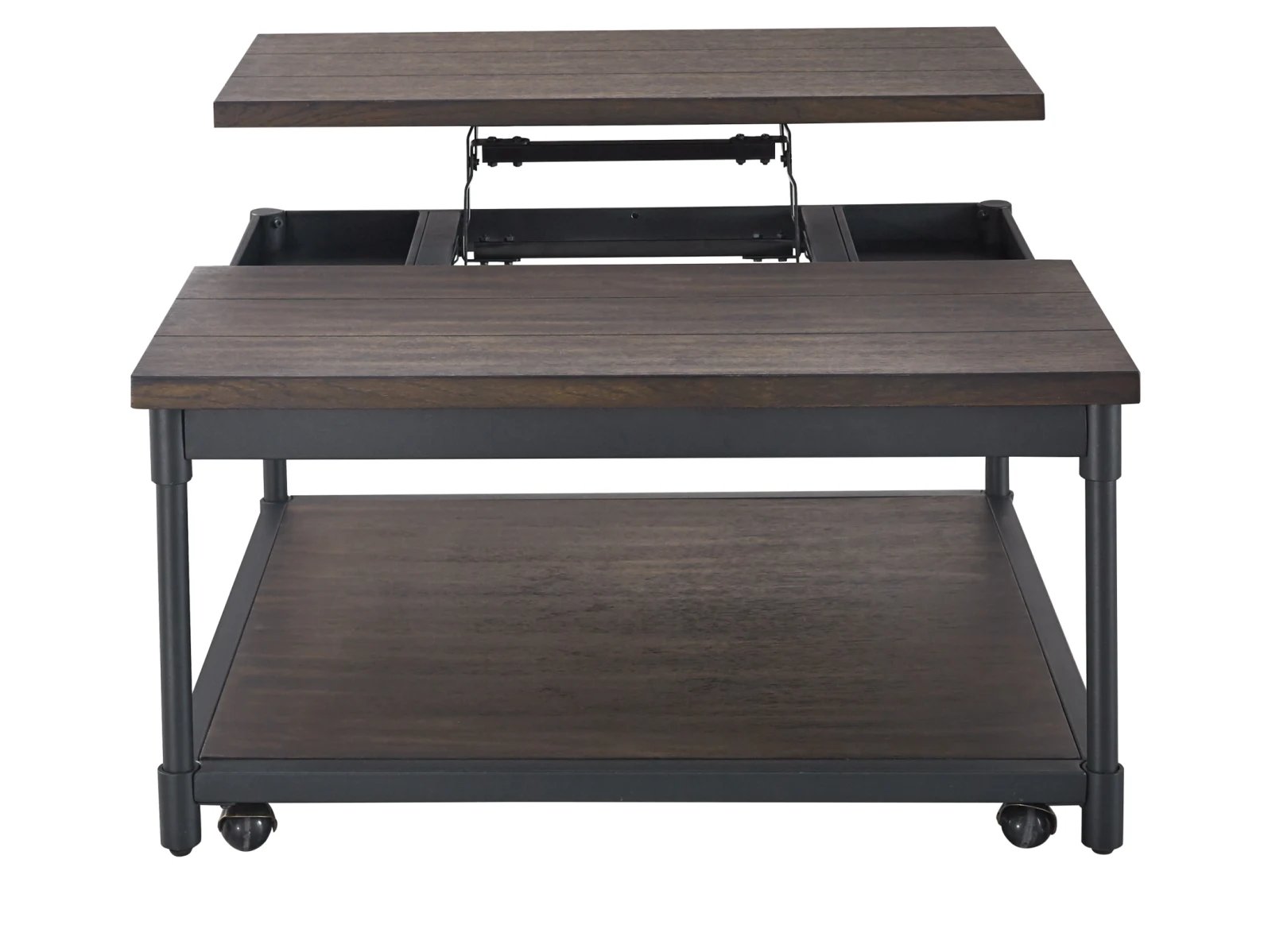 Add some function to your living room tables with this Plano Lift-Top set. Mixed-media construction blends with rustic design in a set of tables you would not even guess were this fun to use. The Lift-Top Coffee Table is great for work, school or dining right from your sofa! The Coffee Table is castered for great mobility with matching End Tables to complete the collection.