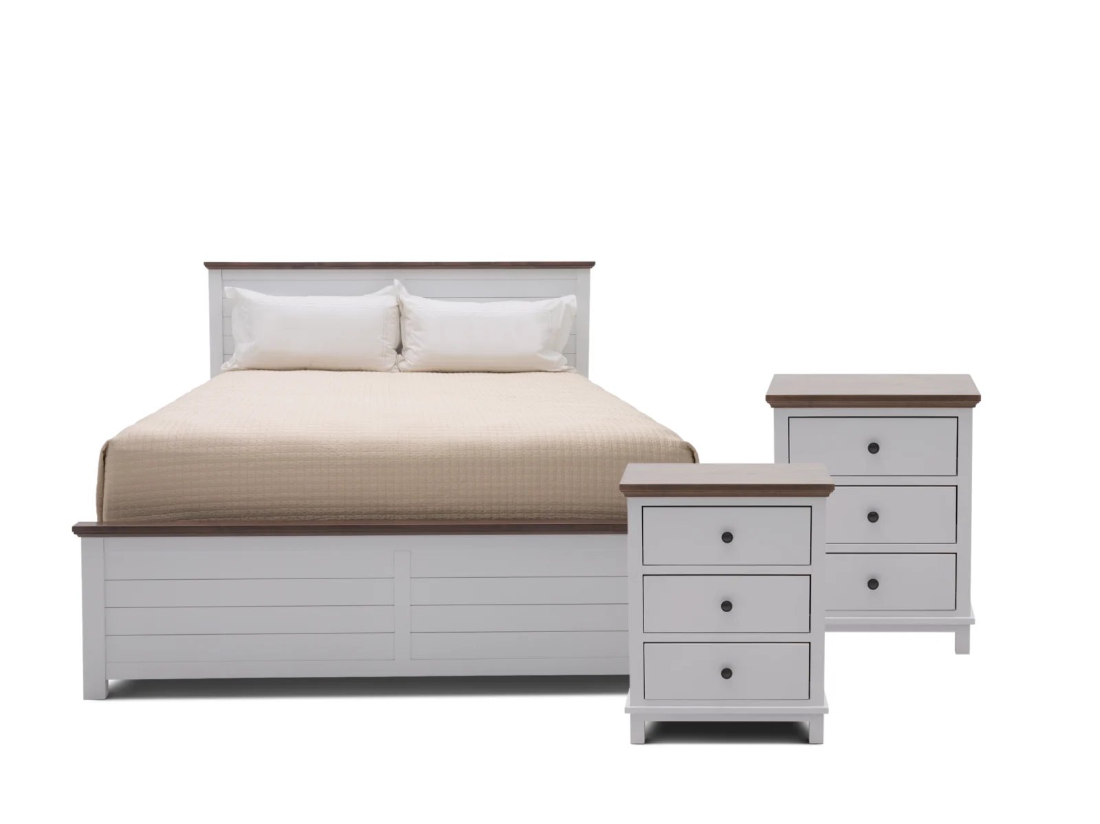 Perfect for those who love modern farmhouse and coastal styles, the Pleasant Hill Panel Bedroom Set delivers a simple-yet-sophisticated aesthetic full of refreshing colors and straight-lined silhouettes. This gorgeous set is crafted from solid alder and poplar wood, and each piece showcases a two-toned finish of driftwood brown over a painted white base. The headboard and footboard of the Pleasant Hill Panel Bed display horizontal shiplap detailing reminiscent of exterior siding to emphasize the set’s homespun influences, and the Pleasant Hill Dresser and Nightstand are outfitted with English dovetail drawers featuring smooth, full-extension drawer guides, painted drawer boxes, and decorative bronze pull knobs. Reimagine your bedroom with the serene and stylish Pleasant Hill Panel Bedroom Set.
