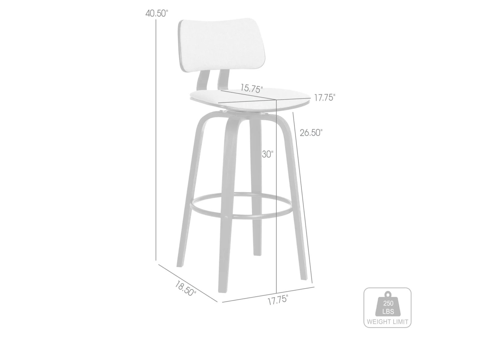 & Free ShippingGlam up your space with the flair of this Portis swivel bar or counter stool in faux leather and metal from Armen Living. Featuring a minimal and streamlined barrel back, our mid-century modern counter stool vouches for a sleek and inviting look. The plush cushioning at the back and the padded seat offers a comfortable seat while the open back allows for breathability. Uplifted with a chic metal frame, our stylish counter or barstool makes a powerful design statement. Upholstered in faux leather, it provides a comfortable stay at a high dining area, kitchen counter, or worktable. Faux leather does not crack easily and is stain resistant, does not fade easily and is also UV resistant. Counter or bar height stools that feature a swivel mechanism tend to be much more convenient for everyday use or when entertaining. The wonderful full 360-degree swivel function allows for maximum mobility. The smooth glide swivel function allows you to change directions with ease, making this your new favorite seat in your home.