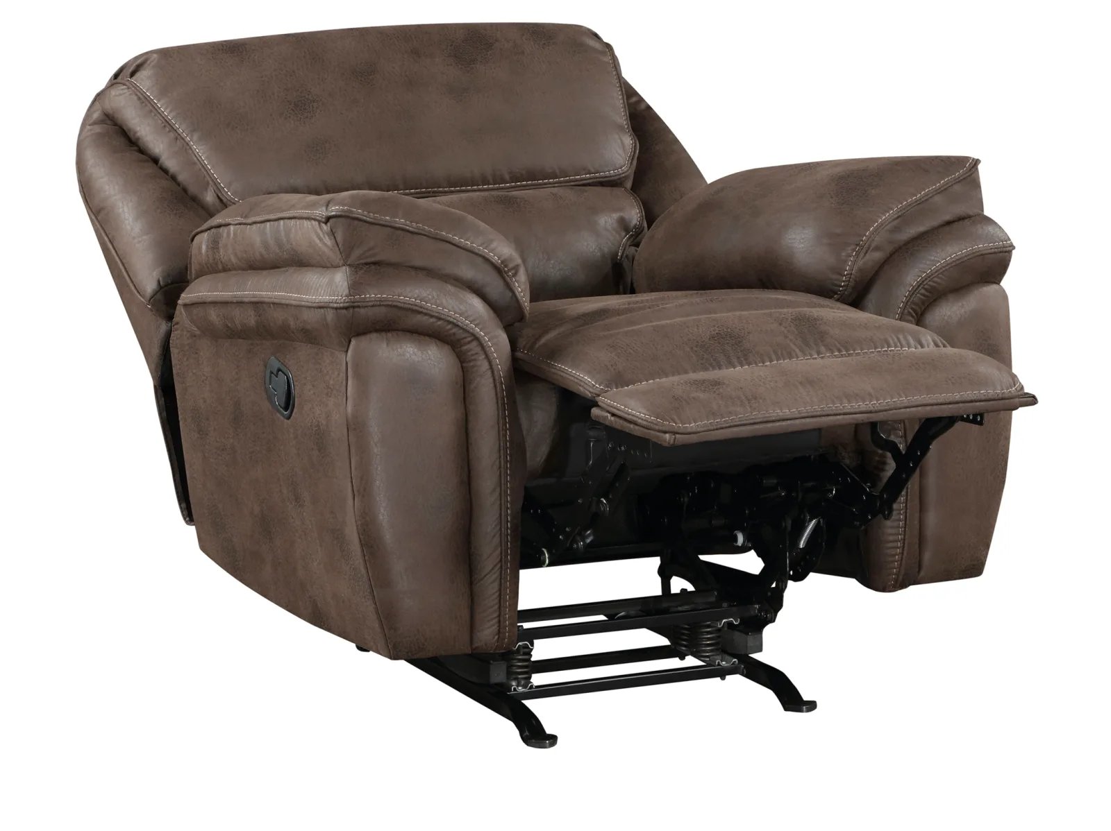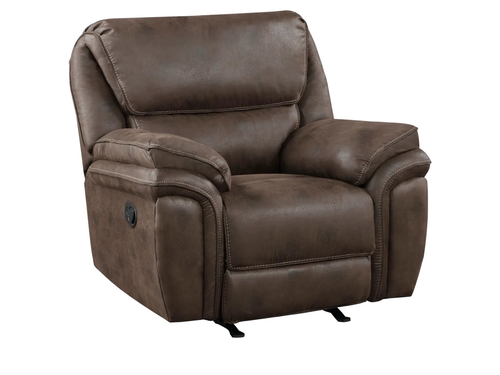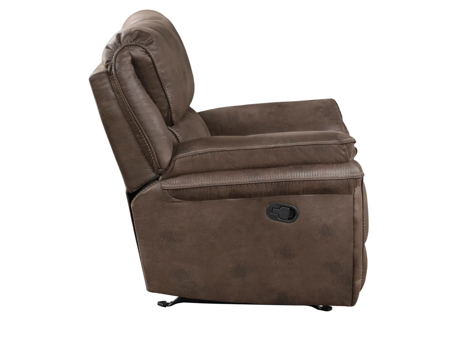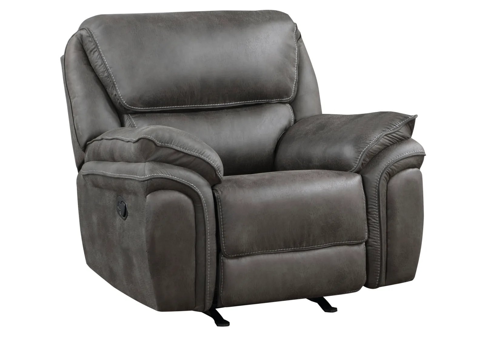 The plush modern design of the Portsen Collection provides a platform for relaxation whether watching a big game with your friends or settling in for a movie with the family. The contoured profile of the rocker reclining chair is covered in polished microfiber, providing smooth touch to your seated experience. With a pull of the side mounted tab the reclining mechanism is engaged easing the recliner into the prone position.