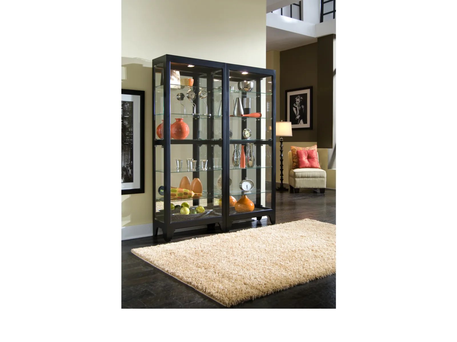Showcase your treasured collectibles in the timeless elegance of the Pulaski Accents 21218 Curio. Inspired by fashionable 19th-century designs, this curio boasts rope-twist embossing, beveled glass, and a rich Edwardian finish that emulates fine traditional wood finishing. Its tall and wide yet space-conscious design fits seamlessly into any room, while the mirrored back and halogen lighting beautifully illuminate your items. Adjustable glass shelves and adjustable glides offer customizable display options, making this curio the perfect blend of style and functionality.