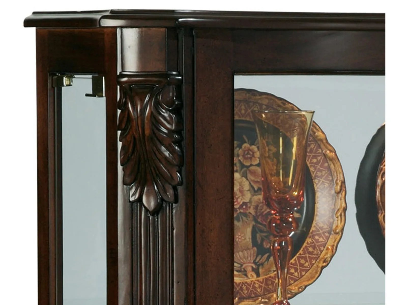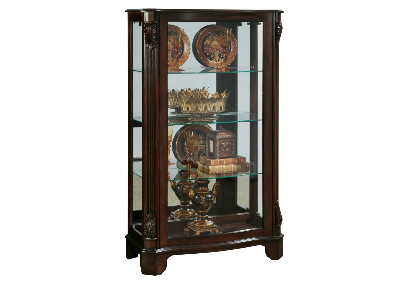 & Free ShippingShowcase your cherished treasures in the timeless Pulaski Accents 21429 Curio! This display cabinet exudes traditional charm with its rich, deep cherry finish, acanthus leaf accents, and elegant reeded posts. The gently curved shaped front adds a touch of sophistication, while its modest height allows you to personalize your display with art or a mirror above. A perfect blend of style and functionality for any space.