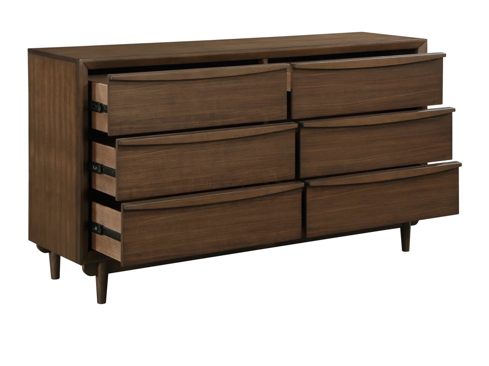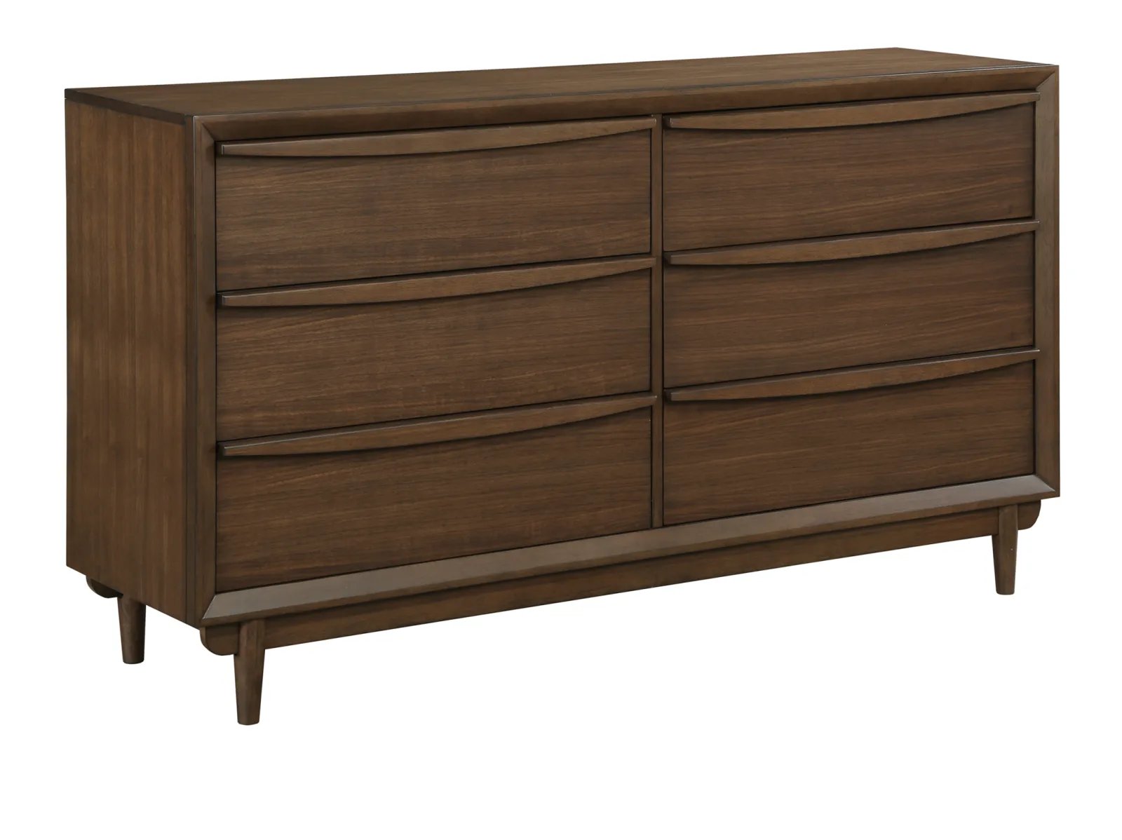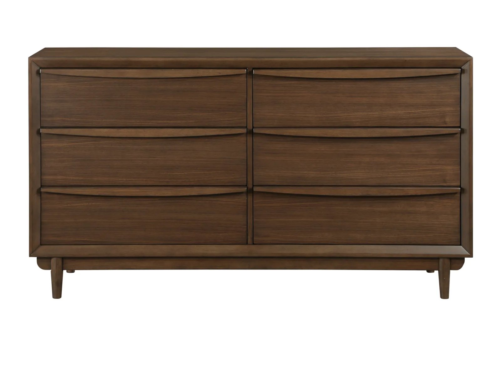 & Free ShippingIn a new take on Mid-Century Modern-inspired design, the Pym Collection lends its deceptively understated bold look and creates an aesthetic that is both artful and timeless. A walnut finish is utilized over walnut veneer to solidify the classic style. The dresser features wood drawer pulls that fully span the face of the drawers; their presence encompassed in the overall design of the piece.