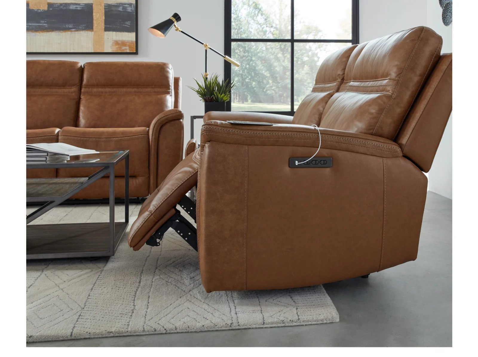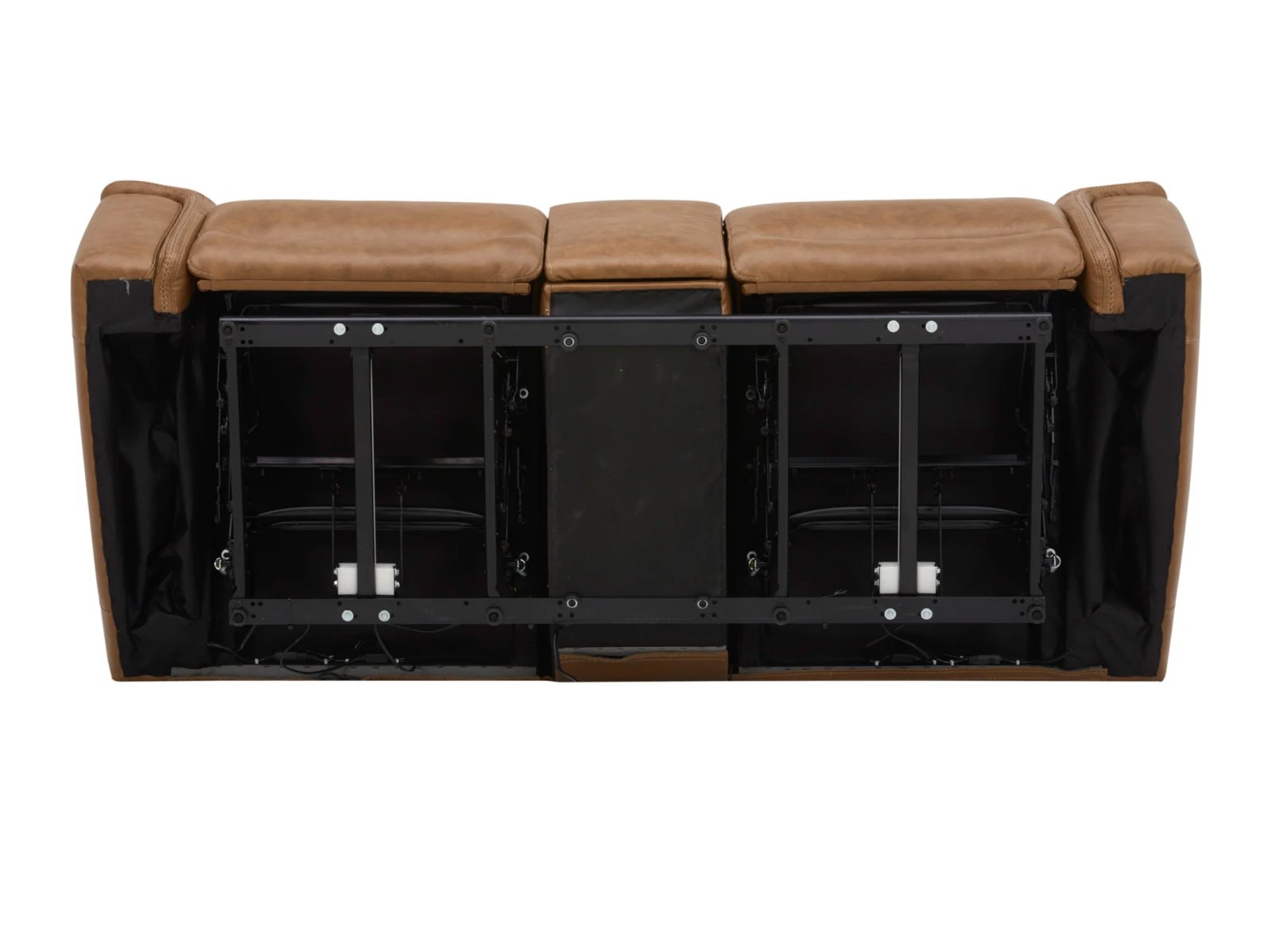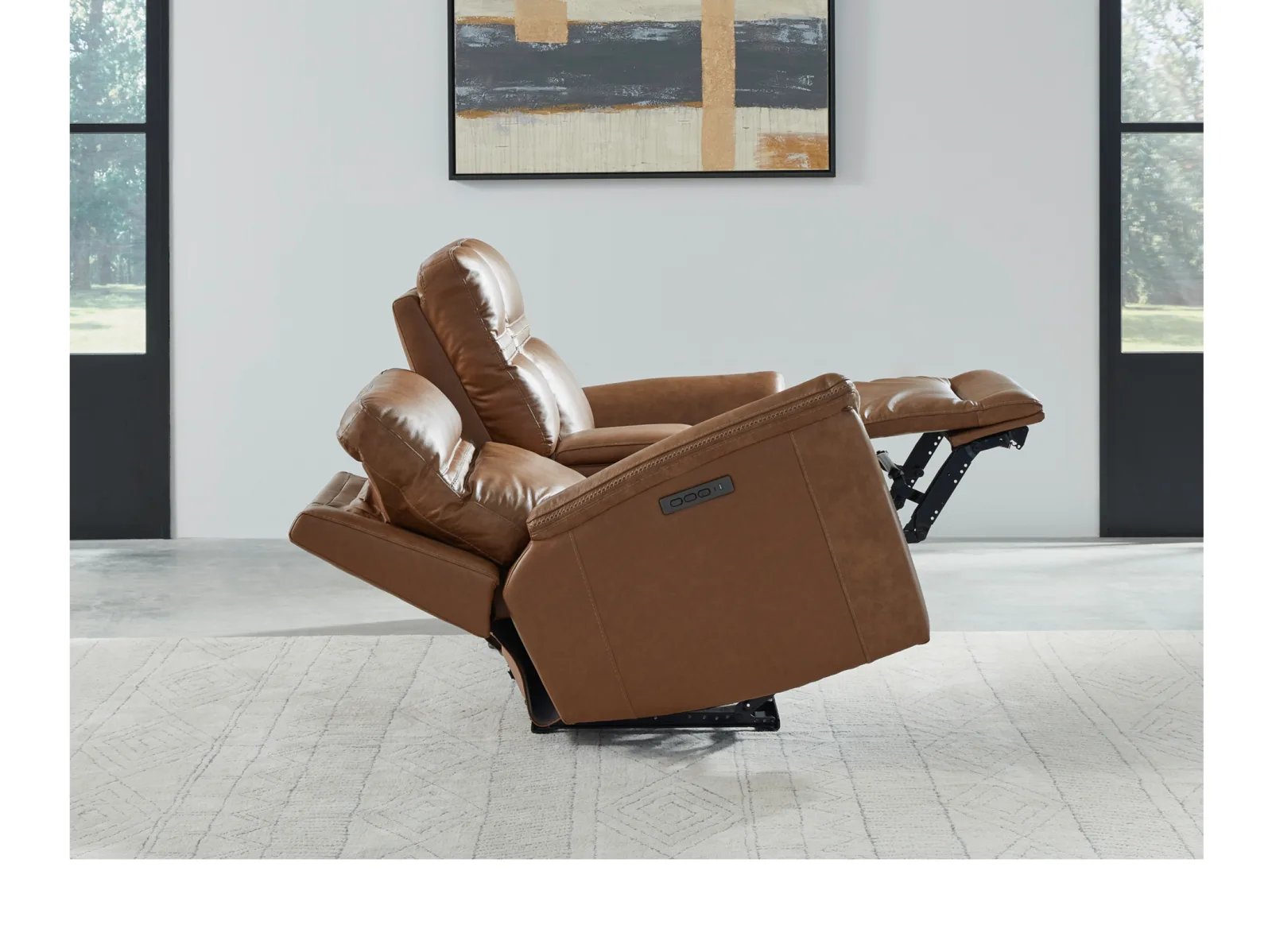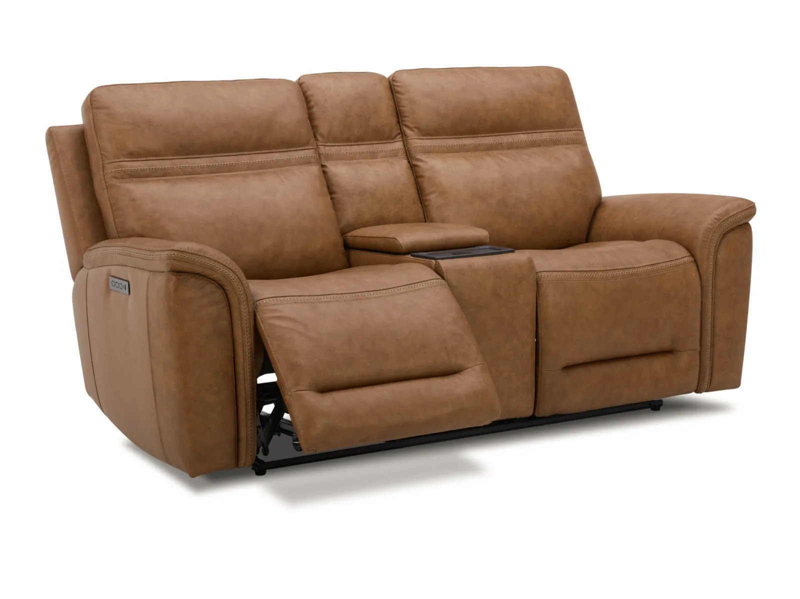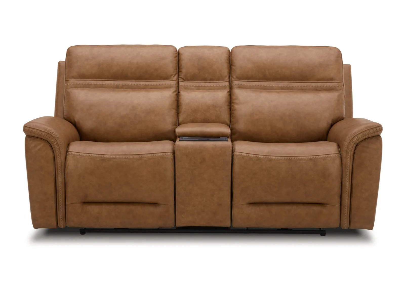 The Quarry Leather Power Reclining Console Loveseat is infused with emotion! Crafted with Solid Hardwood, Plywood and Laminated Veneer Lumber, this sofa features Semi-Aniline Top Grain Leather with Match in your choice of slate or copper. PVC Vinyl is matched to the leather and used on the outside backs and sides, meaning everywhere your body touches is real genuine leather! The Quarry loveseat offers triple power Zero Gravity recline with a power articulating headrest and power lumbar support for optimal comfort. The zero gravity recliner mechanism has shown to have immense health benefits including better blood flow and helping those struggling with posture issues. In zero gravity, the neutral spine position can strengthen back muscles, decompress the spine, and reduce tension or discomfort in the neck and shoulders, resulting in enormous benefits on posture. An added layer of memory foam is added to the bucket seats, meaning this loveseat is not only a dream to lounge in, but is built to last. The neutral leather tones are the perfect lifestyle leather with their ultra-matte finish and soft two-tone savage. Matching single and cross stitching is sure to catch the eye. The full pad-over chaise ensures head-to-toe support. The high panel back with a decorative trim along with the nested padded arms add for a shapely clean appearance. The console has a flip open top with deep interior storage. An AC outlet and USB charging port is located within. Additional USB-A and USB-C charging ports or located on each end of the loveseat. On top of the console is a wireless charging pad for added convenience. Wow your family and friends by pushing the power button on top of the console and watch the bottom section open like magic to reveal two hidden, stainless steel, removable and washable cupholders! Relax in livable luxury with the Quarry Leather Power Reclining Console Loveseat.