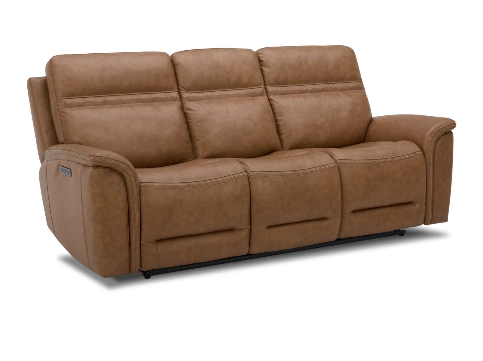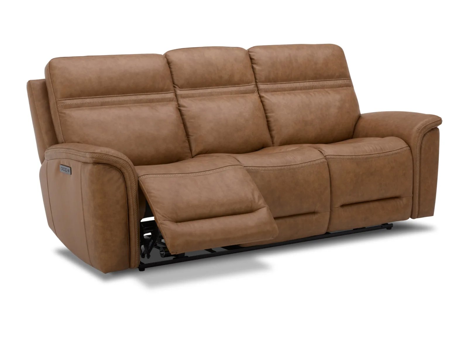 The Quarry Leather Power Reclining Sofa is infused with emotion! Crafted with Solid Hardwood, Plywood and Laminated Veneer Lumber, this sofa features Semi-Aniline Top Grain Leather with Match in your choice of slate or copper. PVC Vinyl is matched to the leather and used on the outside backs and sides, meaning everywhere your body touches is real genuine leather! The Quarry sofa offers triple power Zero Gravity recline with a power articulating headrest and power lumbar support for optimal comfort. The zero gravity recliner mechanism has shown to have immense health benefits including better blood flow and helping those struggling with posture issues. In zero gravity, the neutral spine position can strengthen back muscles, decompress the spine, and reduce tension or discomfort in the neck and shoulders, resulting in enormous benefits on posture. An added layer of memory foam is added to the bucket seats, meaning this sofa is not only a dream to lounge in, but is built to last. The full pad-over chaise ensures head-to-toe support. The neutral leather tones are the perfect lifestyle leather with their ultra-matte finish and soft two-tone savage. Matching single and cross stitching is sure to catch the eye. The high panel back with a decorative trim along with the nested padded arms add for a shapely clean appearance. With today’s technology in mind, each end of the sofa offers a USB-A and USB-C charging port. Relax in livable luxury with the Quarry Leather Power Reclining Sofa.