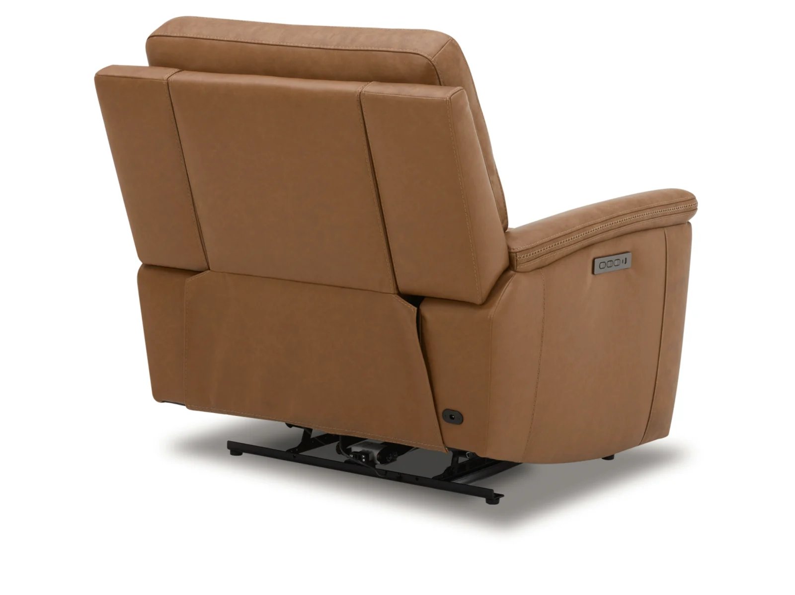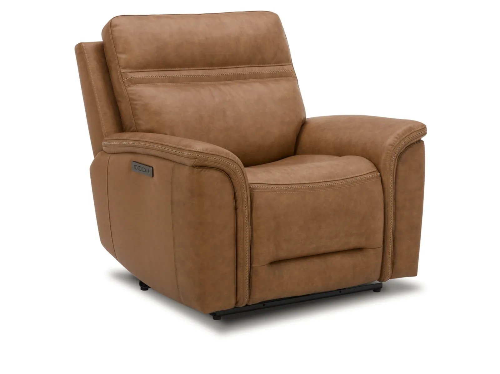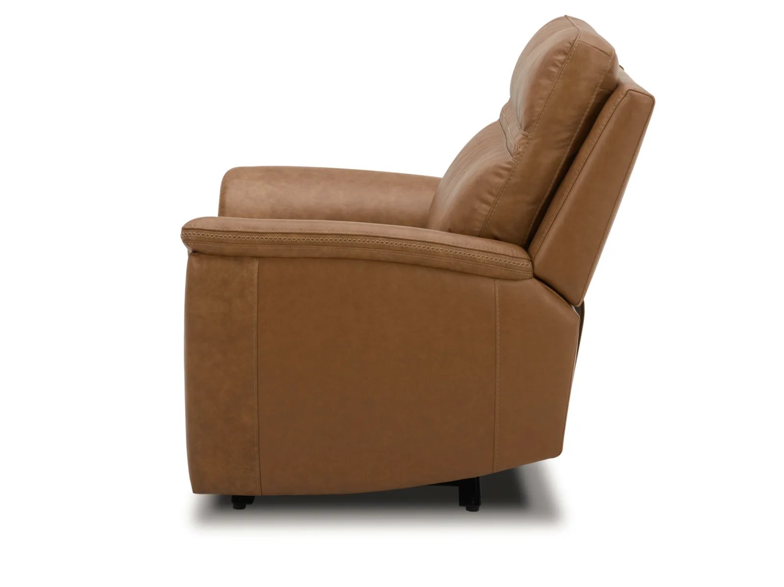 The Quarry Leather Power Swivel Recliner is infused with emotion! Crafted with Solid Hardwood, Plywood and Laminated Veneer Lumber, this sofa features Semi-Aniline Top Grain Leather with Match in your choice of slate or copper. PVC Vinyl is matched to the leather and used on the outside backs and sides, meaning everywhere your body touches is real genuine leather! The Quarry recliner offers triple power recline with a power articulating headrest and power lumbar support for optimal comfort. An added layer of memory foam is added to the bucket seats, meaning this recliner is not only a dream to lounge in, but is built to last. The full pad-over chaise ensures head-to-toe support. The neutral leather tones are the perfect lifestyle leather with their ultra-matte finish and soft two-tone savage. Matching single and cross stitching is sure to catch the eye. The high panel back with a decorative trim along with the nested padded arms add for a shapely clean appearance. With today’s technology in mind, a USB-A and USB-C port is located on the side of the recliner. The swivel glide recliner base allows you to stay engaged in conversations around the room, without having to strain your neck or leave your seat. A built-in stop mechanism is used to protect the wiring during swivel. Relax in livable luxury with the Quarry Leather Power Swivel Recliner.