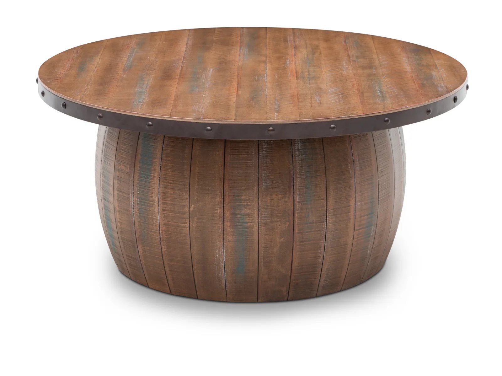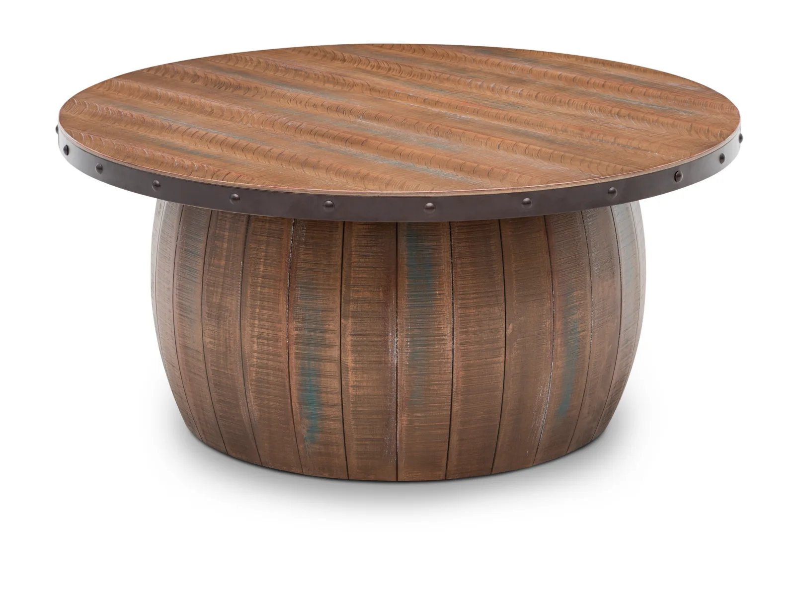 & Free ShippingIntroducing the tasteful Rancho Viejo Round Coffee Table, a refreshing take on a contemporary piece with rustic influences. This Rancho Viejo table boasts amazing structural integrity thanks to its barrel-shaped pedestal wood base and sleek table top shape. And, it also features a black metal band with nailhead trim detail as the perfect contrast to its rich wood profile. Make your living space a conversation starter with the Rancho Viejo Coffee Table!