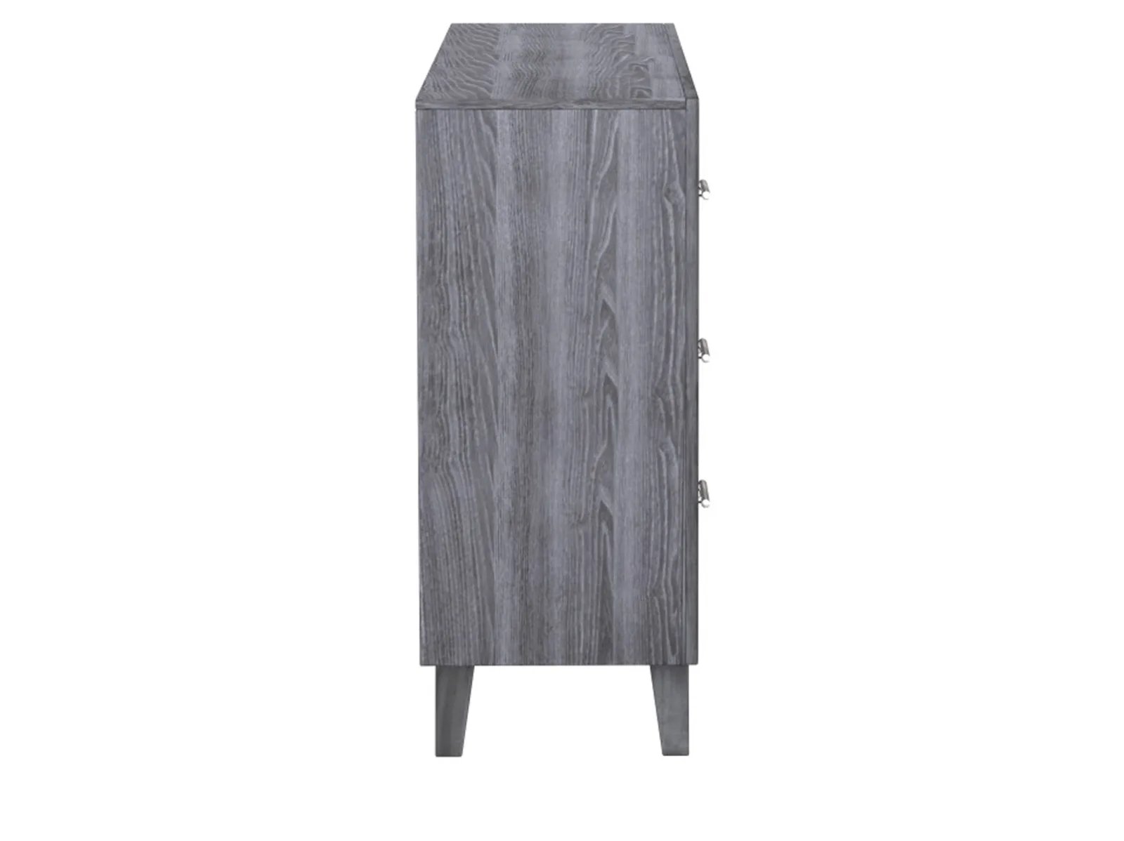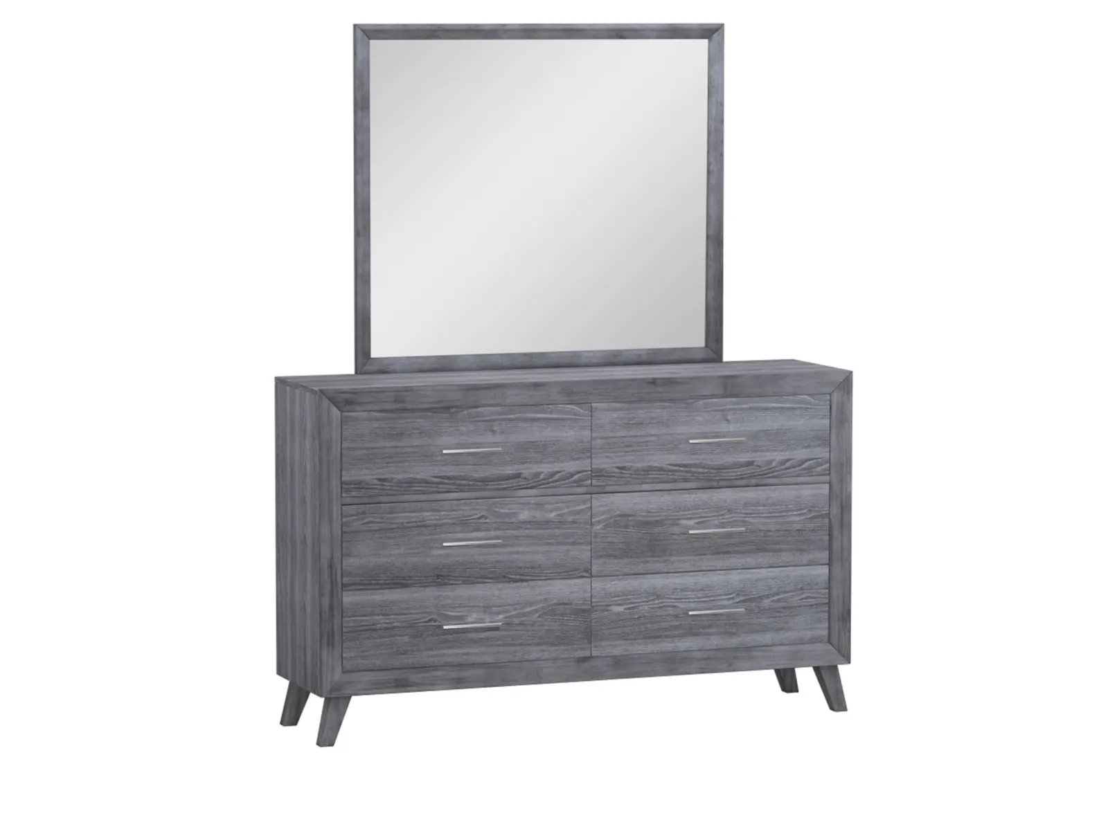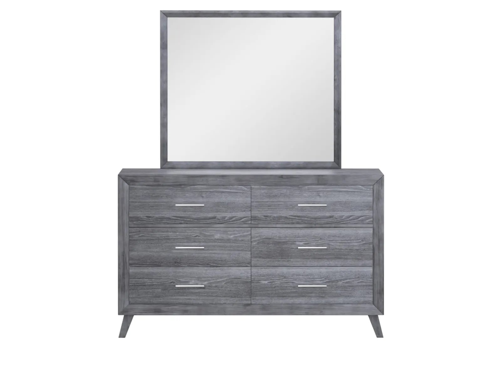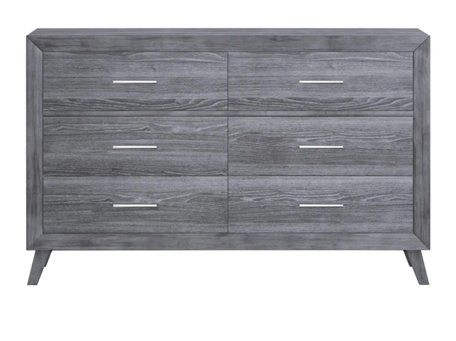 & Free ShippingContemporary minimalism at its best, this dresser is crafted from hardwood solids with scratch-resistant melamine for easy care. Well-defined shapes cut a crisp silhouetted underscored by angled A-line legs. Silver-toned bar drawer pulls shine against the warm gray tones for understated chic. Dress it up glam or dress it down rustic, this dresser is a versatile style you’ll make your own.