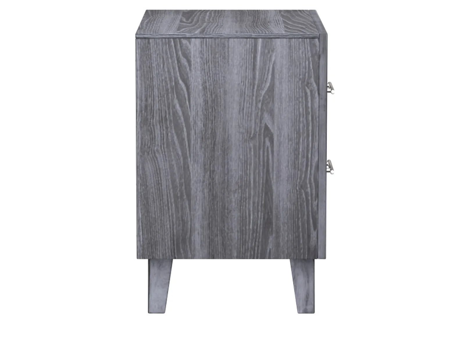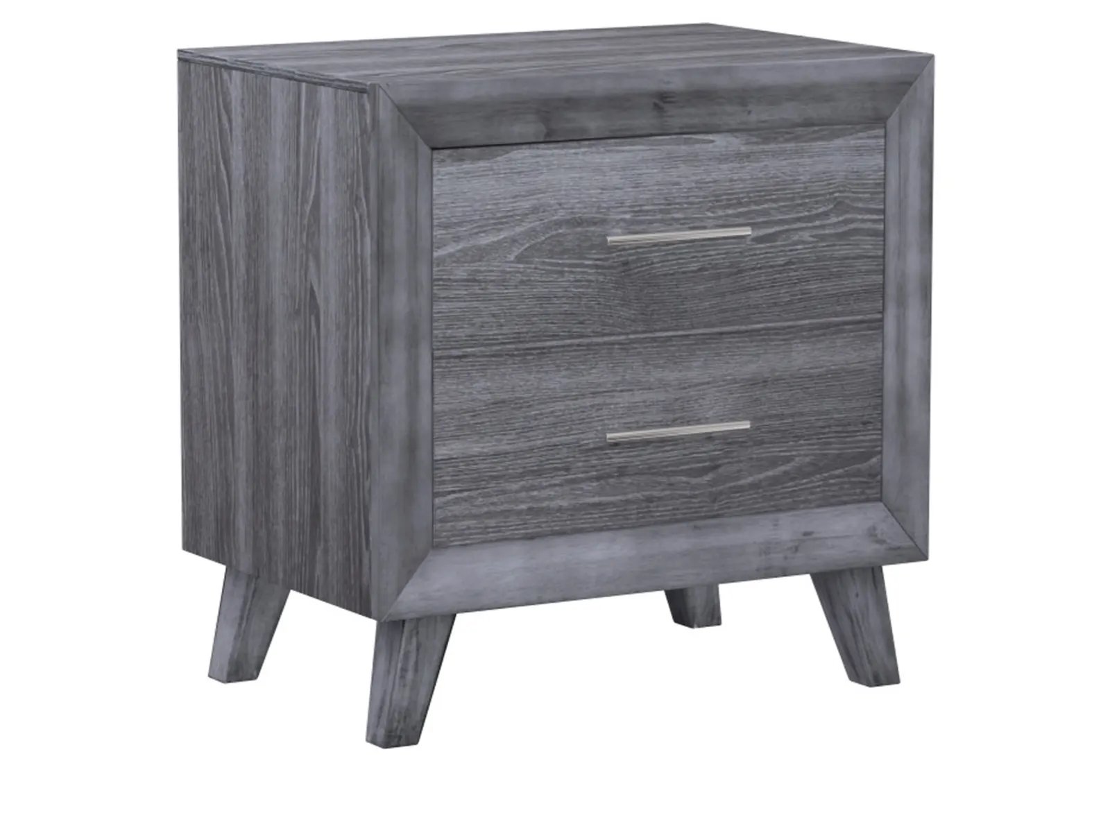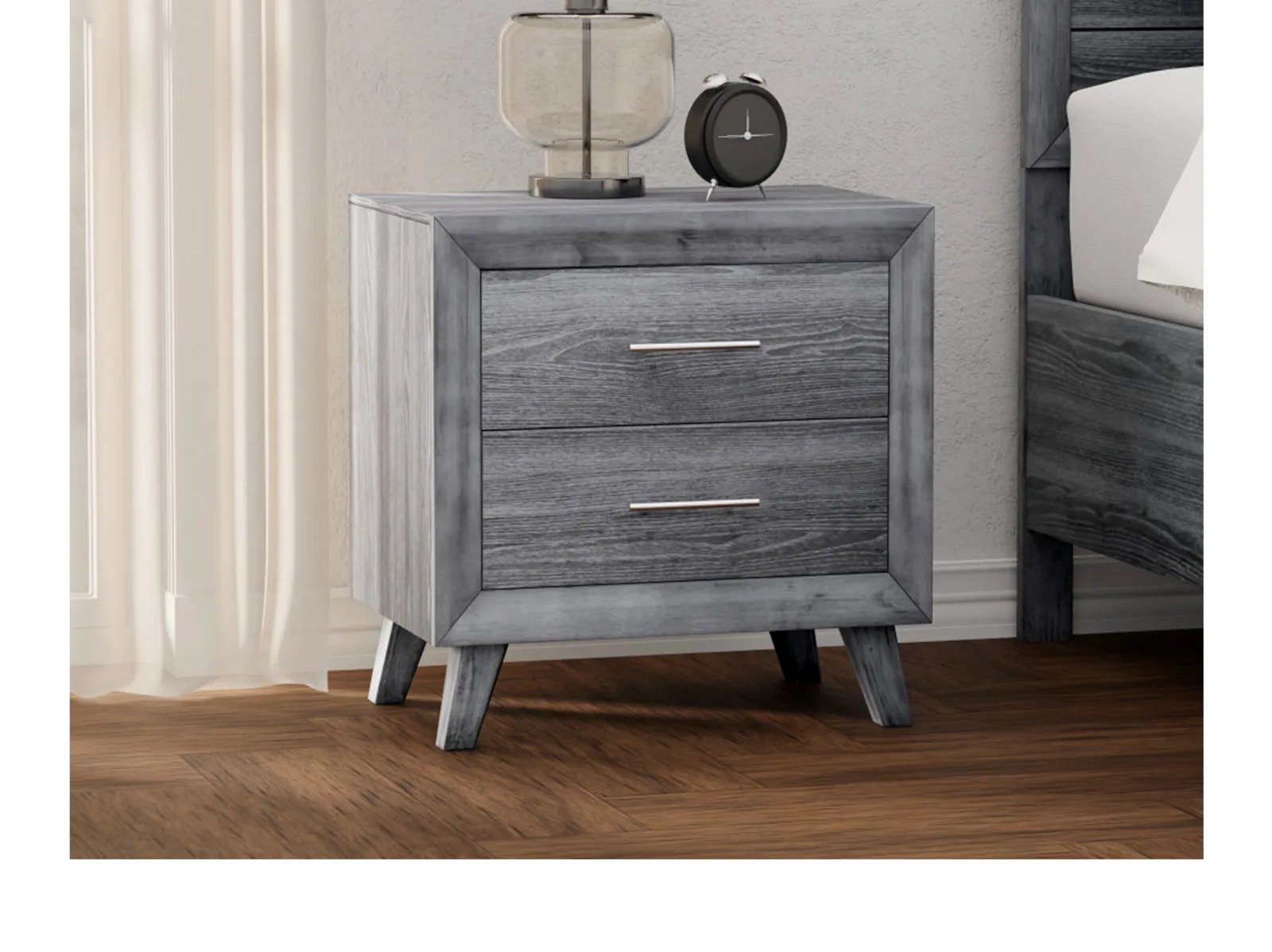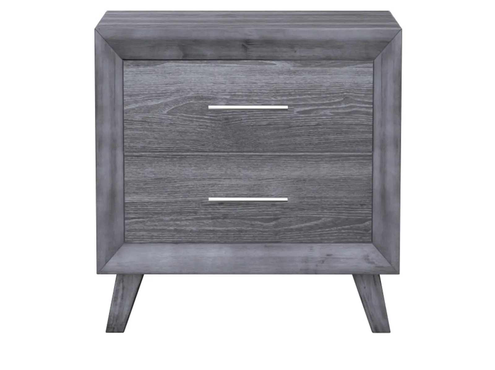 & Free ShippingContemporary minimalism at its best, this nightstand is crafted from hardwood solids with scratch-resistant melamine for easy care. Well-defined shapes cut a crisp silhouetted underscored by angled A-line legs. Silver-toned bar drawer pulls shine against the warm gray tones for understated chic. Dress it up glam or dress it down rustic, this nightstand is a versatile style you’ll make your own.