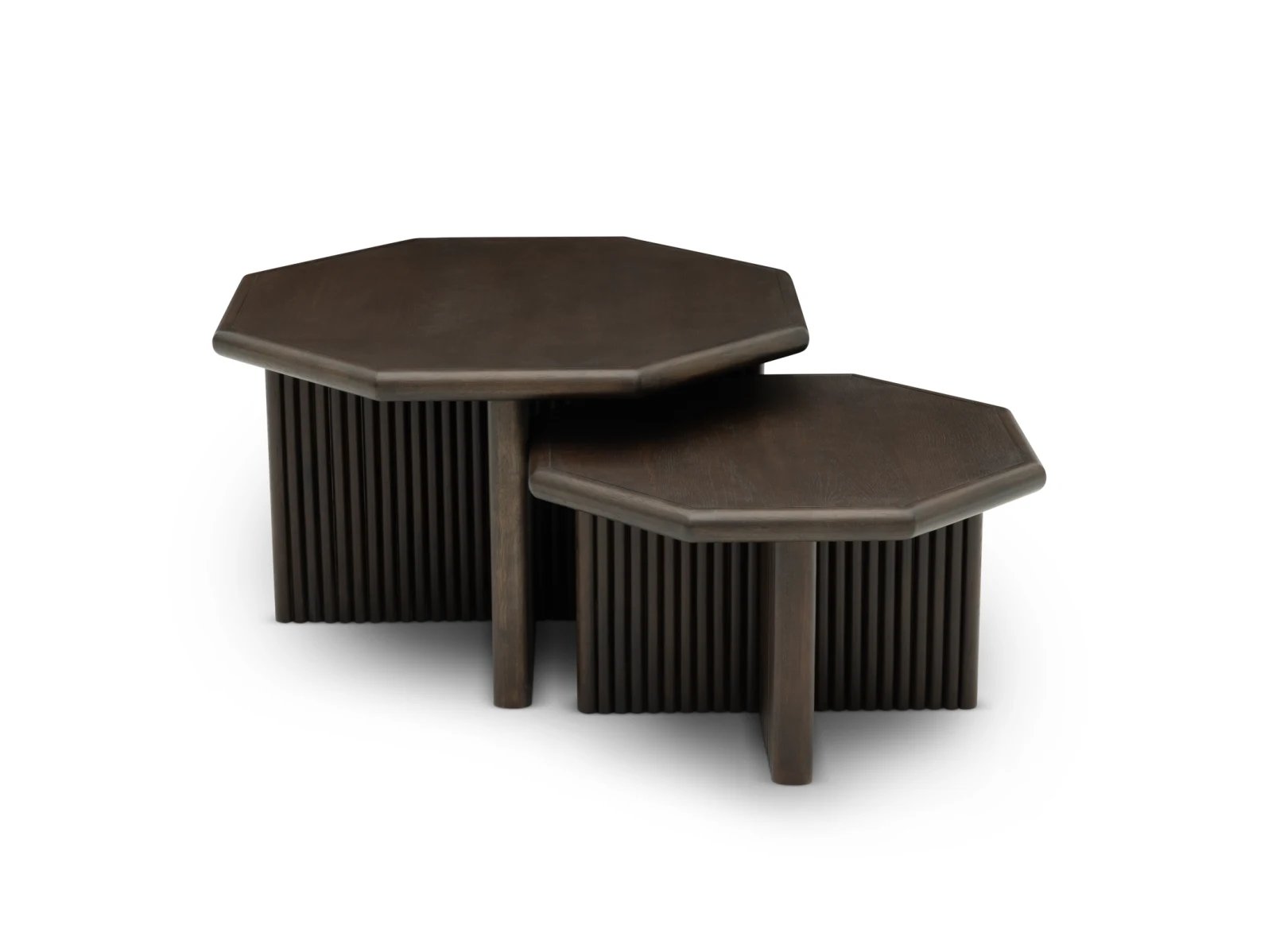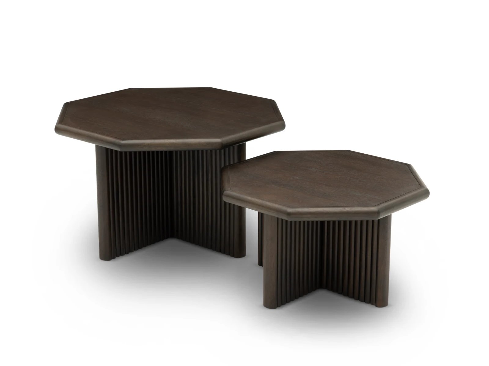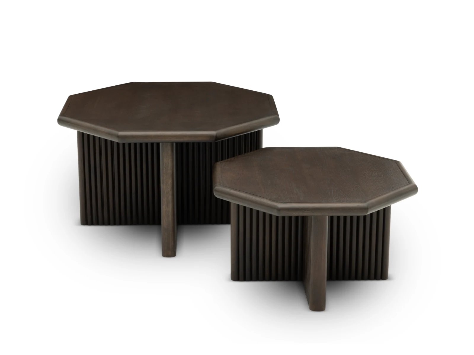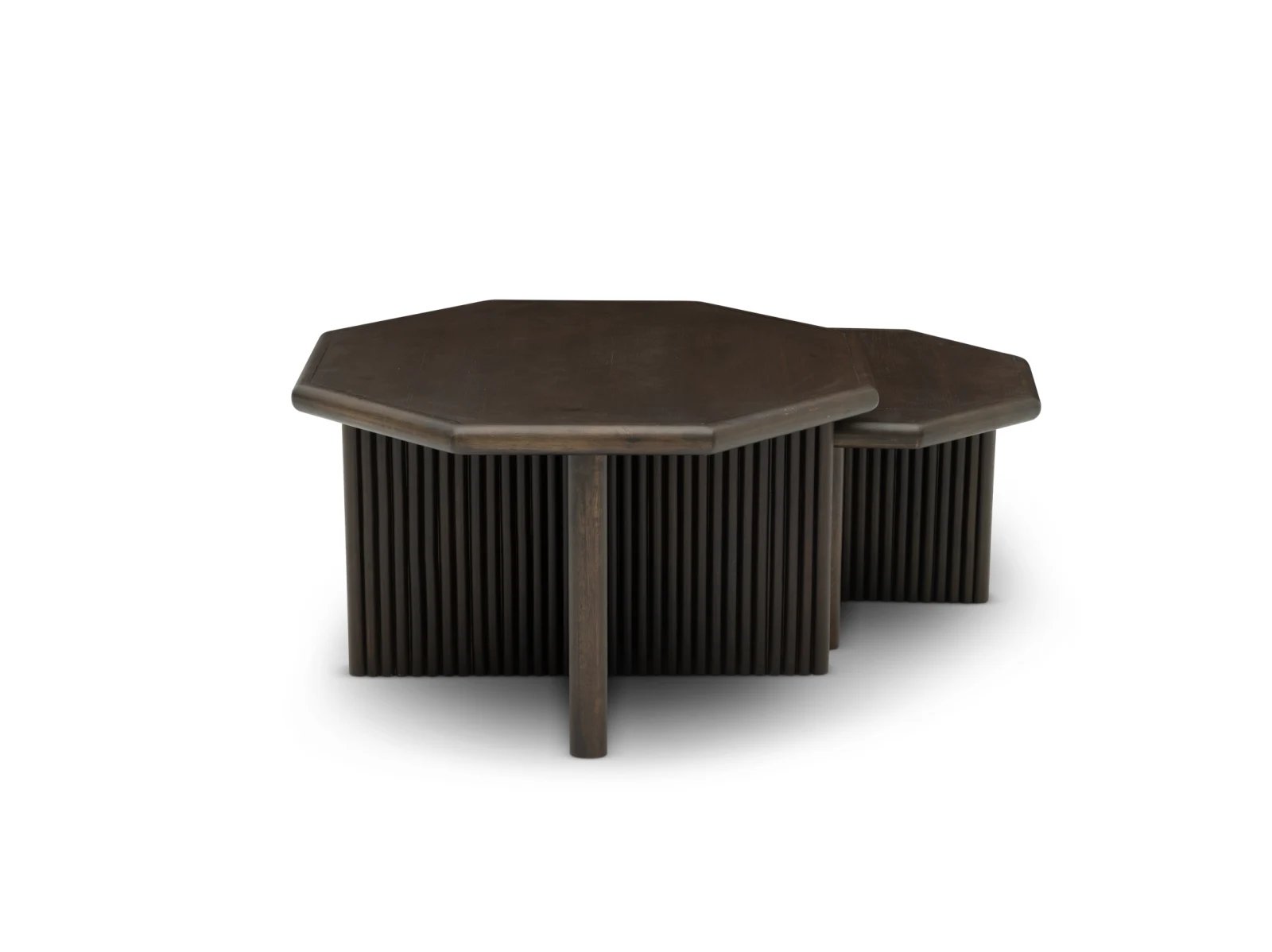 & Free ShippingThe Reed 2 Pack Nesting Tables offer flexible functionality and chic style that elevate any living room or seating arrangement.Made from sturdy MDF, pine veneers, and pine solids, these tables pair matching octagonal tops and ribbed X-shaped bases for bold depth. They come available in light or dark finishes to coordinate with your space. Use them together or separately for added surface area when entertaining or to display decorative accents. Perfect for modern, transitional, and eclectic homes, the Reed 2 Pack Nesting Tables enhance functionality with a hearty dose of style!