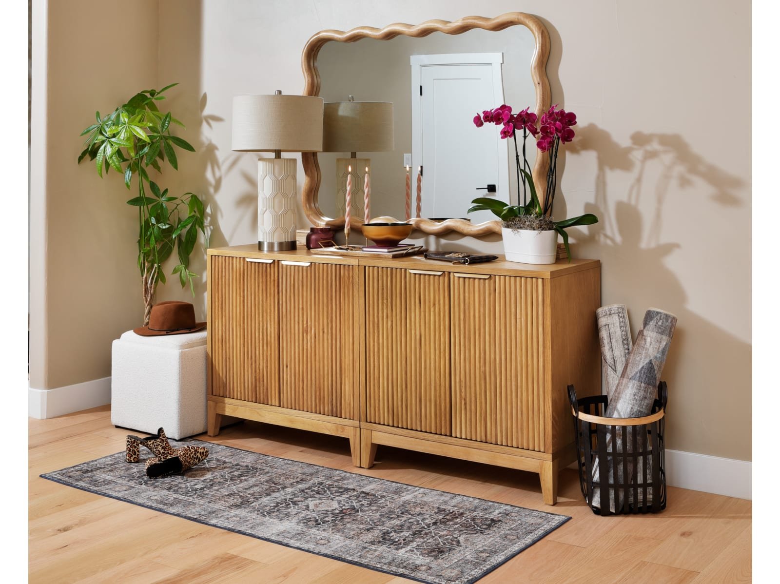 & Free ShippingAdd a touch of bold modern elegance to your home with the Reed Console Table. Built from durable MDF, pine veneers, and pine solids, this console table is designed with a striking octagonal top and a channeled X-shaped base. It comes in two versatile finishes, light or dark, to suit your unique taste. A slim profile makes it ideal for hallways, entryways, or as a statement piece in modern, mid-century, or eclectic living areas. The Reed Console Table is just what you need to revamp your home’s character!