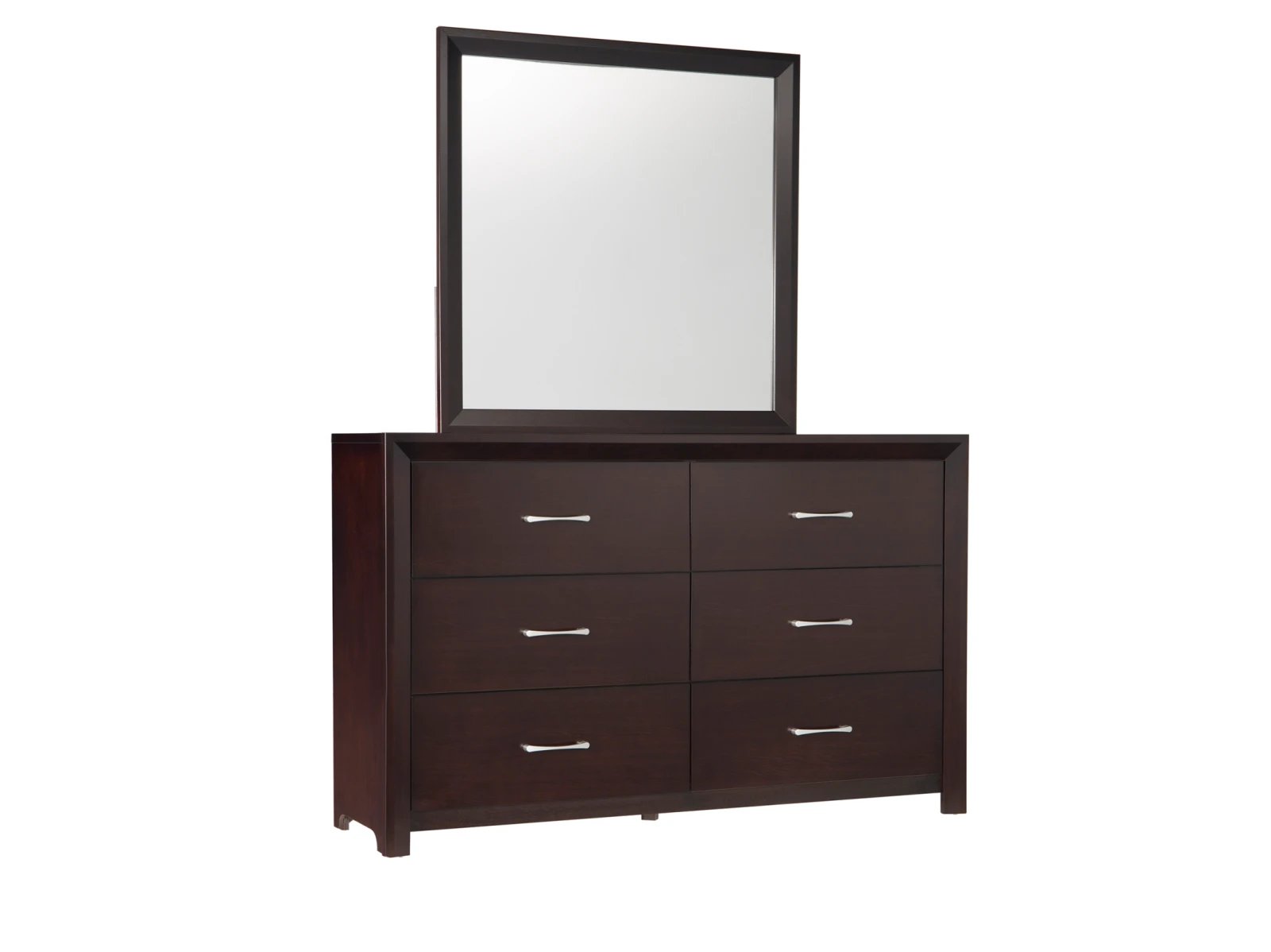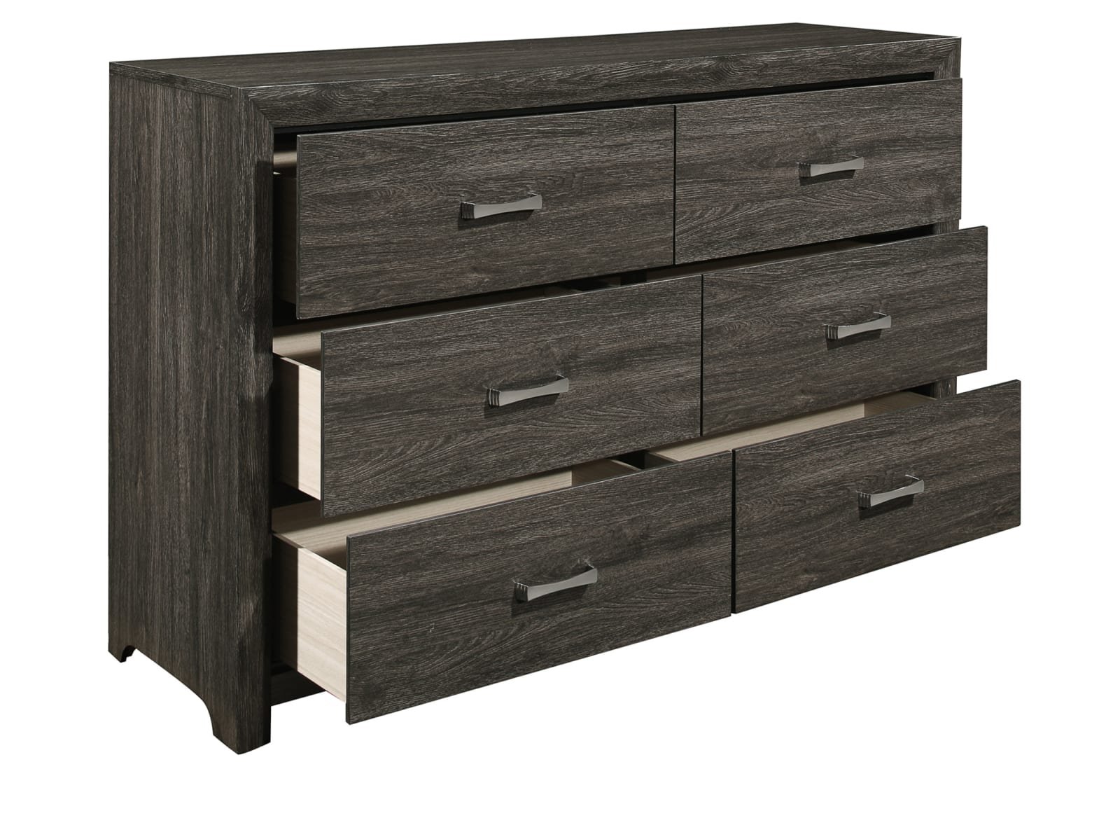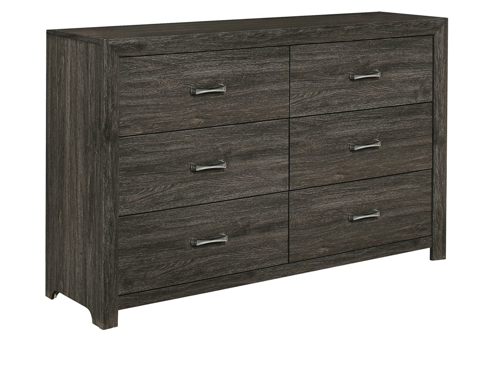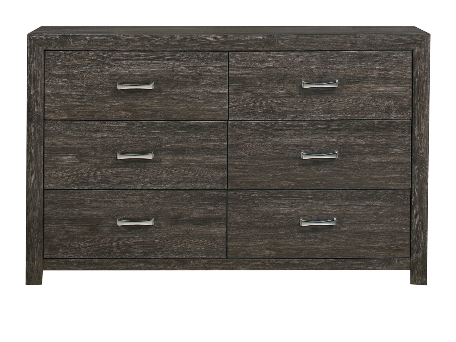Enhancing the contemporary design of your bedroom is the focus of the Renly Collection. Brown–gray finish build on the unexaggerated lines of this bedroom suite, blended with the tufted vinyl inserts on the headboard and the polished nickel finish hardware culminates to achieve the modern look. Whether it is a hard contemporary or a softer transitional feel, your decor design options are wide open with this adult, as well as youth, bedroom collection.