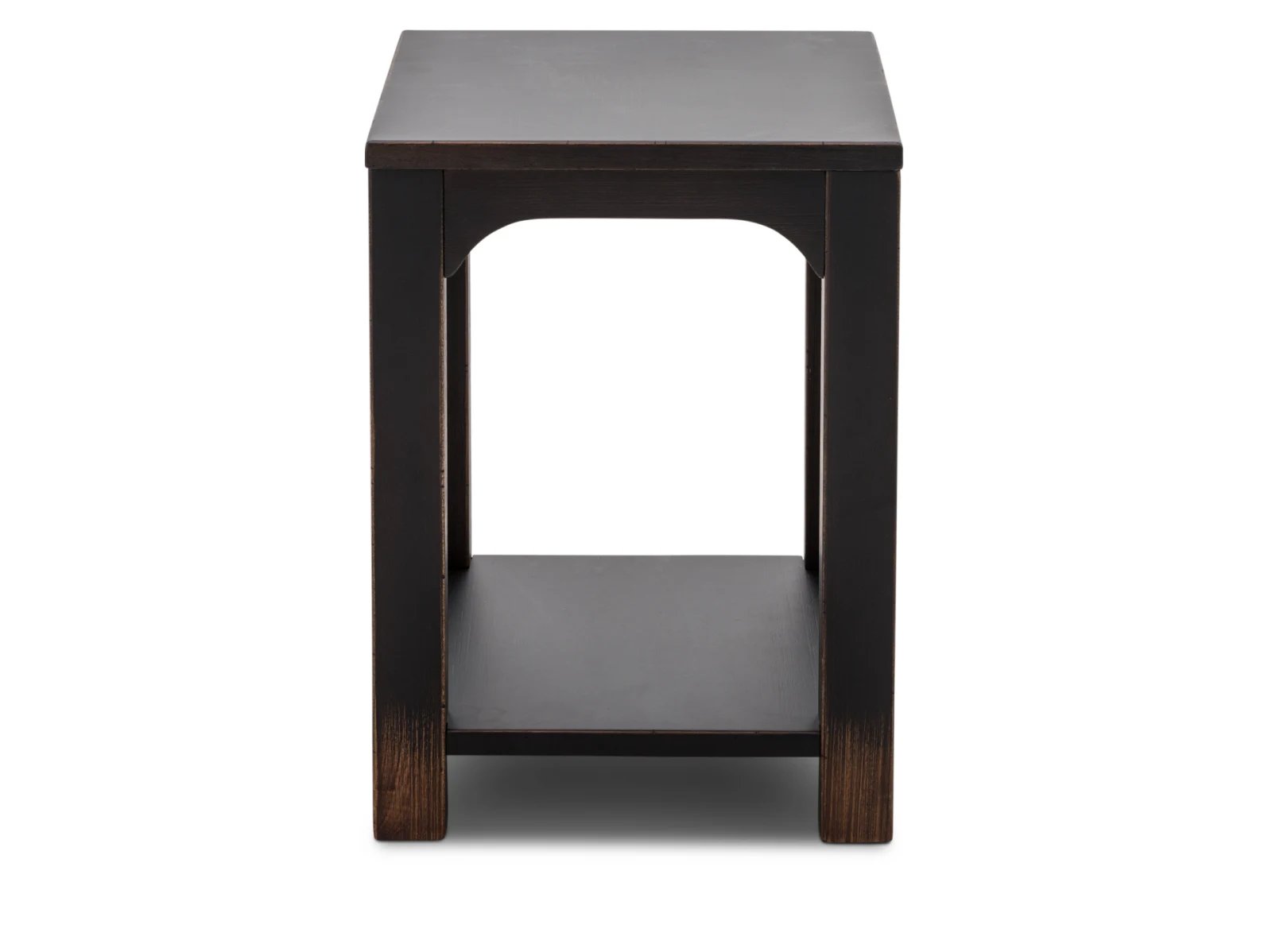 & Free ShippingSlim without being slight, the River Valley Chairside End Table is a solid table that can fit into most any space. Built from Yellow Poplar wood, the River Valley showcases dark brown birch veneers with unique distressed touches that become heavier near its feet. Despite its unassuming form, this chairside end table still makes an impact with its low-lying floating shelf and arched under framing. Add some character to your home today.