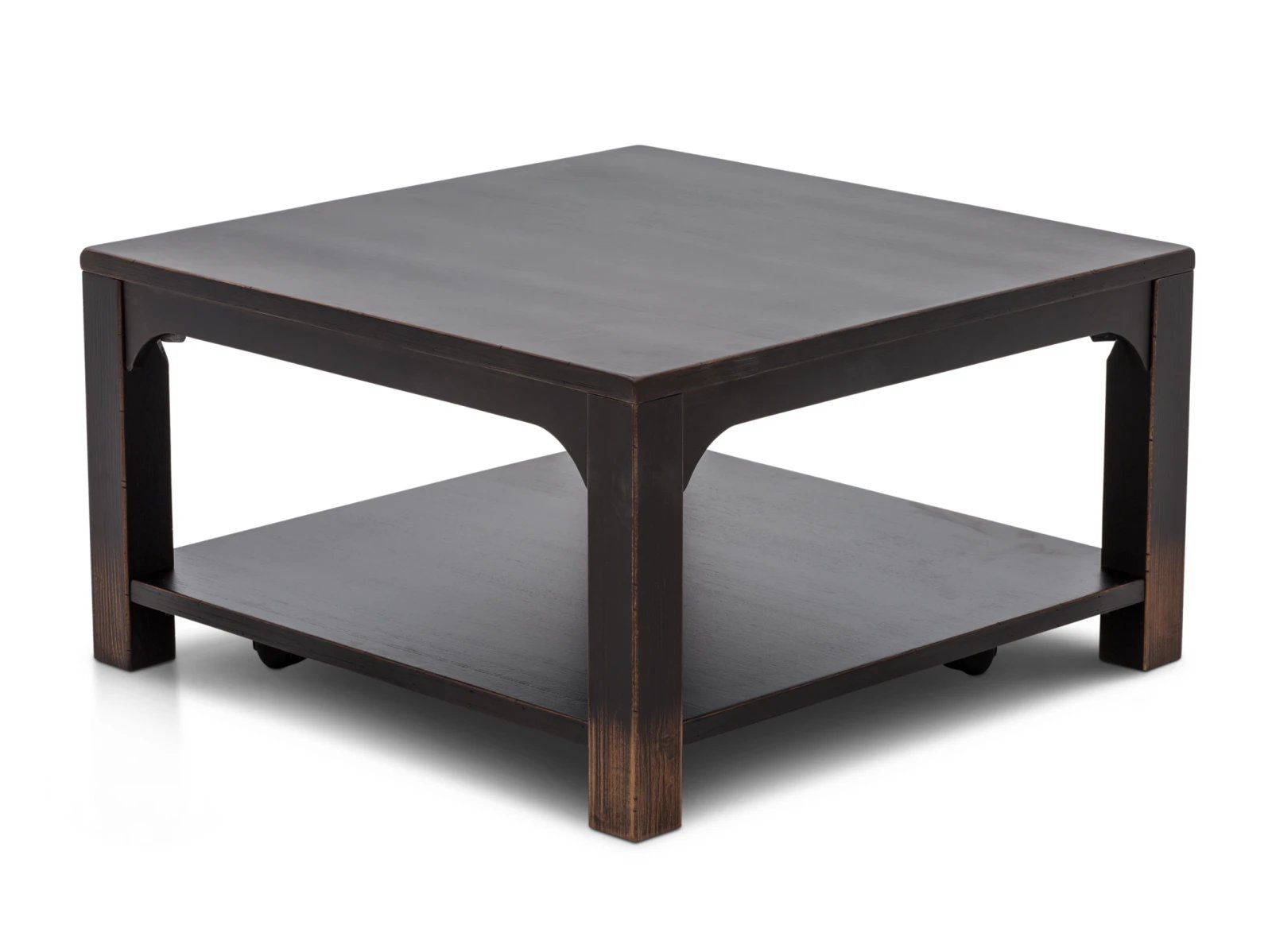 & Free ShippingThe River Valley Coffee Table is functional and beautifully crafted, made to serve as an elegant yet unassuming lynchpin of a sitting room. The River Valley is built using solid, lightweight Yellow Poplar wood and clad in dark brown birch veneers featuring distressed touches that become stronger near its feet. It features an ample, low-lying floating shelf that is perfect to hold books and accessories as well as an arched wooden skirt to bestow a touch of sophistication. Underneath the shelf are hidden casters to make situating this warming coffee table a breeze. Add it to your home today, and don’t forget to include the other pieces of the River Valley Occasional Group to complete the look.