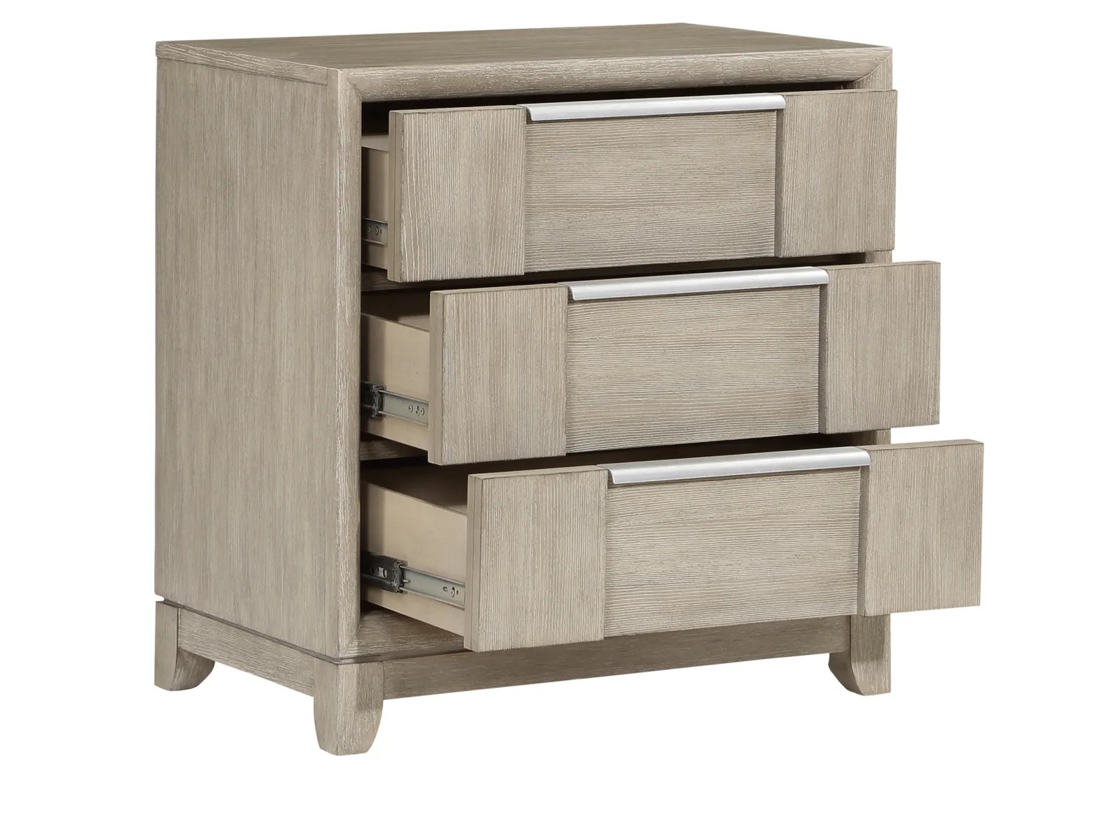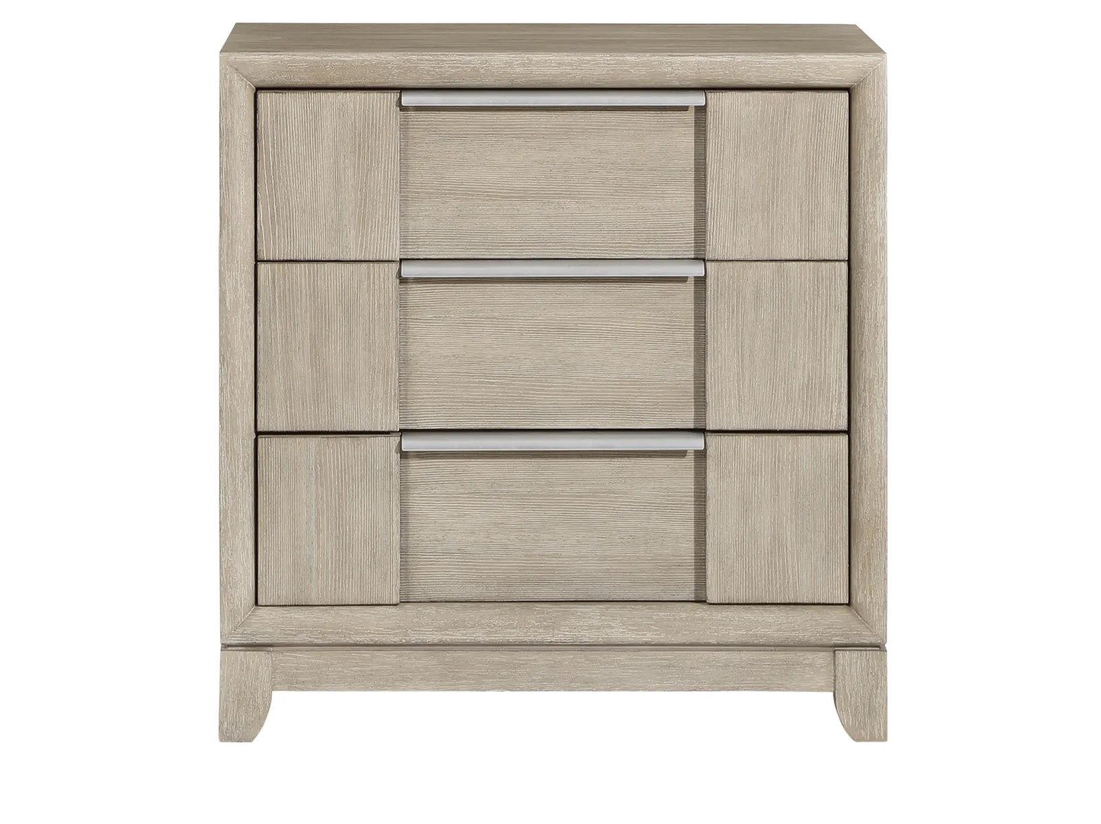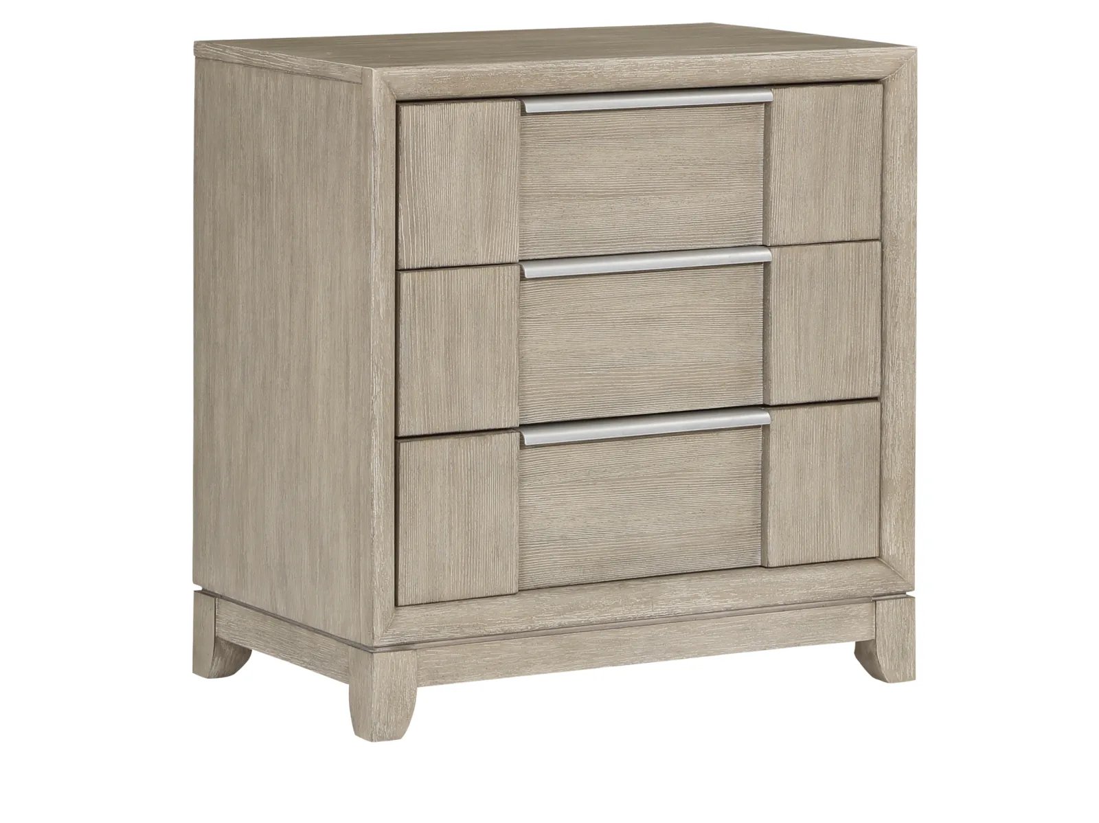 & Free ShippingThe sophisticated modern styling of the Robindell Collection brings refined design to the elegant space of your bedroom. The nightstand features ash veneer, which features a light gray finish that perfectly complements the horizontally mounted, pewter-finished, metal hardware that centers each of the unit’s drawers.