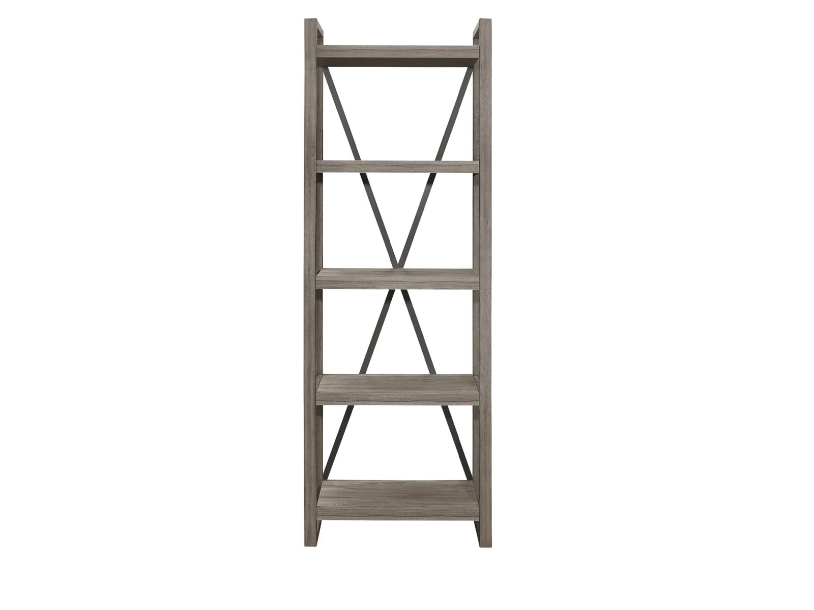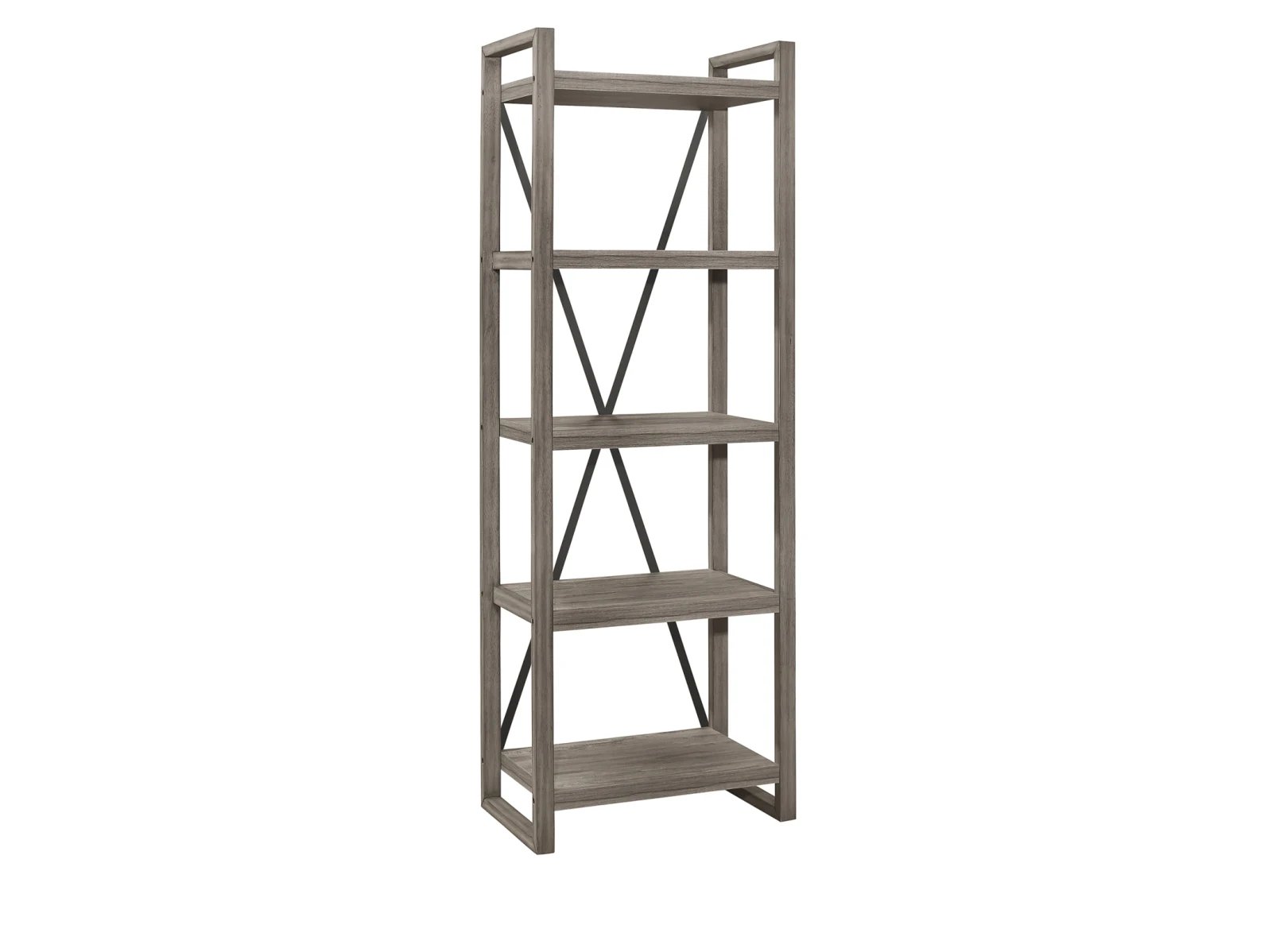 Following the trend of rusticated simplicity is the Rockfall Collection. Melamine laminate perfectly mimics the look of gray weathered wood, lending to the rustic style. The transitional framing of the bookcase side pier allows for placement in myriad home settings, creating the perfect canvas for your preferred decorative style. The bookcase’s profile is comprised of continuous exterior framing supported by metal X-back supports. The unit allows for open display and convenient storage within your casual living space.