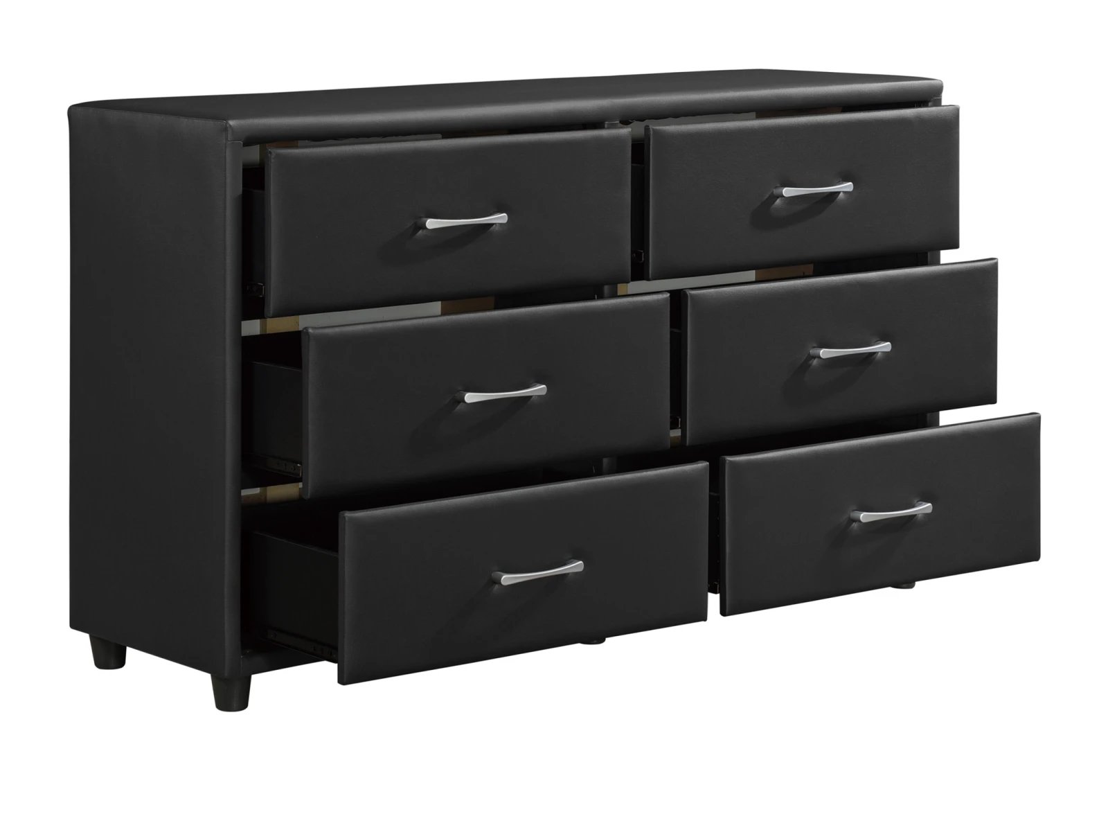 & Free ShippingThe contemporary design of the Rockson Collection is enhanced by the addition of the durable black vinyl covering that encases the dresser of the collection. Painted gray hardware provides a distinct contrast to the bi-cast vinyl covering. Scaled for urban living, this collection will prove to be a unique and stylish addition to your bedroom.