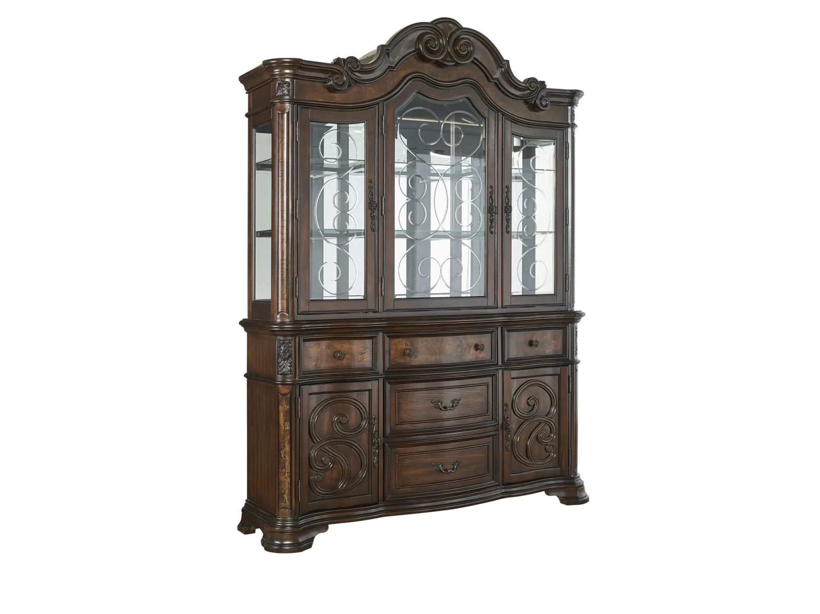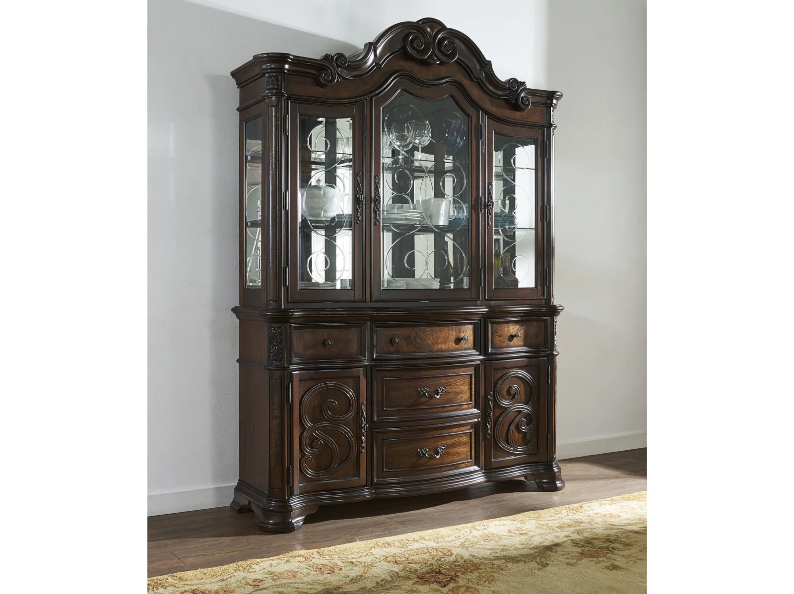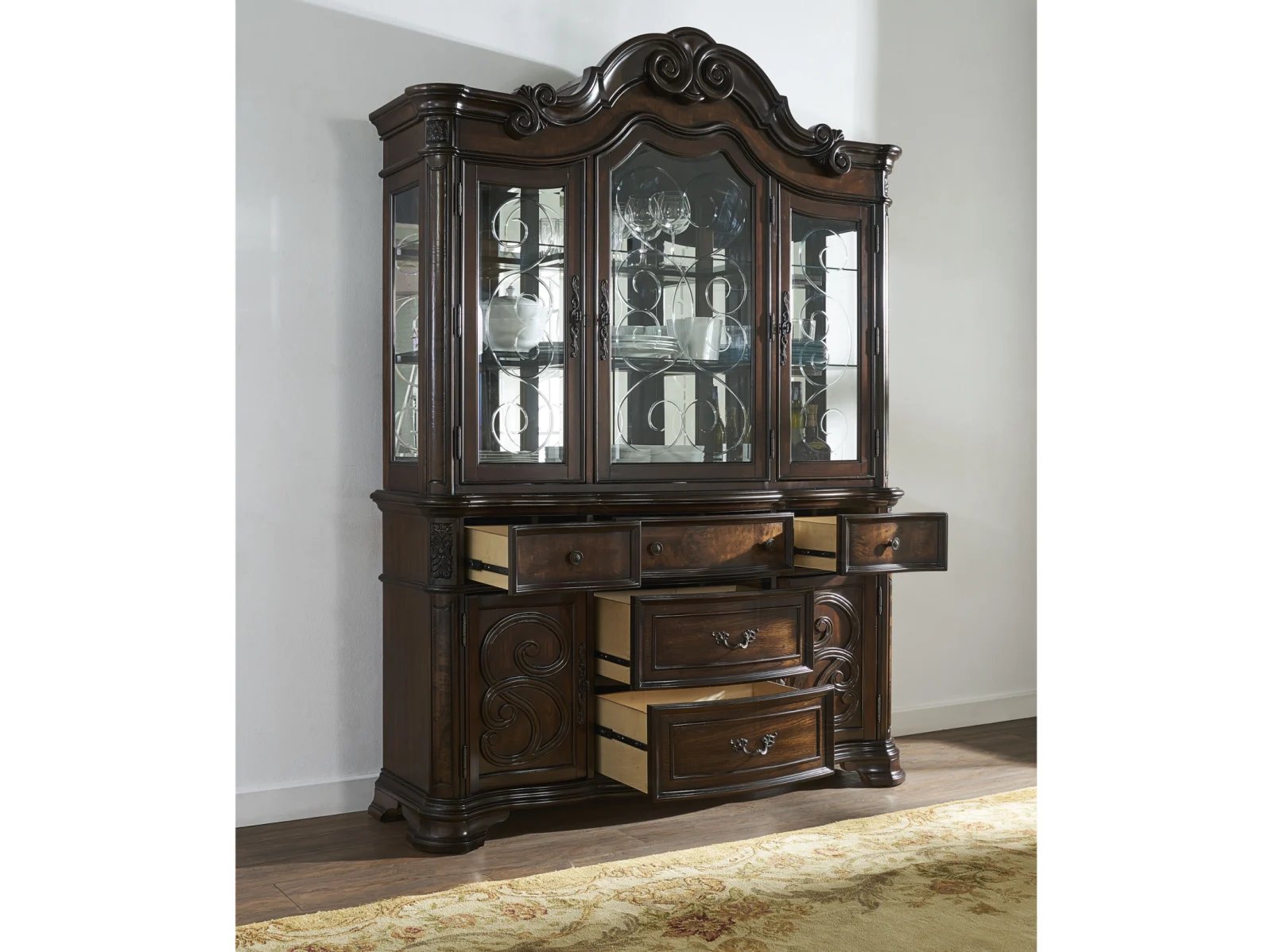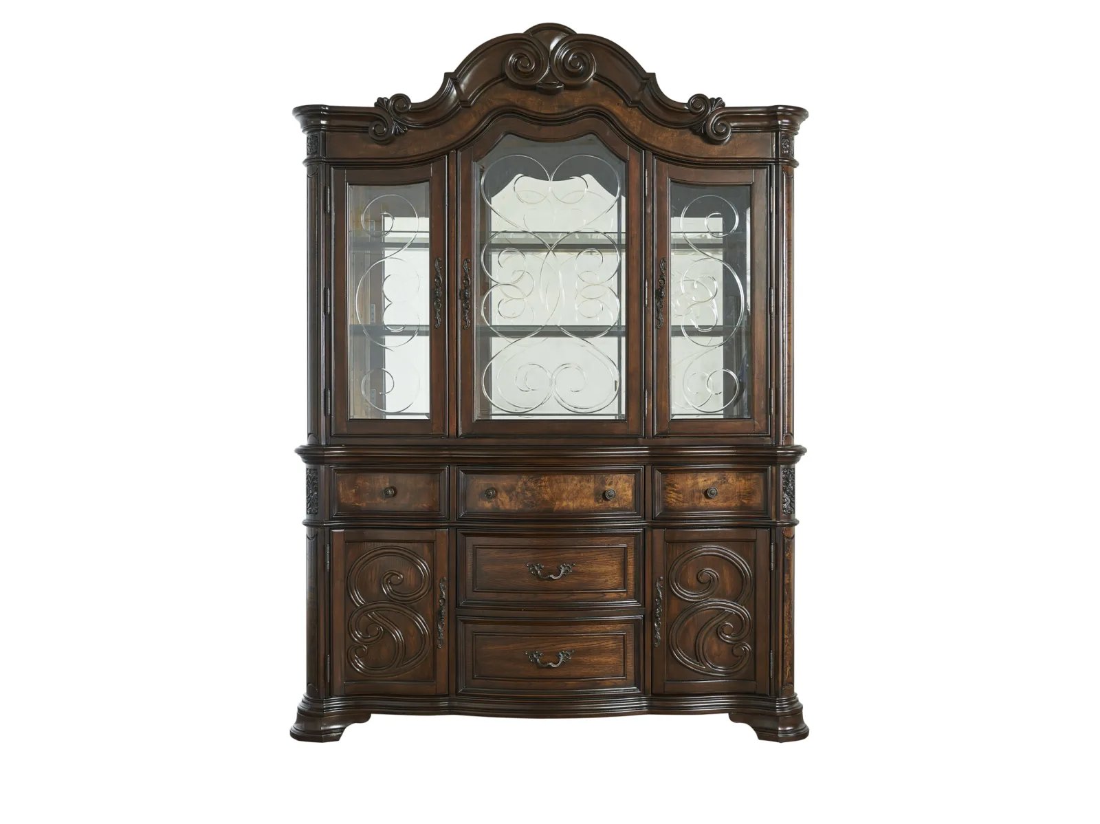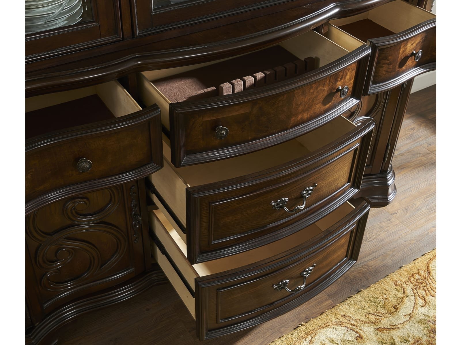 & Free ShippingShowcase your finest dinnerware in the grand Rodanthe China Cabinet. Crafted from hardwood with elegant veneers, this impressive piece features an arched top and glass doors framed by intricate carved scrollwork, offering a stunning display for cherished items. The warm brown pecan finish over oak and ash burl veneers enhances its traditional appeal, while functional details like felt-lined silverware inserts and ample storage space ensure practicality meets beauty. A true statement piece, the Rodanthe China Cabinet is designed to impress at every gathering.