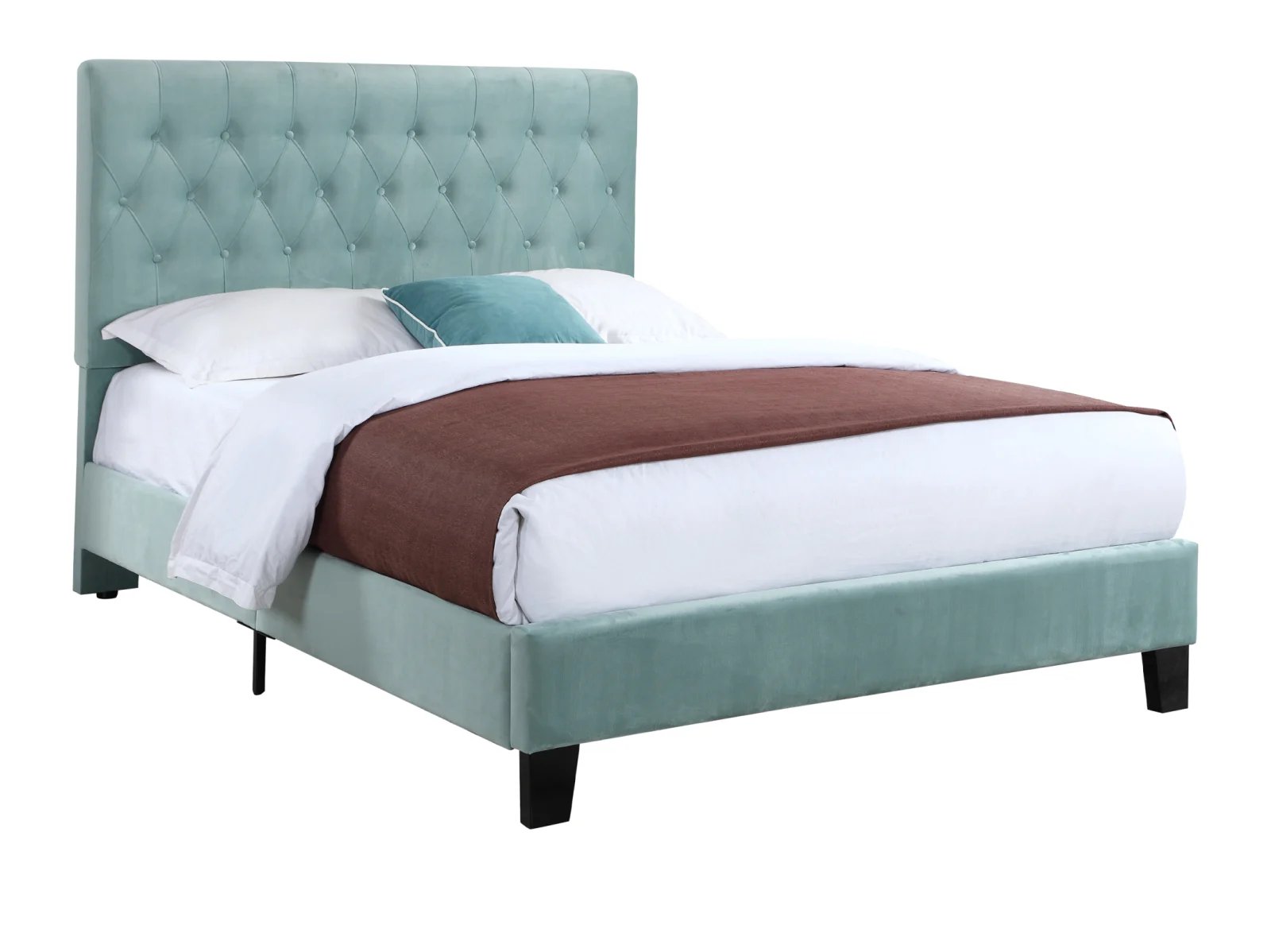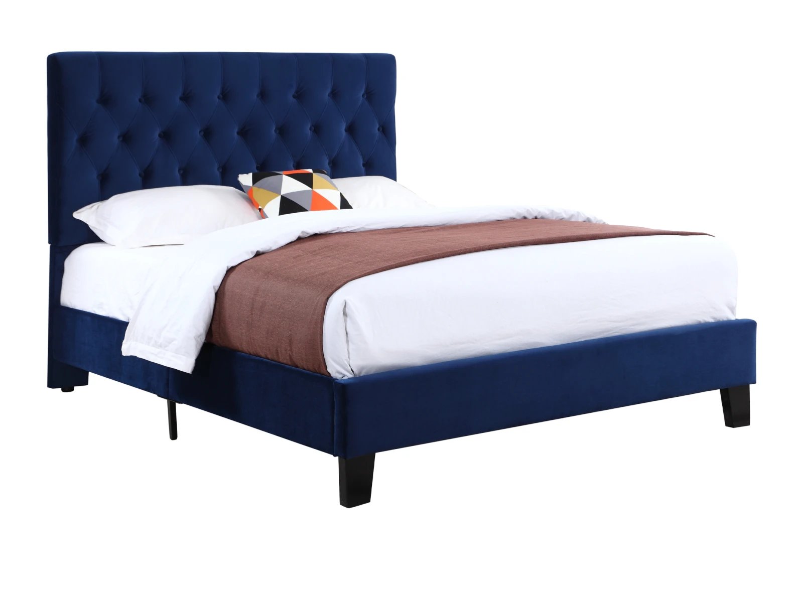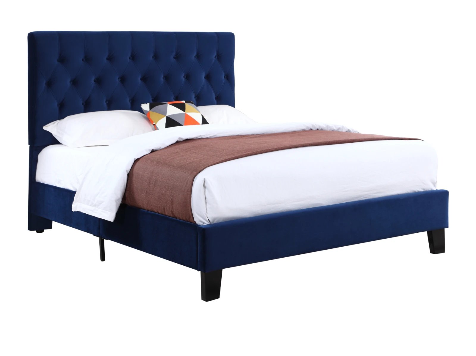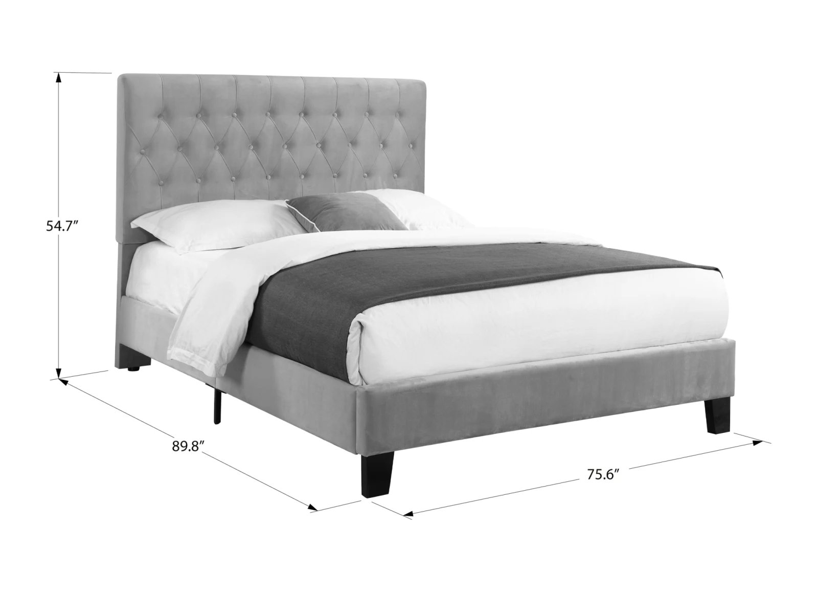- tufted, padded headboard, and platform-style base