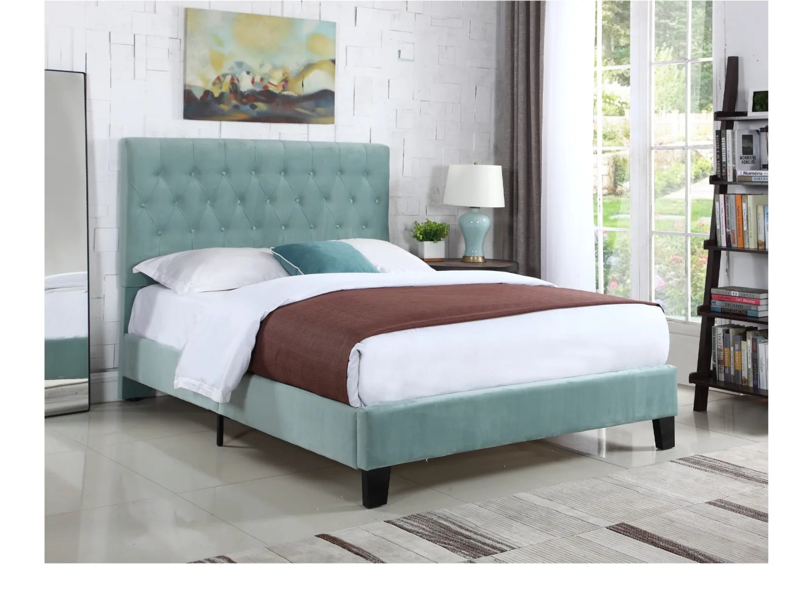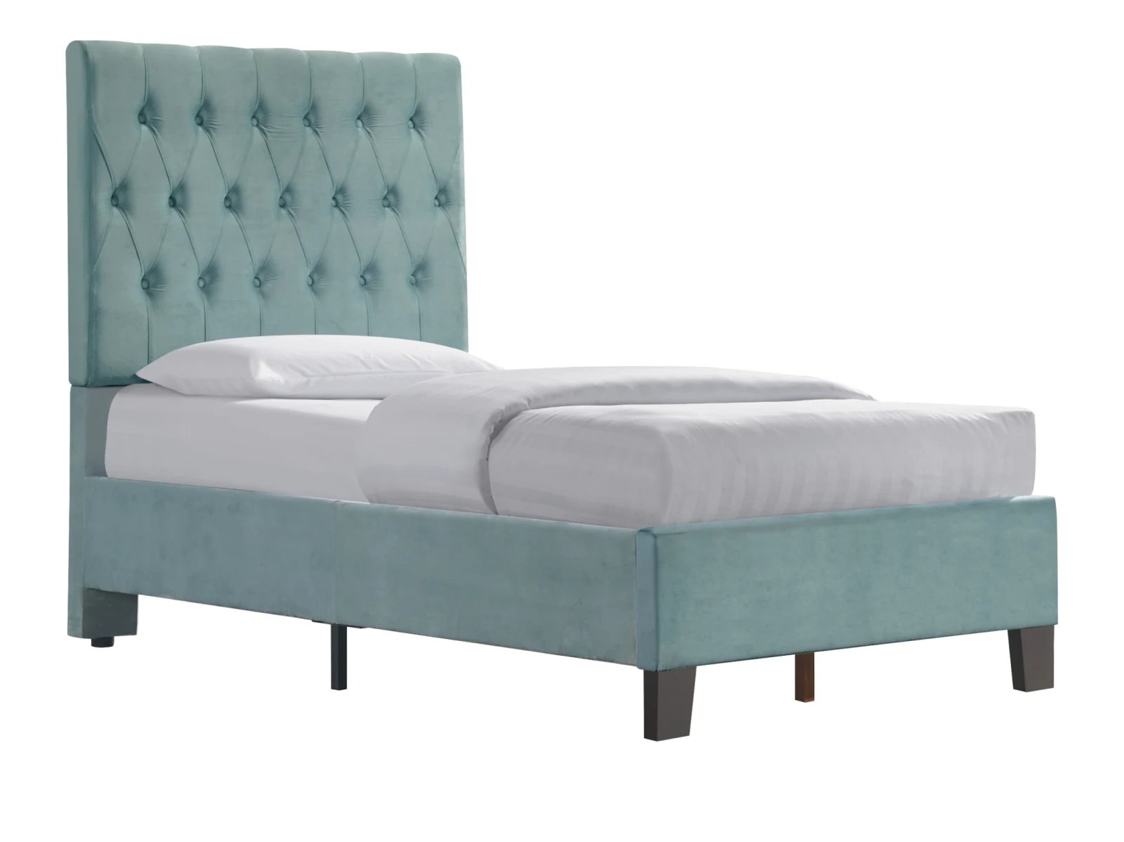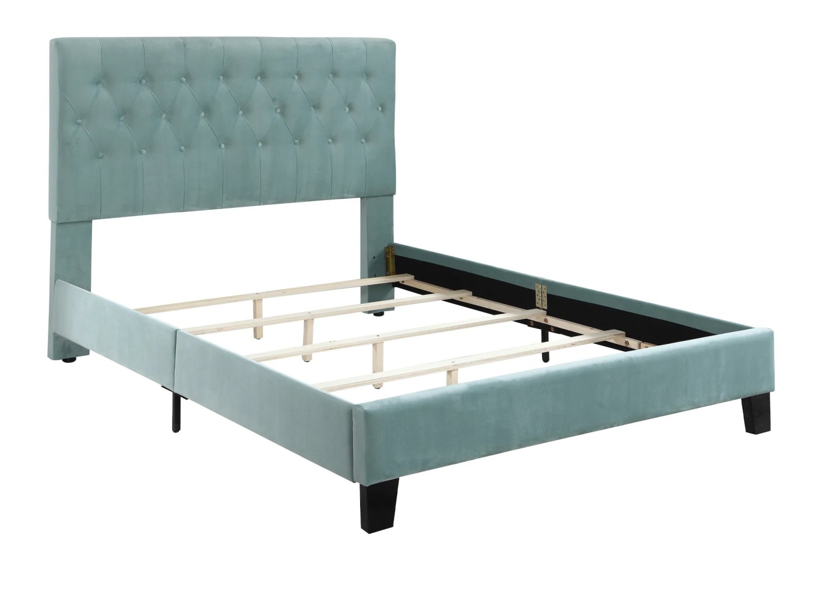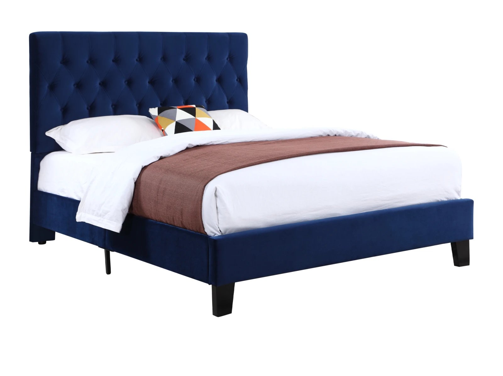 - tufted, padded headboard, and platform-style base