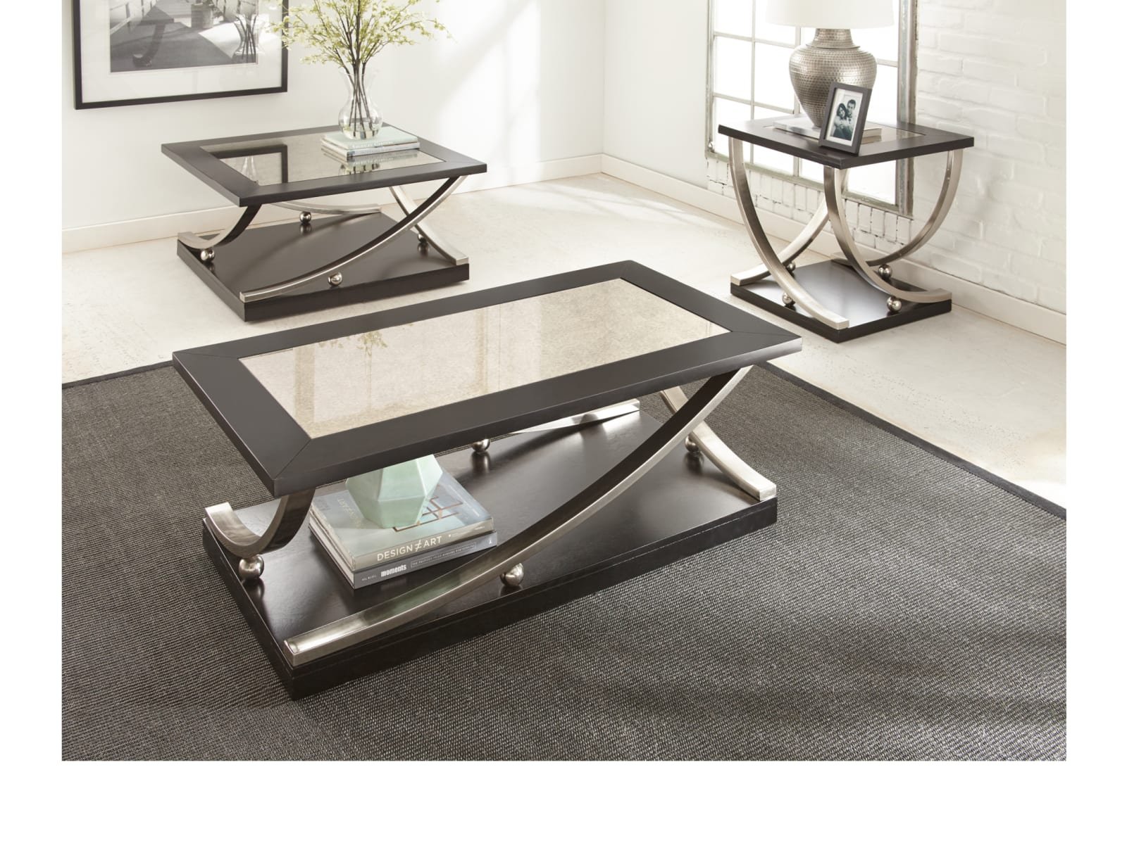 & Free ShippingWith its transitional styling, Rube creates quite a statement in any living area. Sweeping stainless steel support legs create a dramatic effect that is beautifully complemented by the antiqued mirror top insert. This dichotomy of old world meets new age gives the collection a classic, yet up-to-date feel that will brighten any room.
